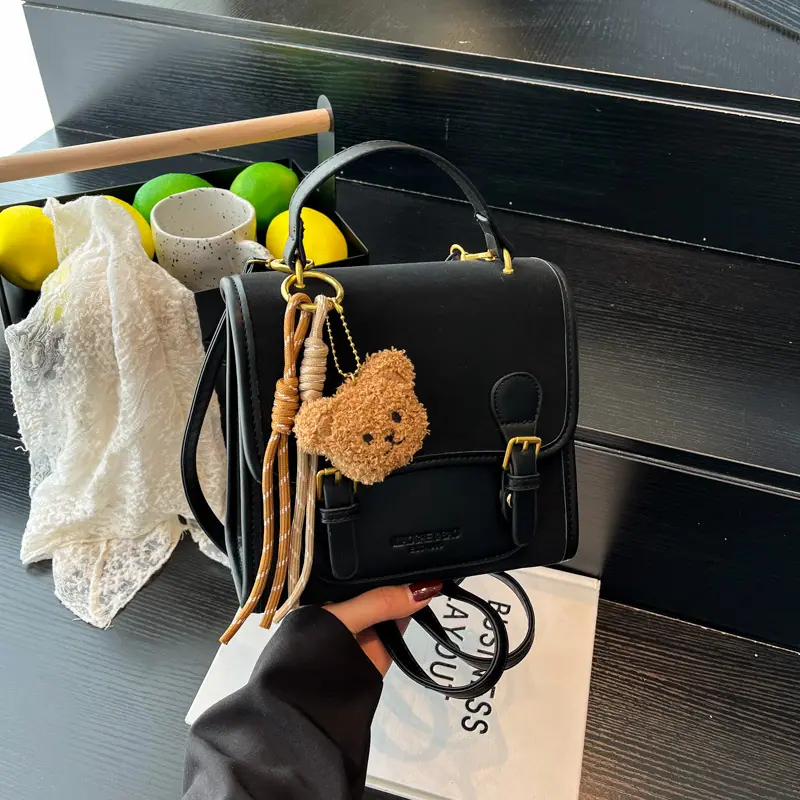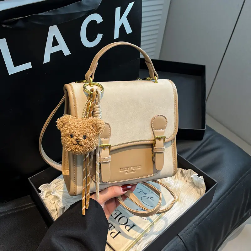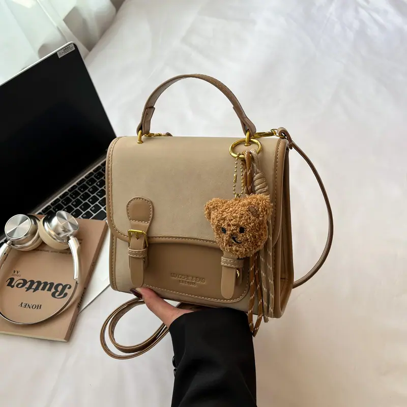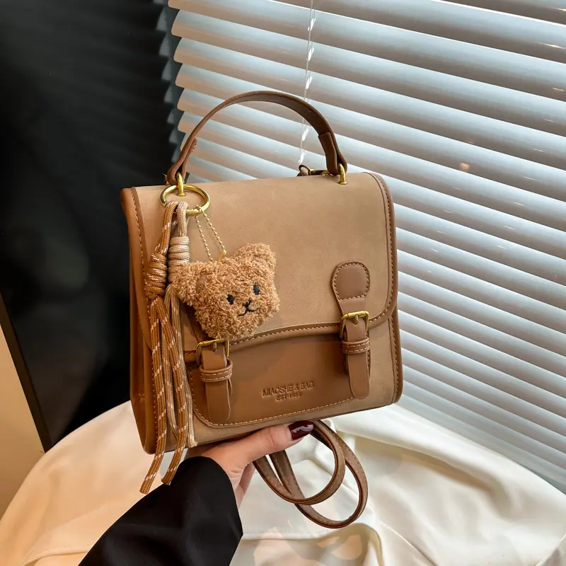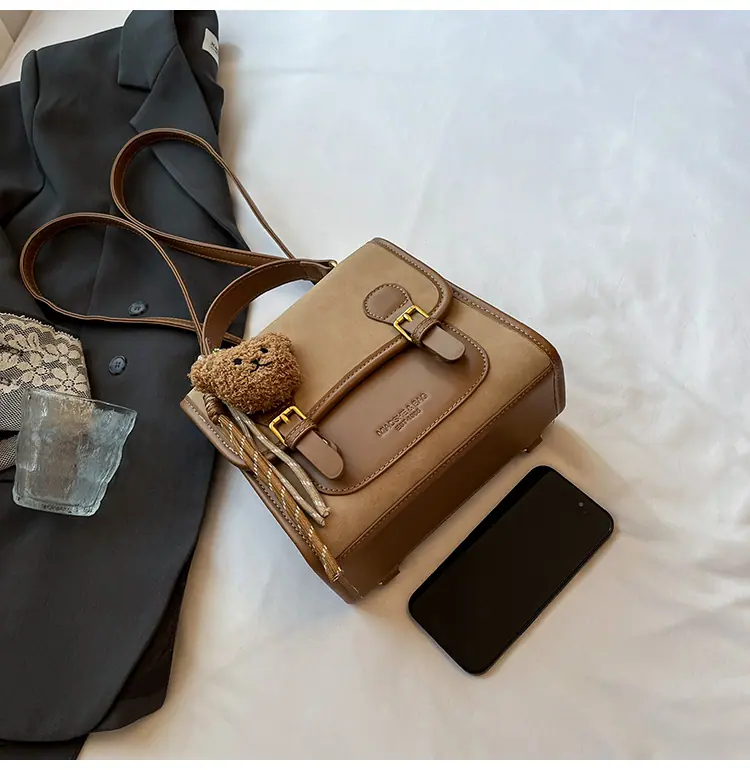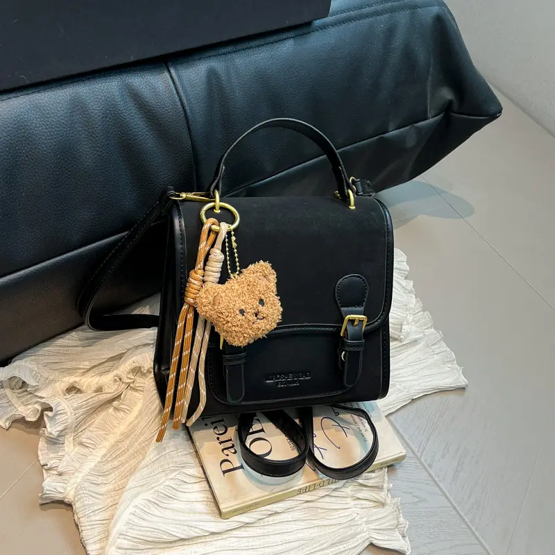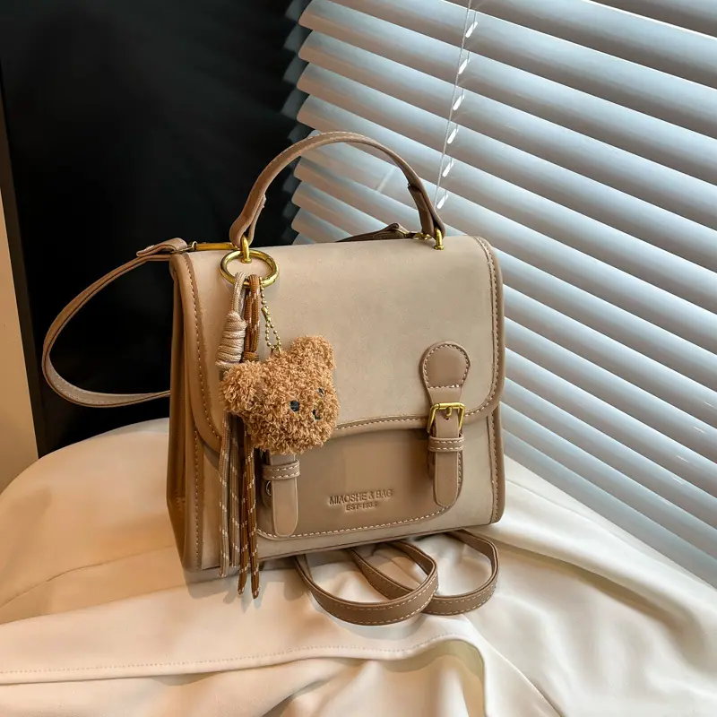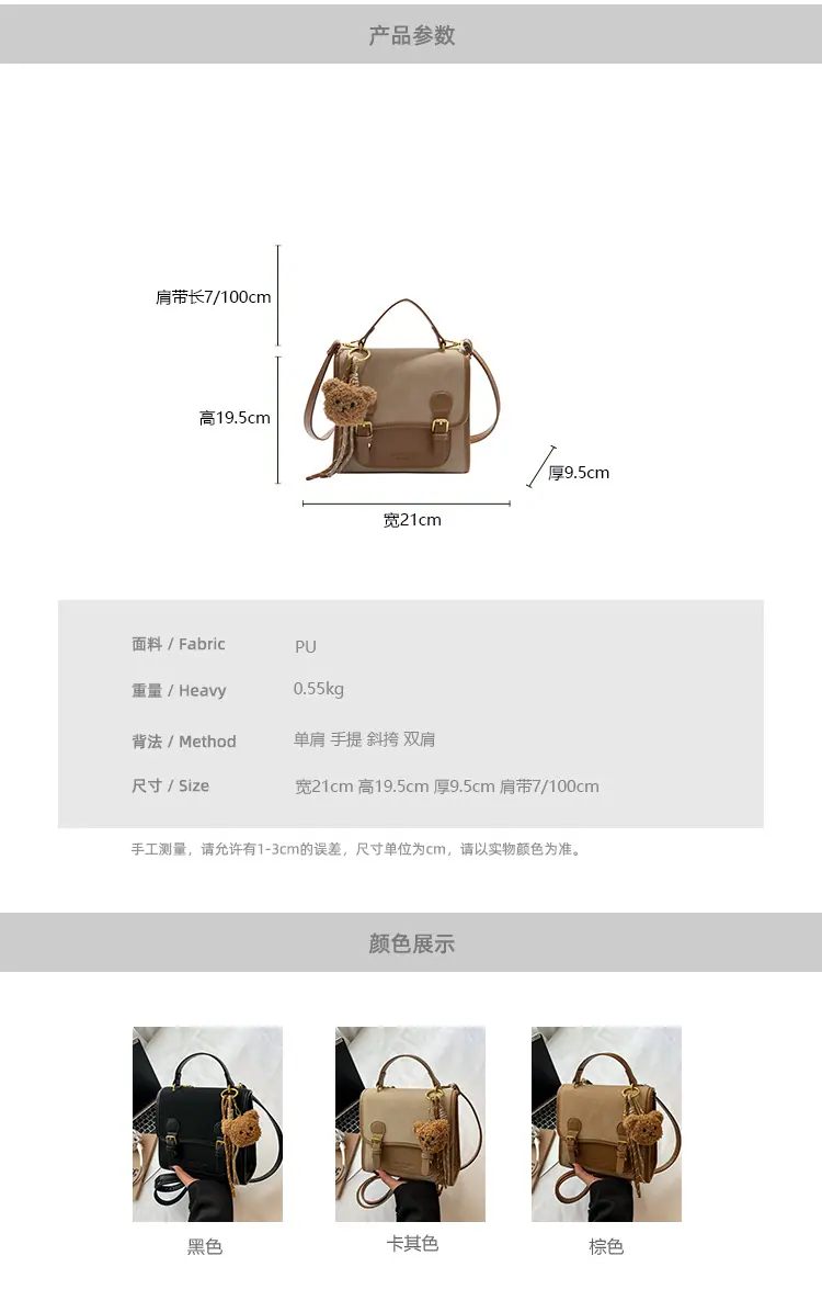 Black double shoulder bag with pendant, khaki double shoulder bag with pendant, Brown double shoulder bag with pendant
