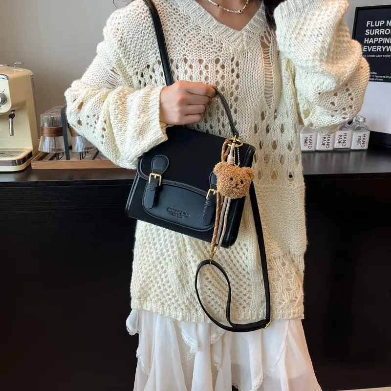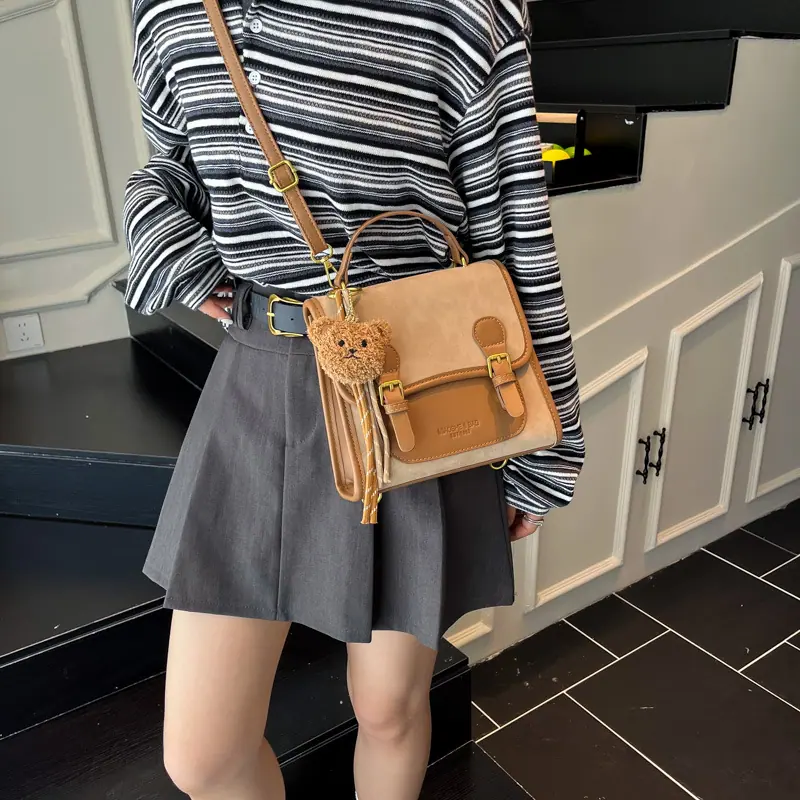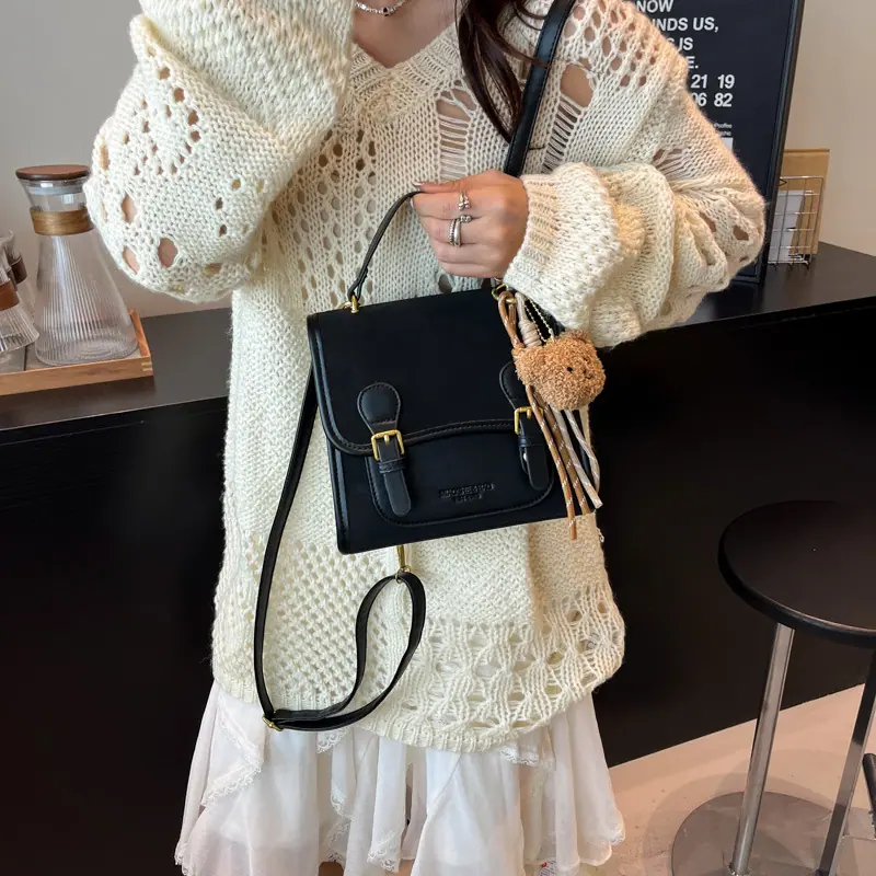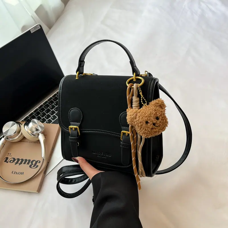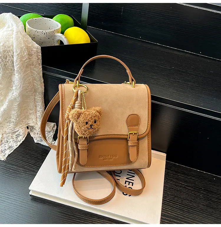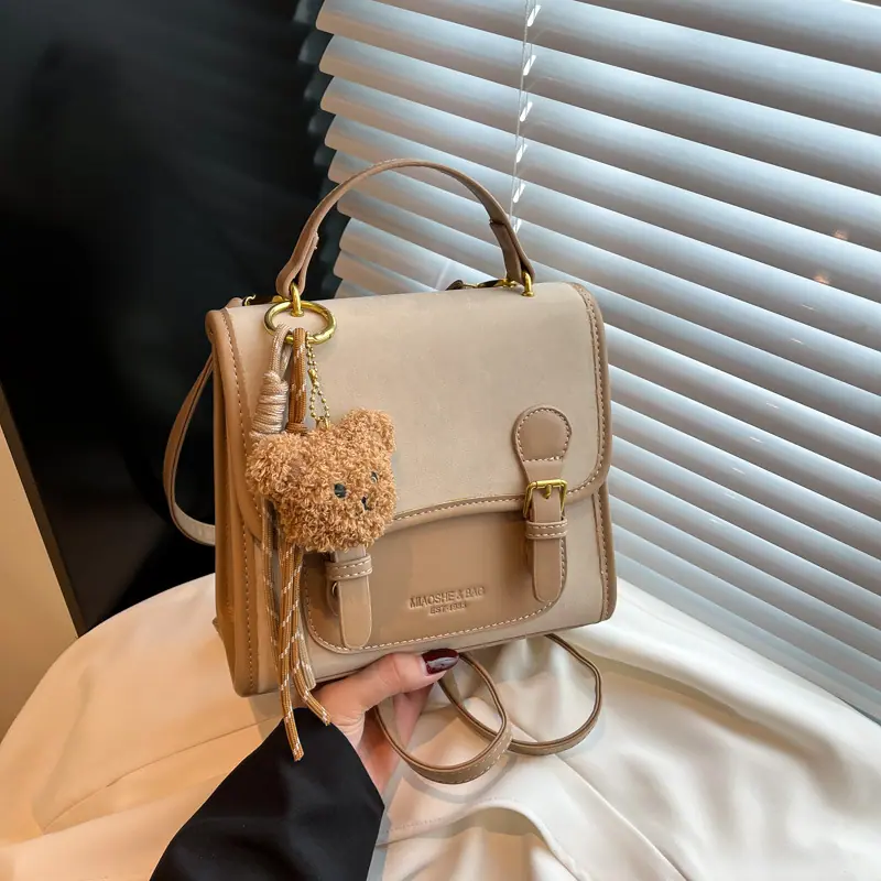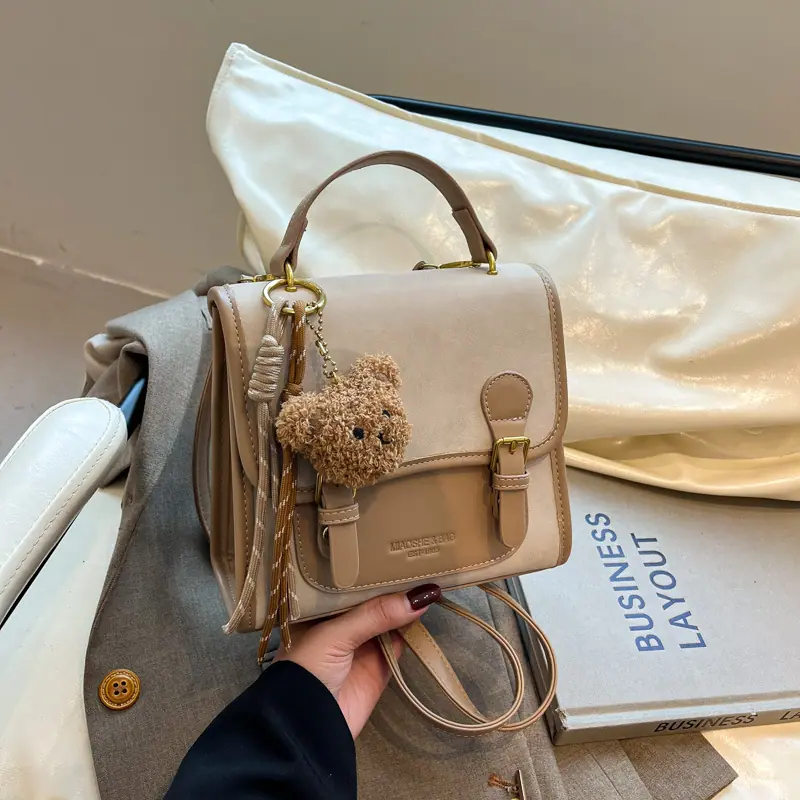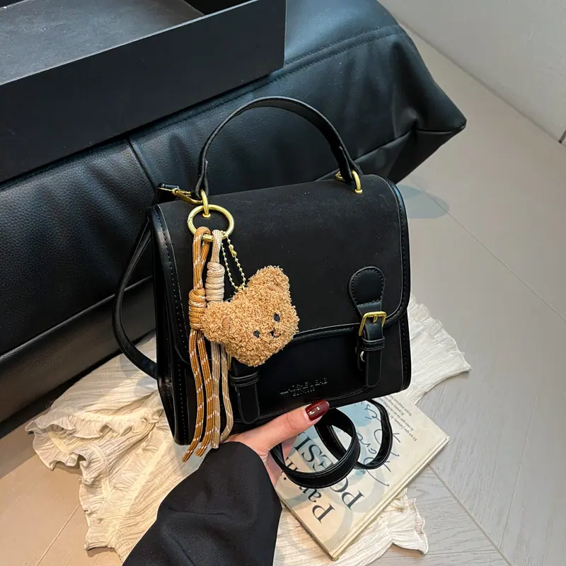 Black double shoulder bag with pendant, khaki double shoulder bag with pendant, Brown double shoulder bag with pendant