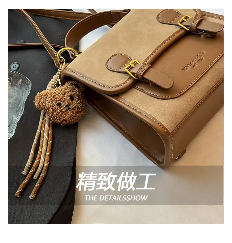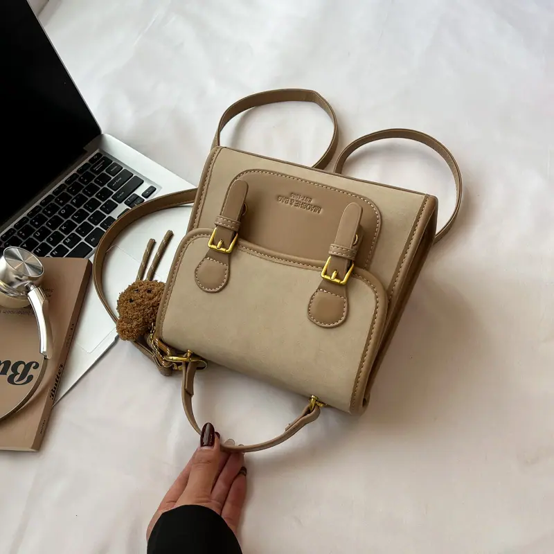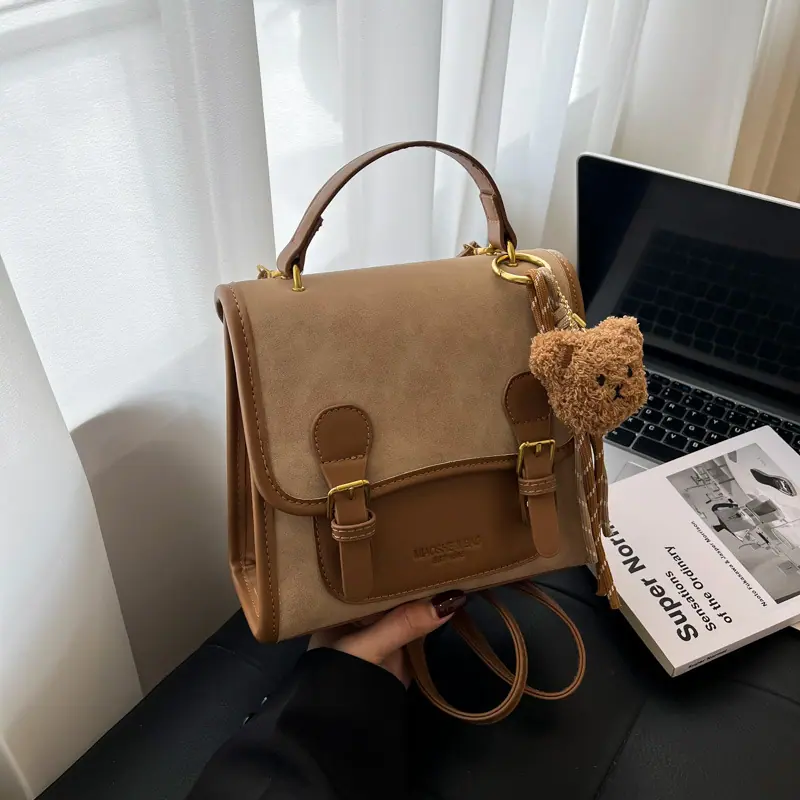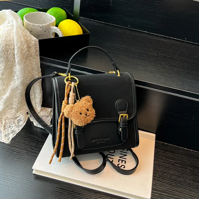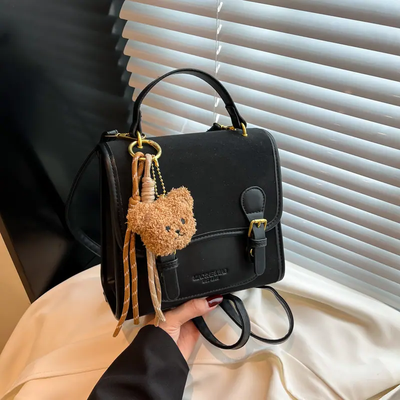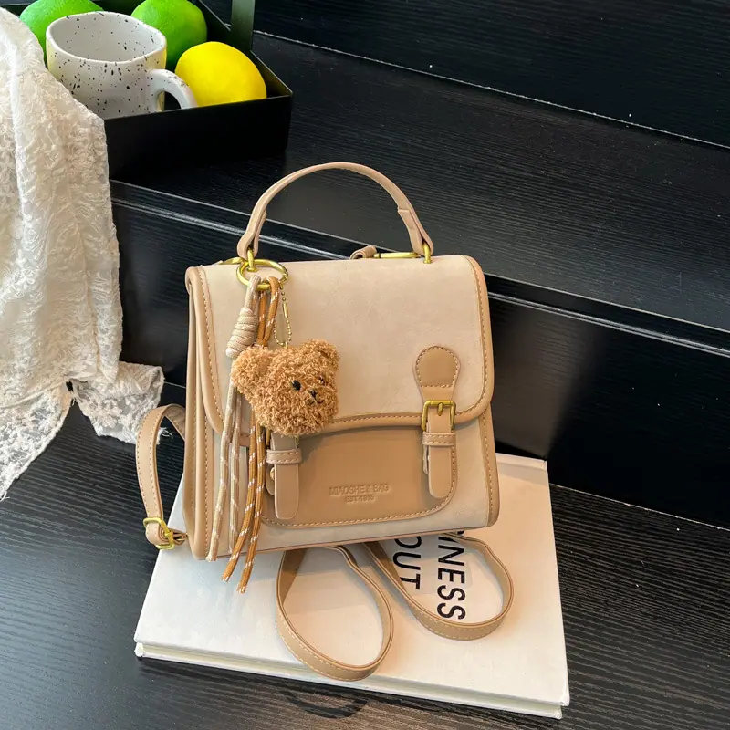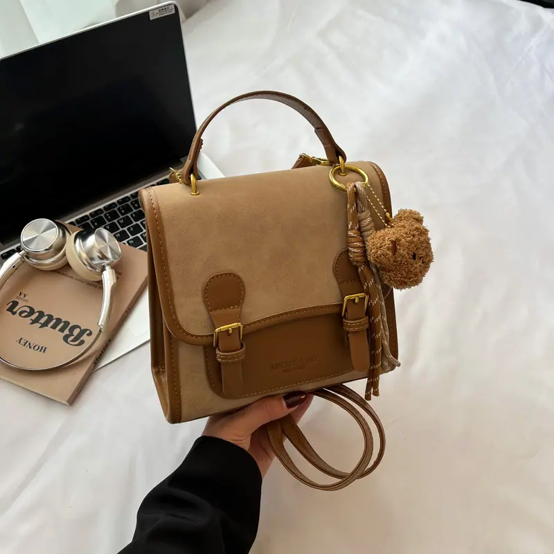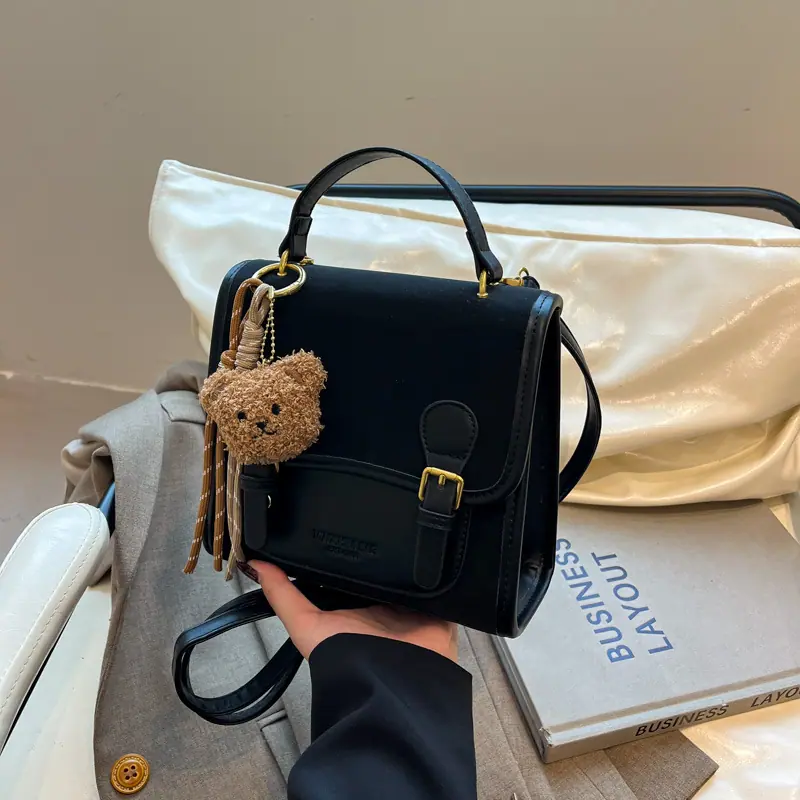 Black double shoulder bag with pendant, khaki double shoulder bag with pendant, Brown double shoulder bag with pendant