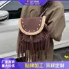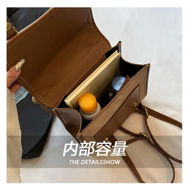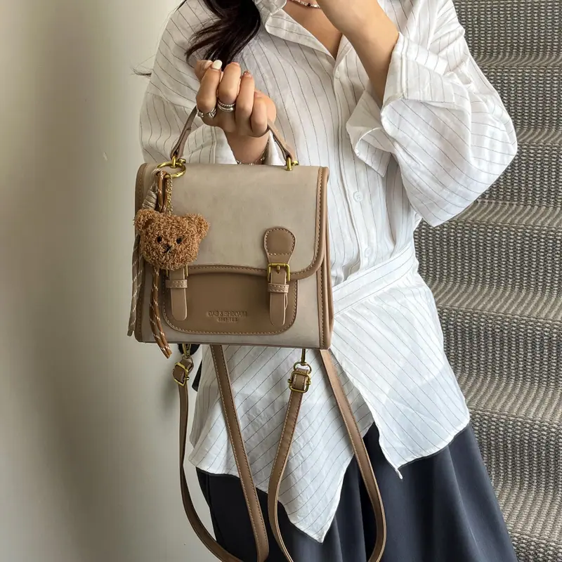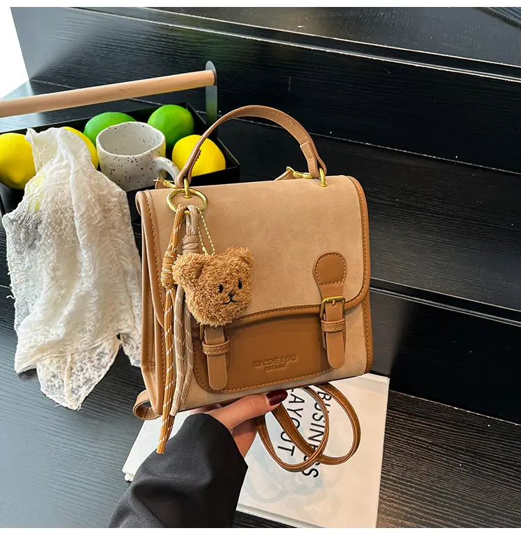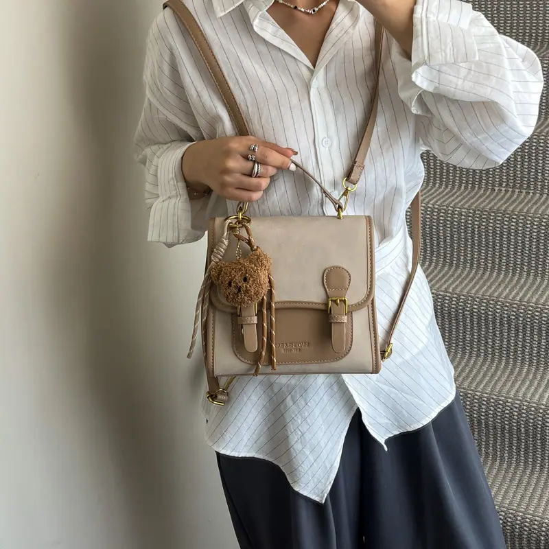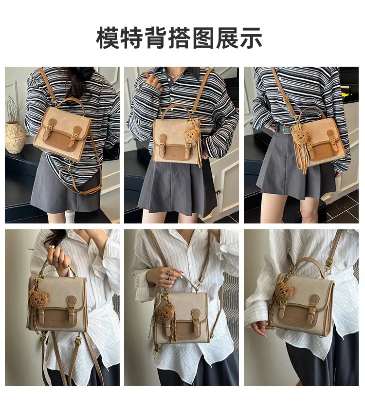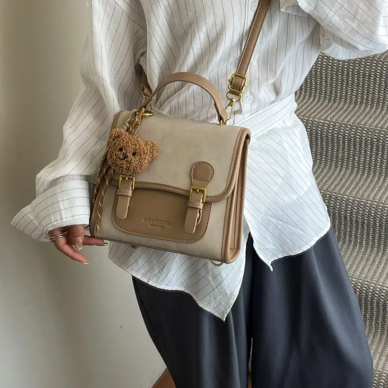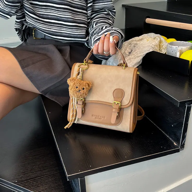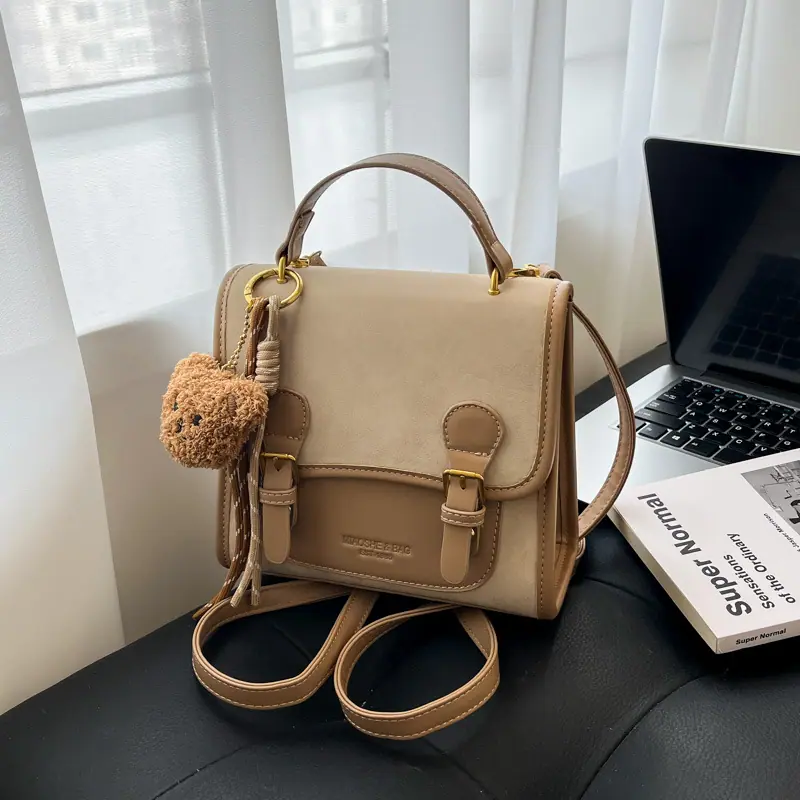 Black double shoulder bag with pendant, khaki double shoulder bag with pendant, Brown double shoulder bag with pendant