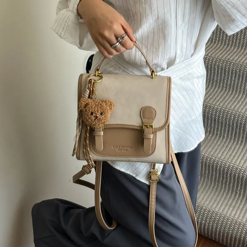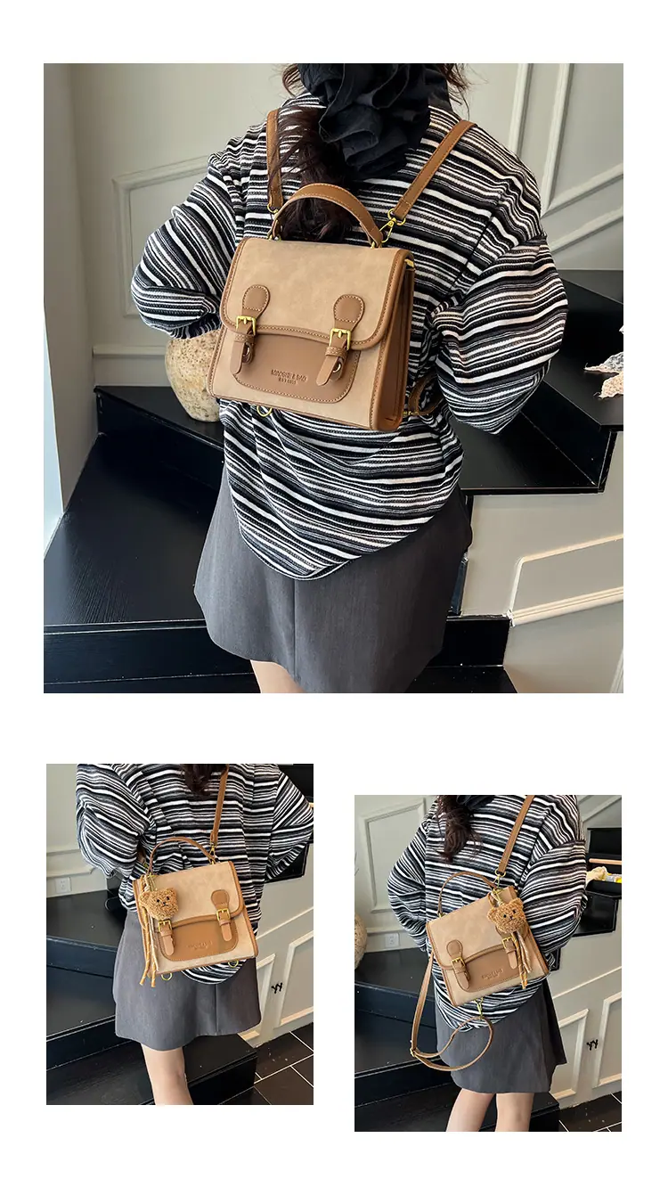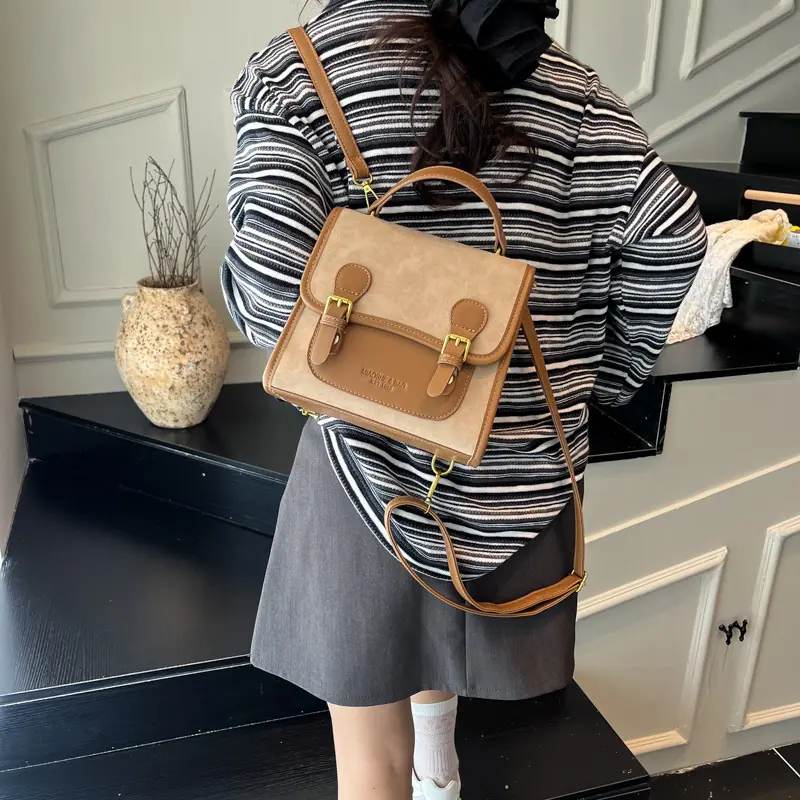 Nova Mochila Feminina Versátil Colorblock 2025 Nova Mochila Retrô Popular Viagem Passeio Mochila Pequena Estilosa