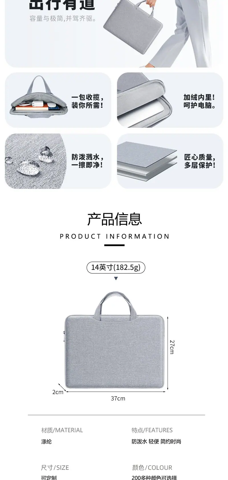 Bolsa de Mão Bolsa para Laptop Bolsa para Laptop Personalizada Leve Fina Bolsa para Trabalho Diário Bolsa Interna Apple Huawei Bolsa Impermeável