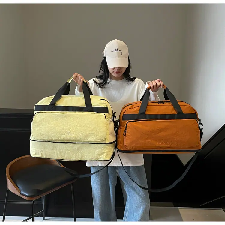 Bolsa de Viagem Feminina Mochila Leve Bolsa de Viagem Mala de Viagem Masculina Bolsa de Cosméticos de Grande Capacidade Expansível Separação Seco e Molhado Bolsa de Ginástica