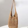 Bolsa de Palha Grande Capacidade Ombro Único Estilo Coreano 2025 Nova Moda Bolsa de Palha Trançada Vazada Bolsa de Praia para Férias na Praia