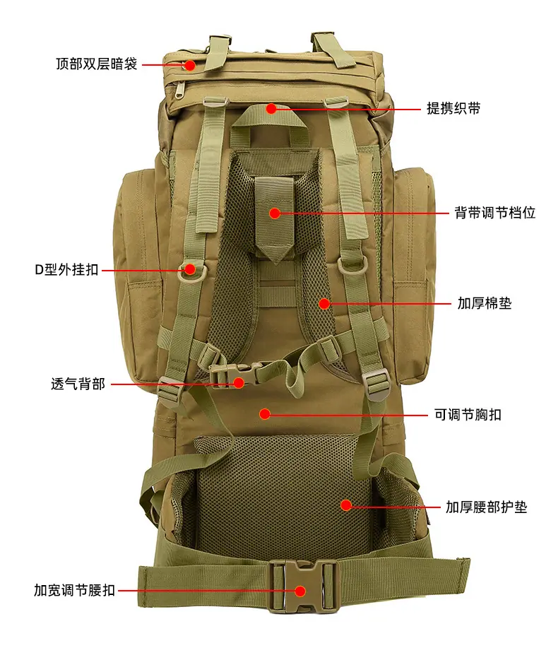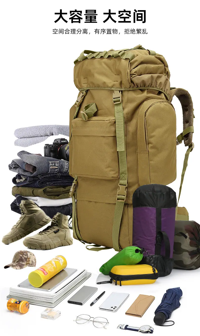 Bolsa Militar Camuflada Externa Personalizada OEM Mochila Tática de Montanhismo Esportiva para Caminhada Grande Capacidade 65 Mochila Grande