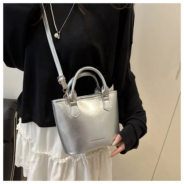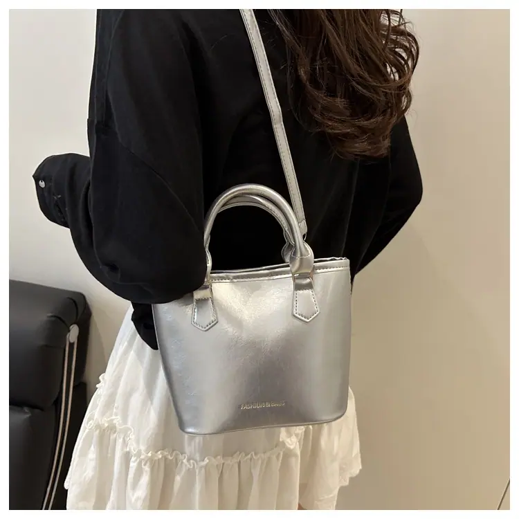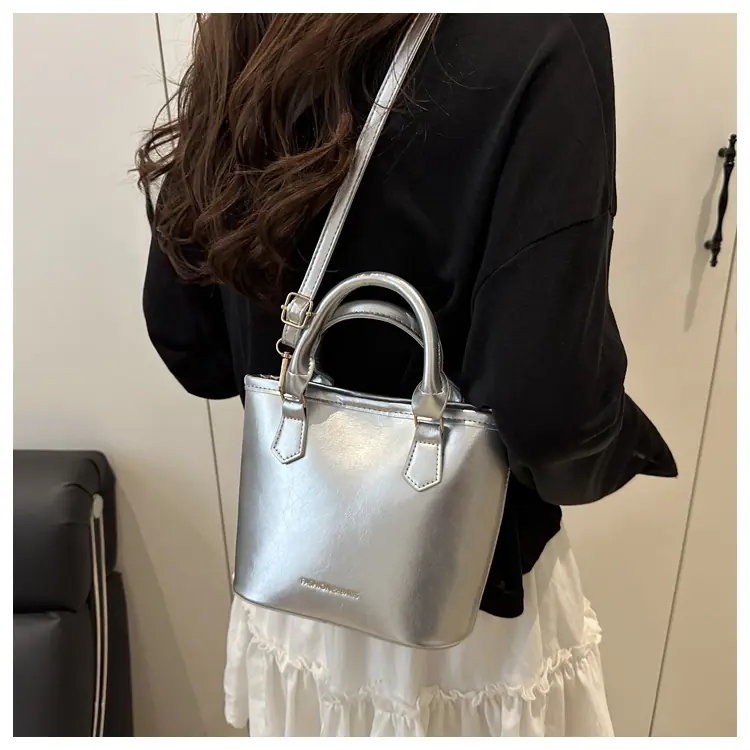 Bolsa pequena popular feminina deste ano 2025 nova moda simples versátil de ombro único transversal bolsa textura bolsa de mão bolsa balde