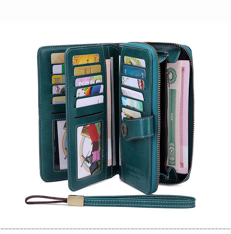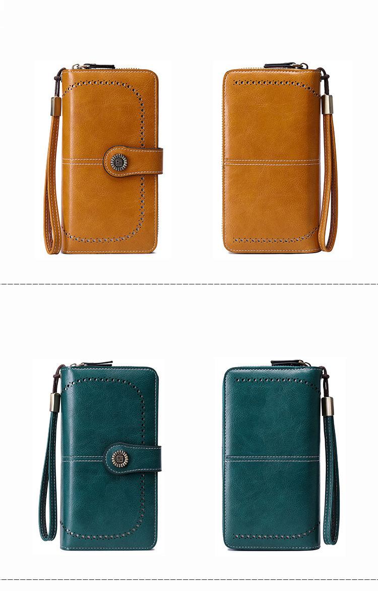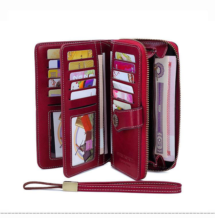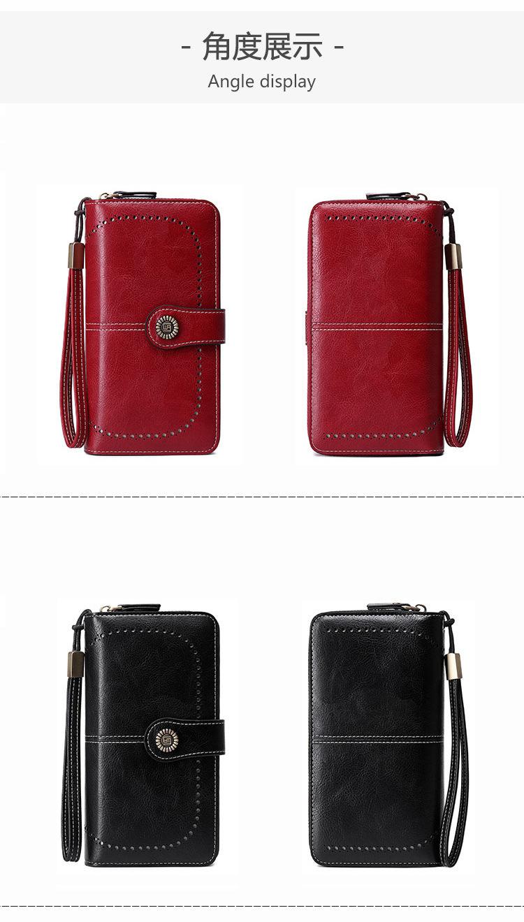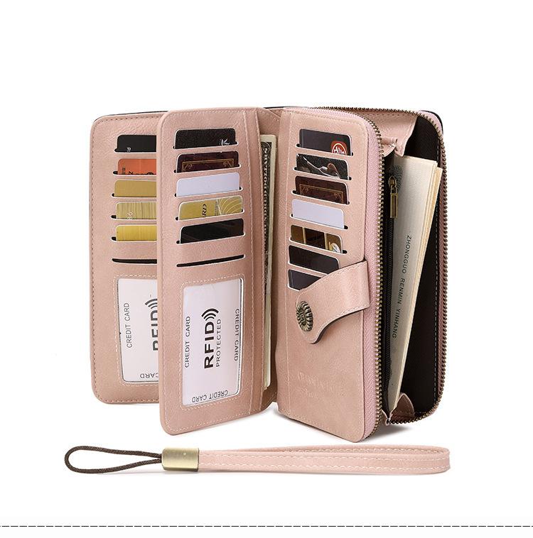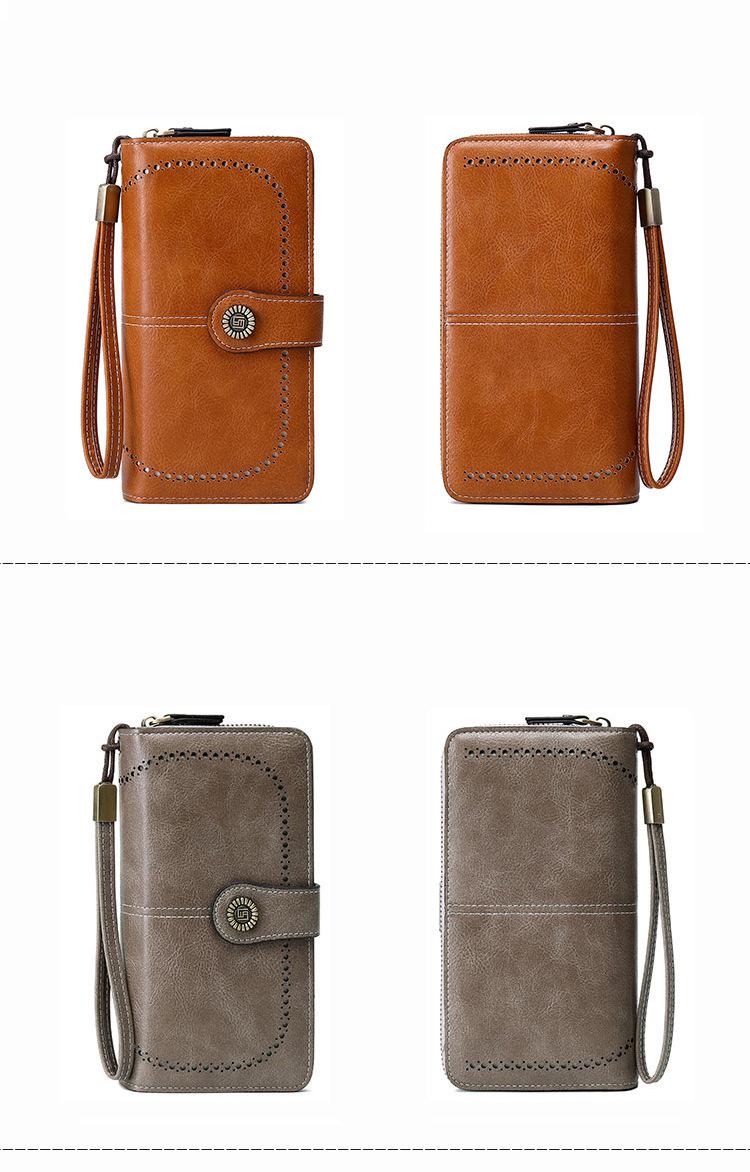 Carteira Antimagnética RFID para Mulheres 2023 Nova Carteira Feminina Europeia e Americana Carteira de Couro Encerado a Óleo Carteira Bolsa de Mão de Grande Capacidade