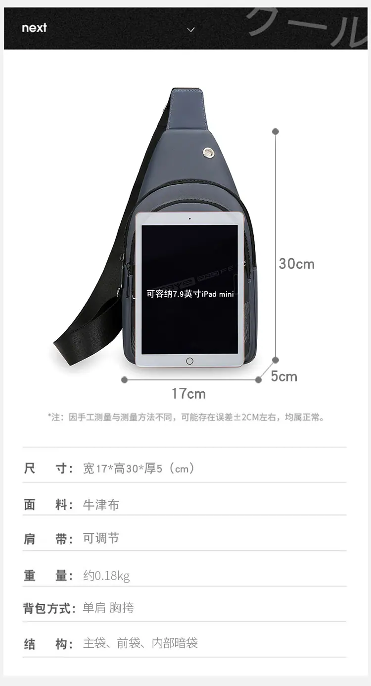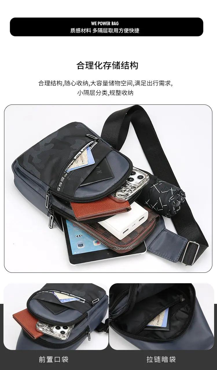 Bolsa de peito da moda internacional masculina, bolsa de ombro casual Oxford, mochila transversal, nova tendência, bolsa de cintura, bolsa transversal, atacado