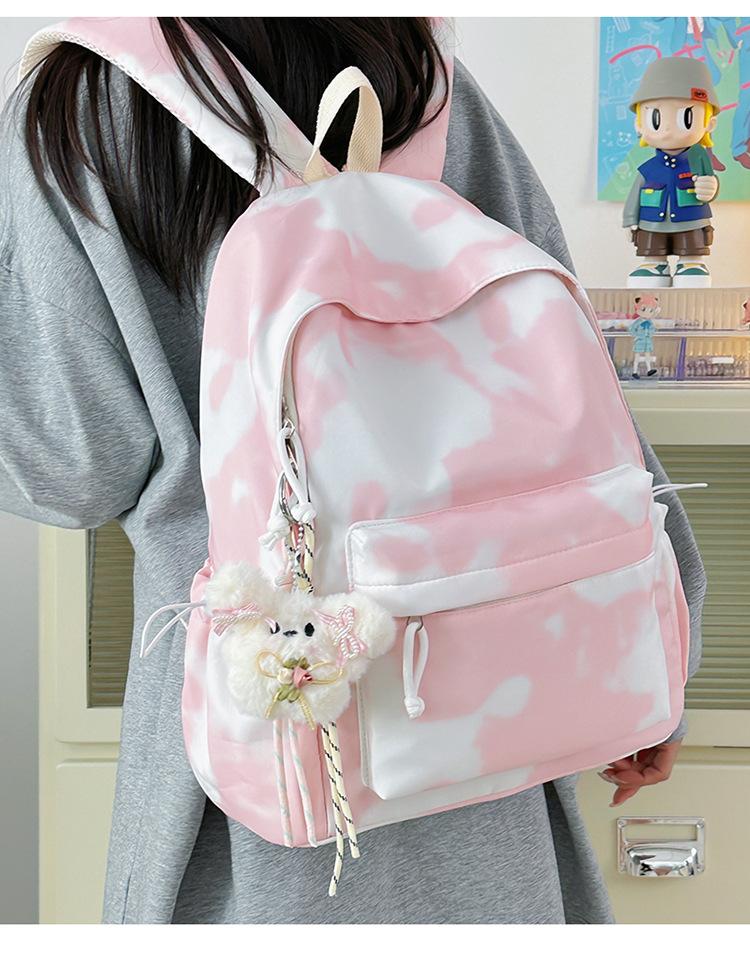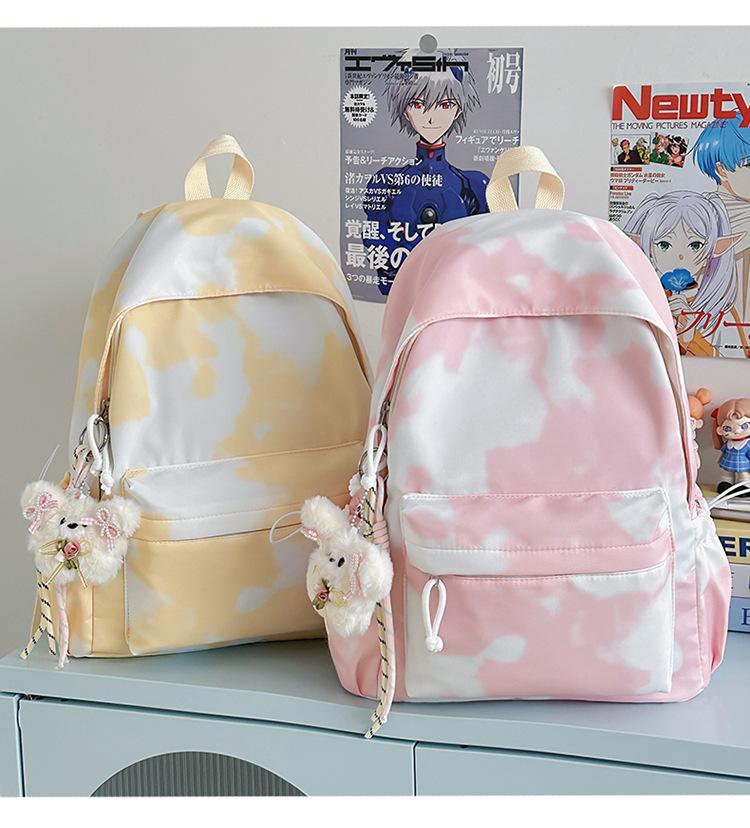 Mochila Estilo Universitário Feminina 2025 Nova Moda Casual Tie-dye Mochila de Viagem Ensino Fundamental Ensino Médio Estudante Universitário Mochila Tendência