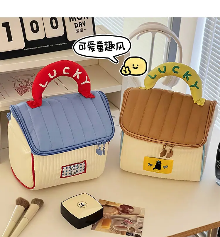 Nova casa fofa Bolsa de cosméticos de grande capacidade para mulheres de alto valor Artigos de higiene pessoal portáteis de viagem e cuidados com a pele Bolsa de armazenamento portátil