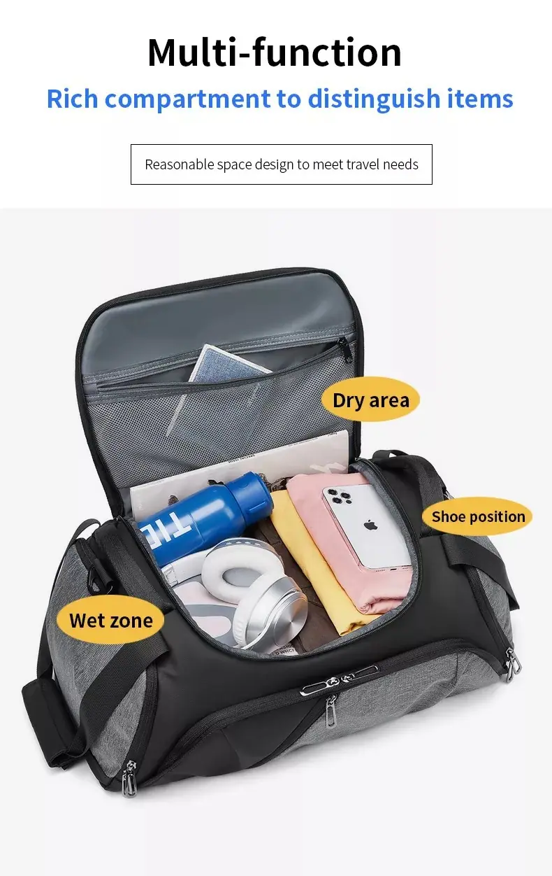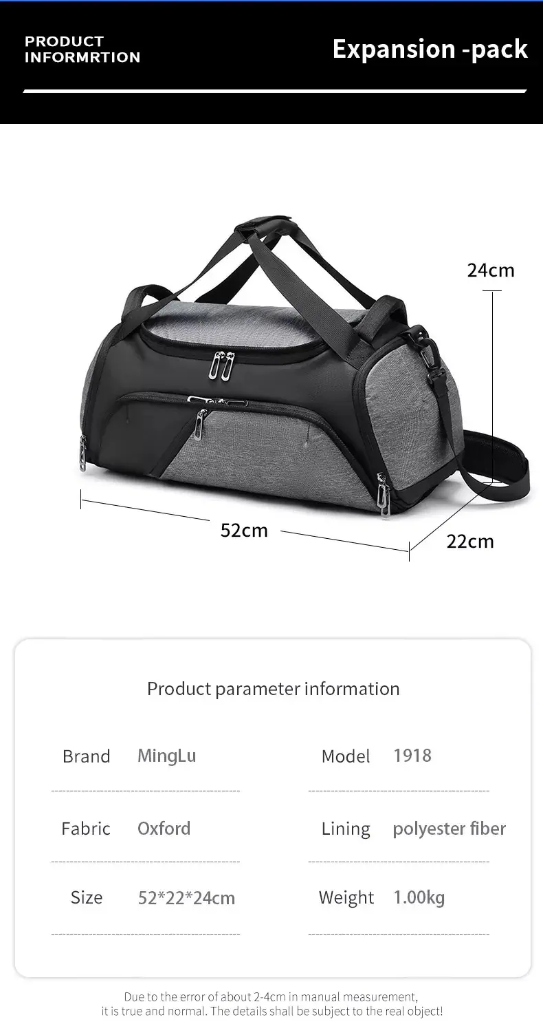 Bolsa Fitness Separação Seco e Molhado Bolsa de Treino Mochila de Grande Capacidade Masculina Transversal Portátil Bolsa Esportiva Bolsa de Viagem