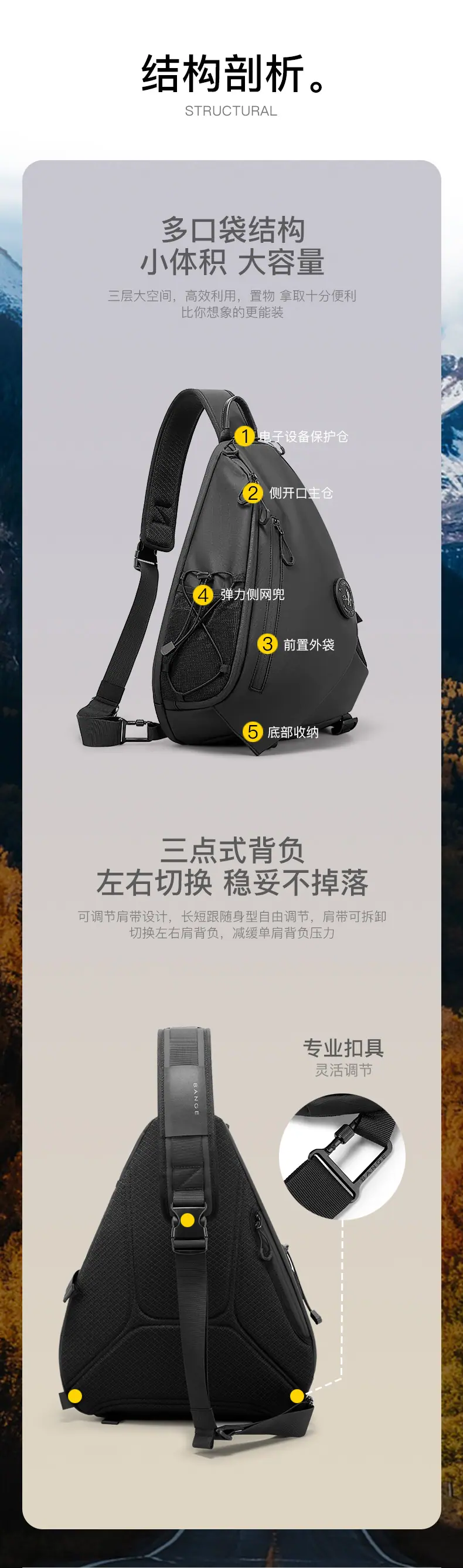 Bange Nova Bolsa de Peito Masculina Grande Capacidade Mochila Ciclismo Outdoor Versátil Esportes Viagem Ombro Transversal Moderna