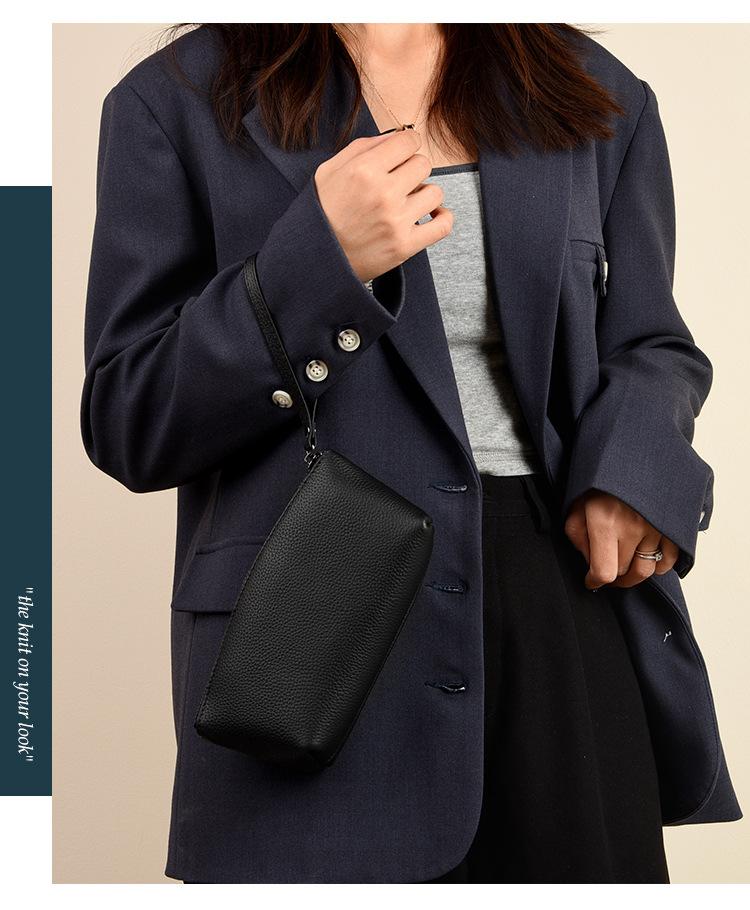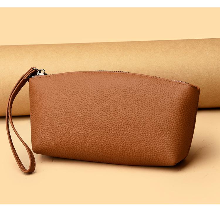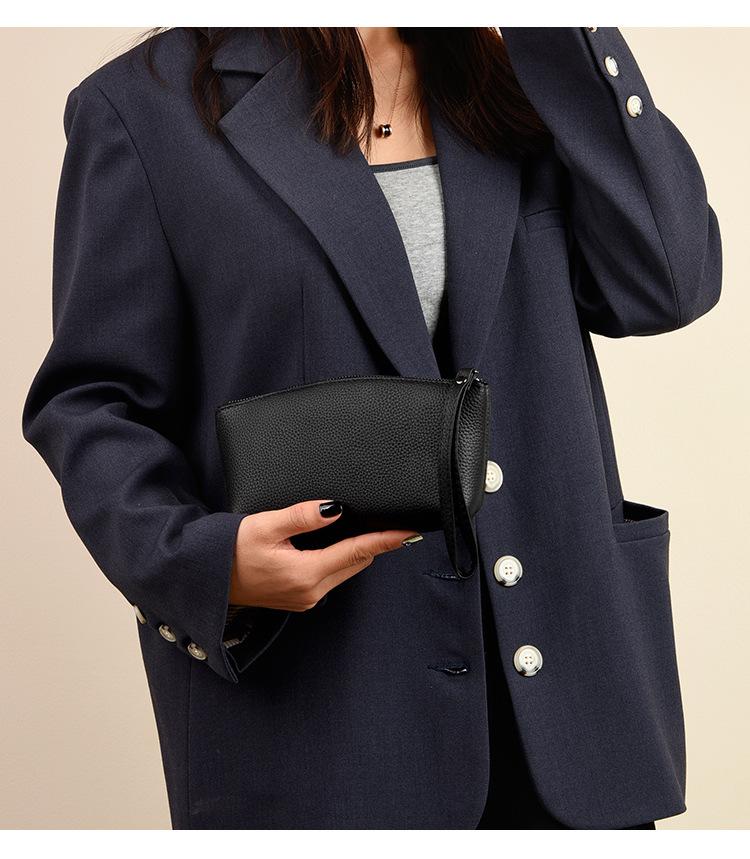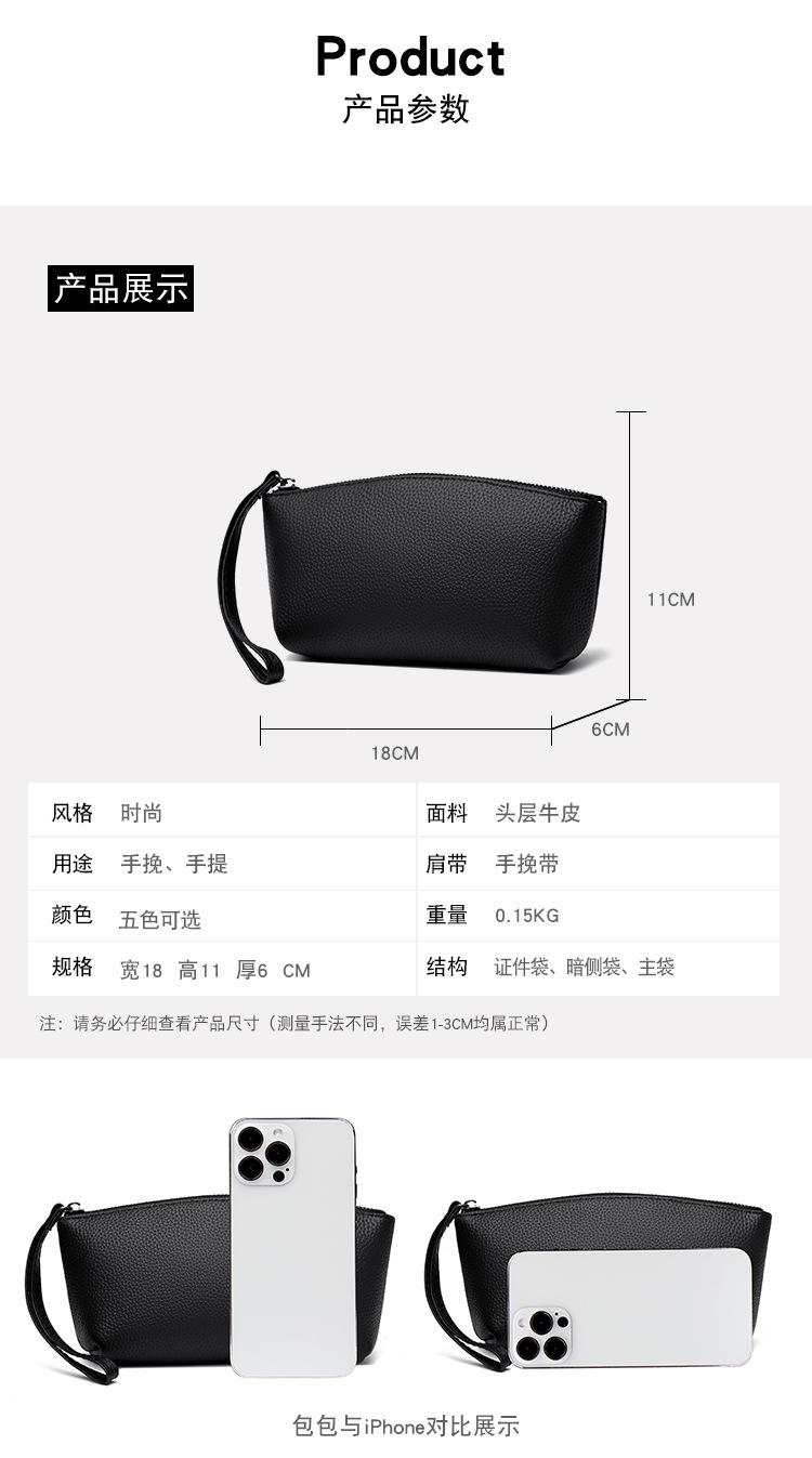 Camada Superior Couro de Vaca Couro de Vaca Puro Grande Capacidade Porta-Moedas Feminino Simples Couro Genuíno Carteira de Mão para Celular Notas Grandes Bolsa Clutch