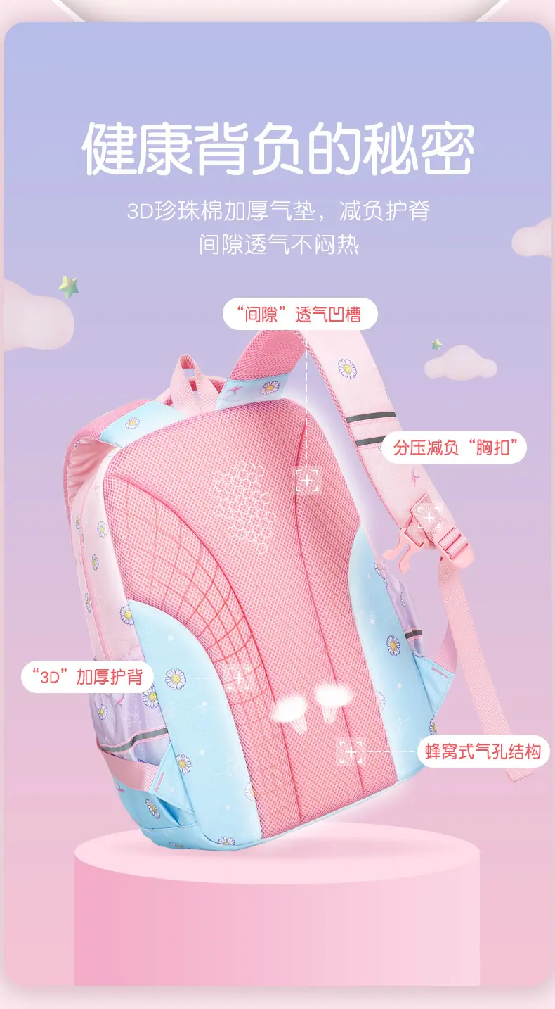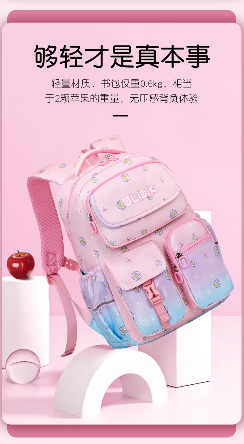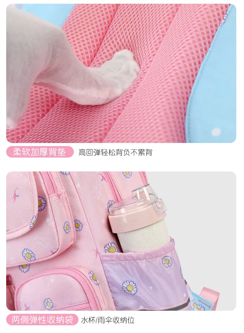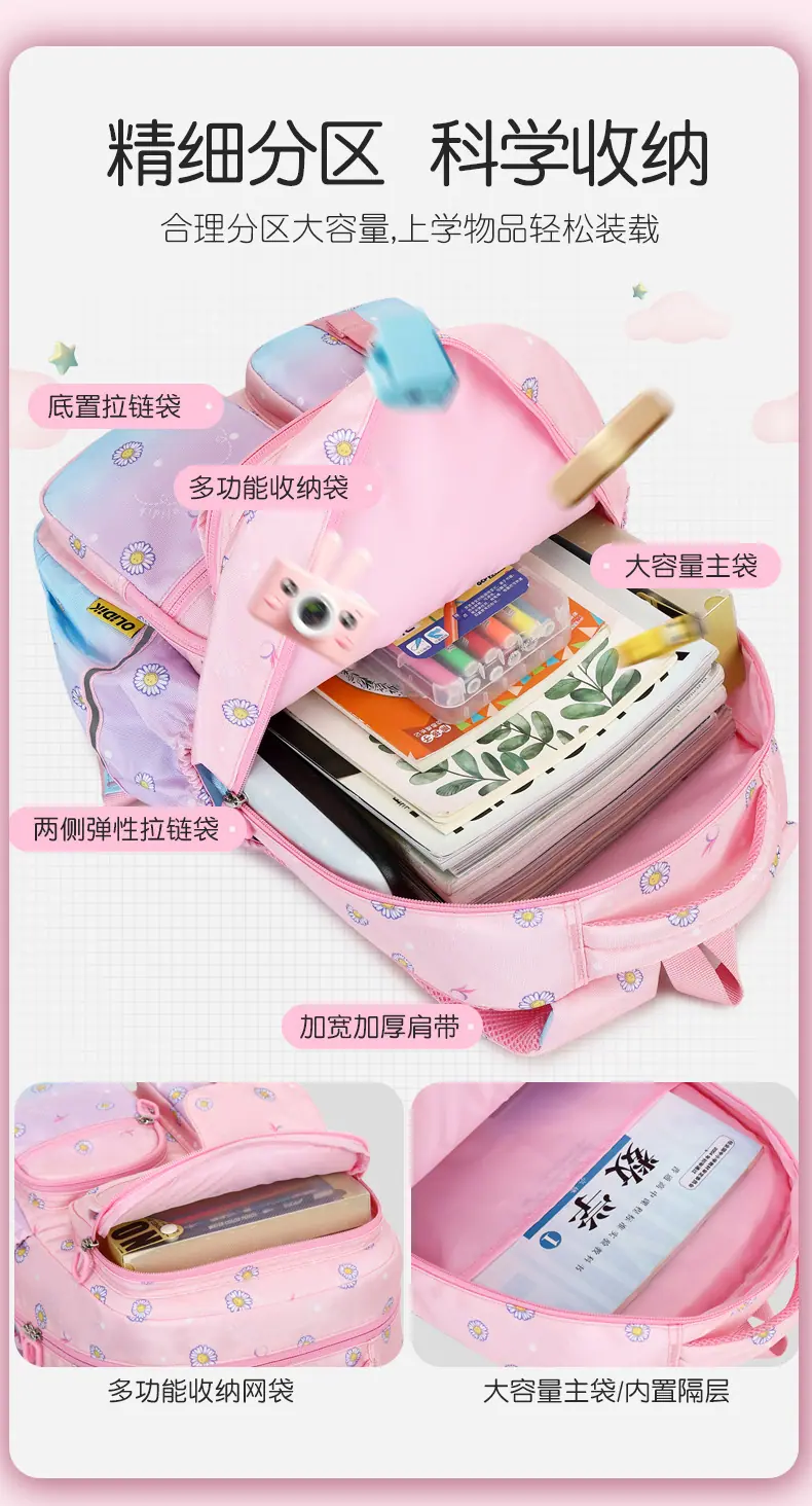 Mochila Escolar para Aluna do Ensino Fundamental Mochila para Meninas 1º ao 6º Ano Redução de Carga Proteção para a Coluna Leve Grande Capacidade Mochila Infantil Fofa