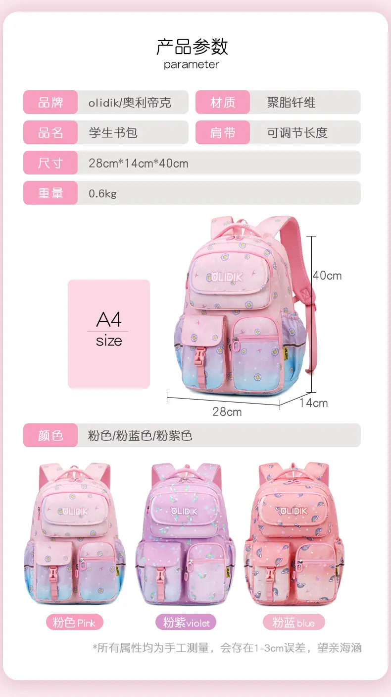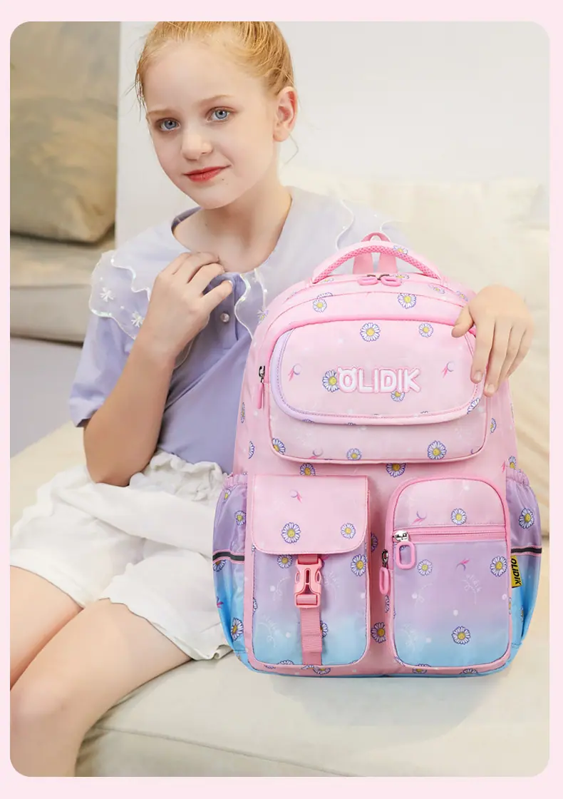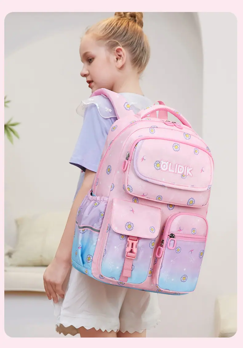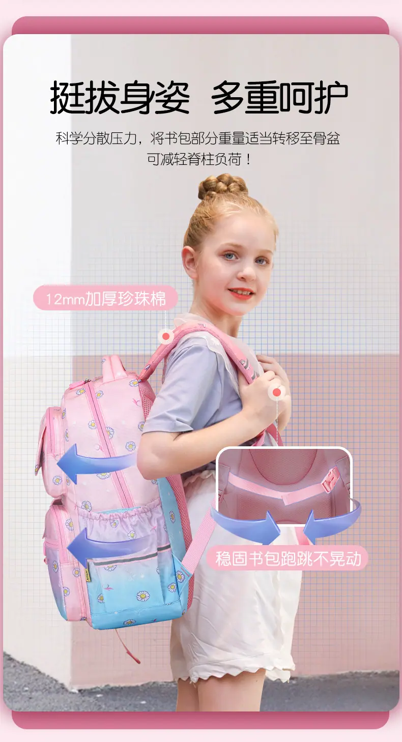 Mochila Escolar para Aluna do Ensino Fundamental Mochila para Meninas 1º ao 6º Ano Redução de Carga Proteção para a Coluna Leve Grande Capacidade Mochila Infantil Fofa