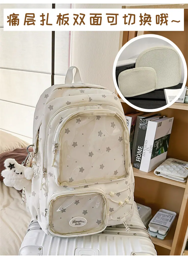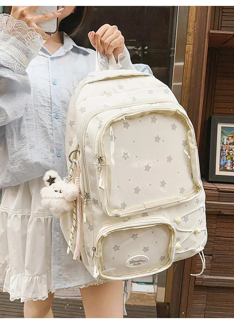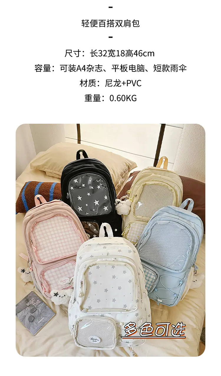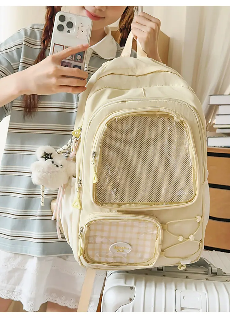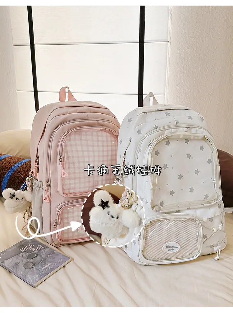 Mochila Transparente Nova 2025 Leve Simples Mochila Escolar para Estudantes do Ensino Fundamental Júnior Estilo Japonês Resistente à Sujeira Grande Capacidade Bolsa Ita Fofa