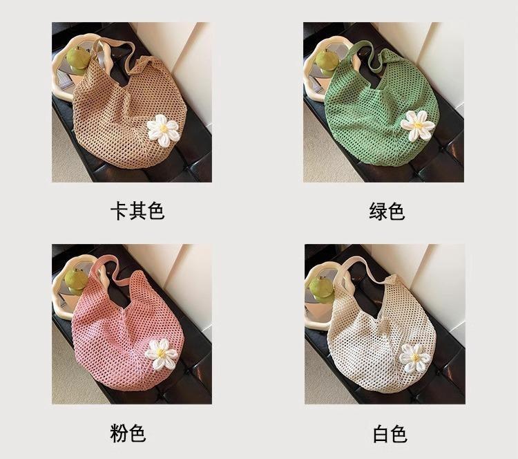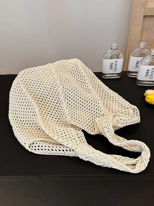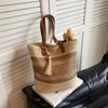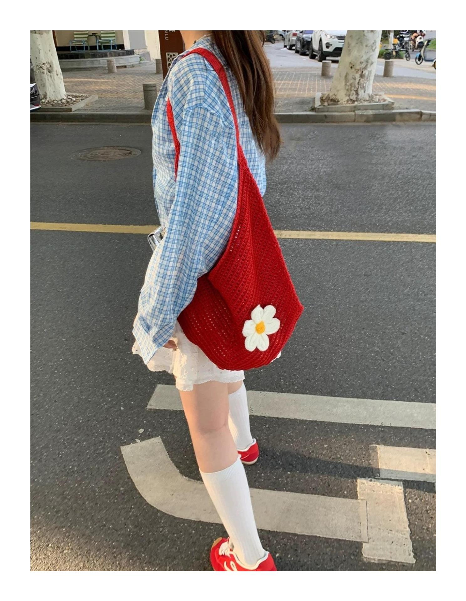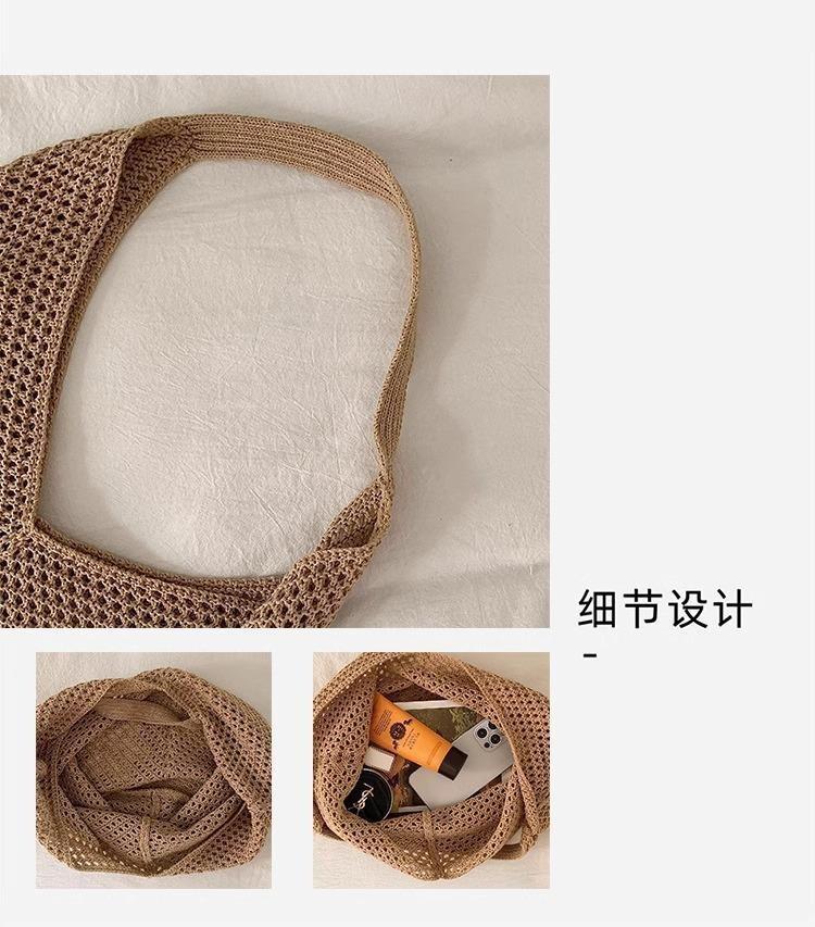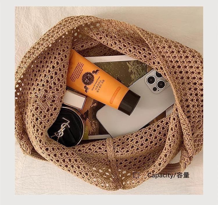 Bolsa Tecida de Grande Capacidade Verão Design Nicho Vermelha Vazada Bolsa de Palha Praia Viagem Ombro Sacola Tote