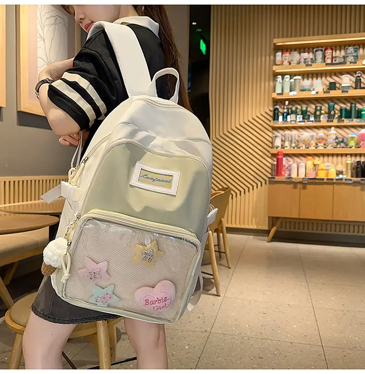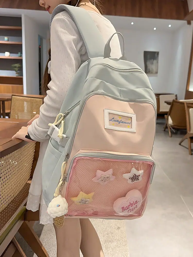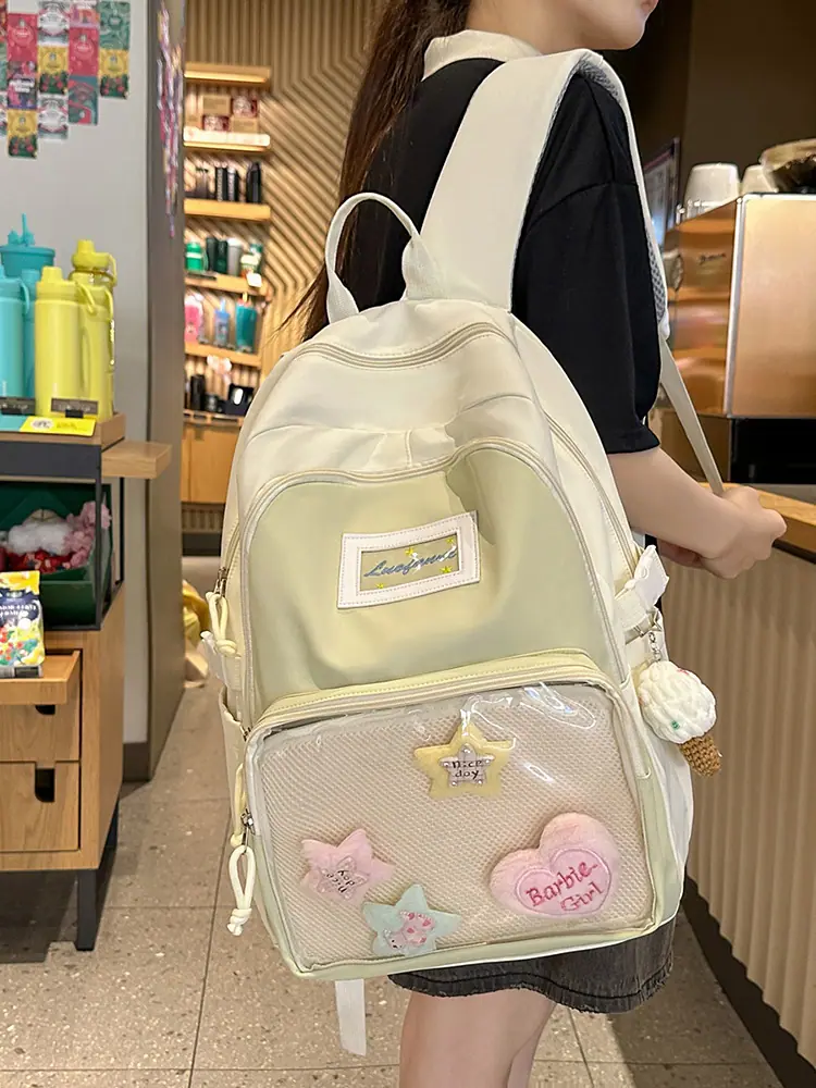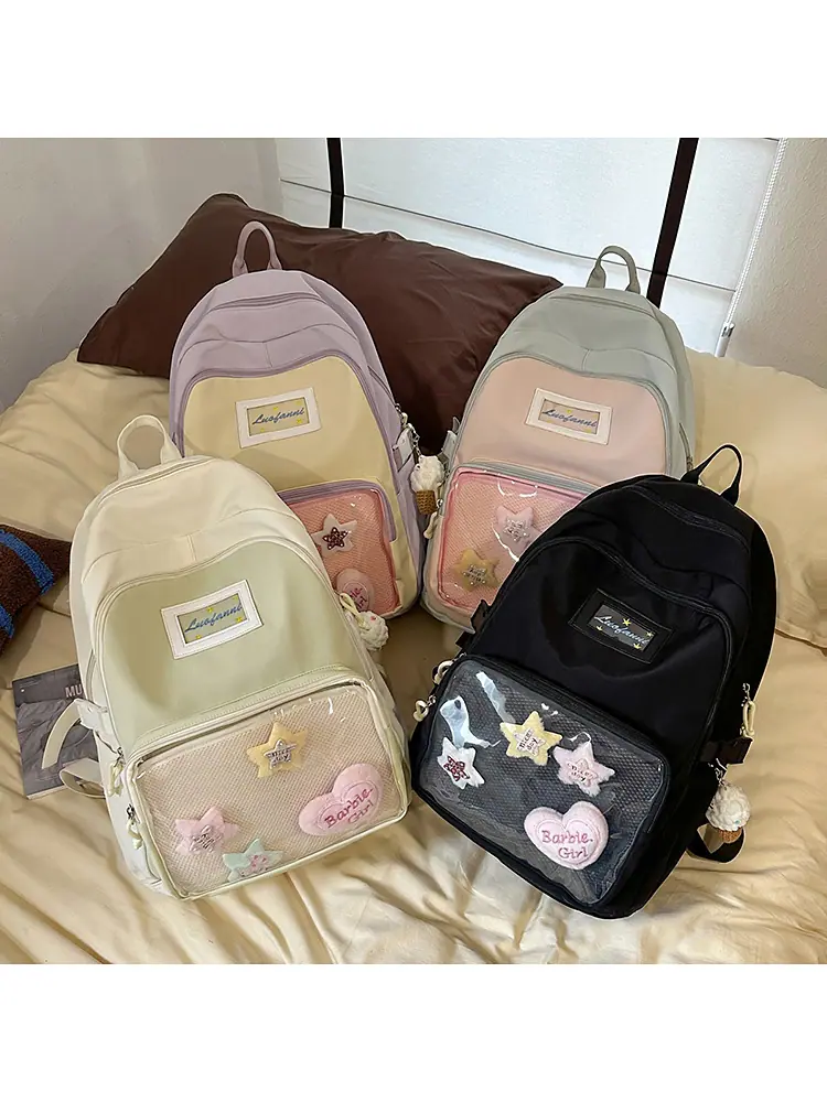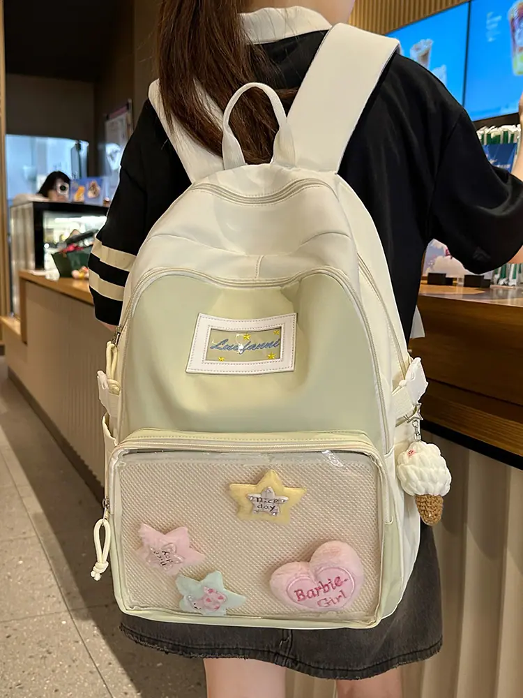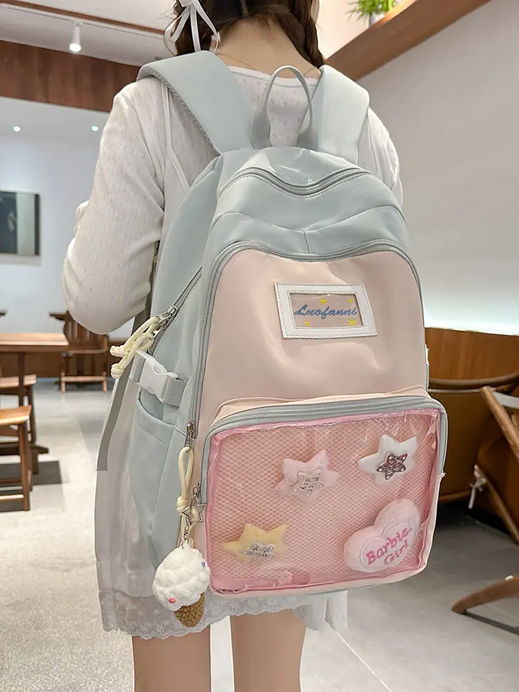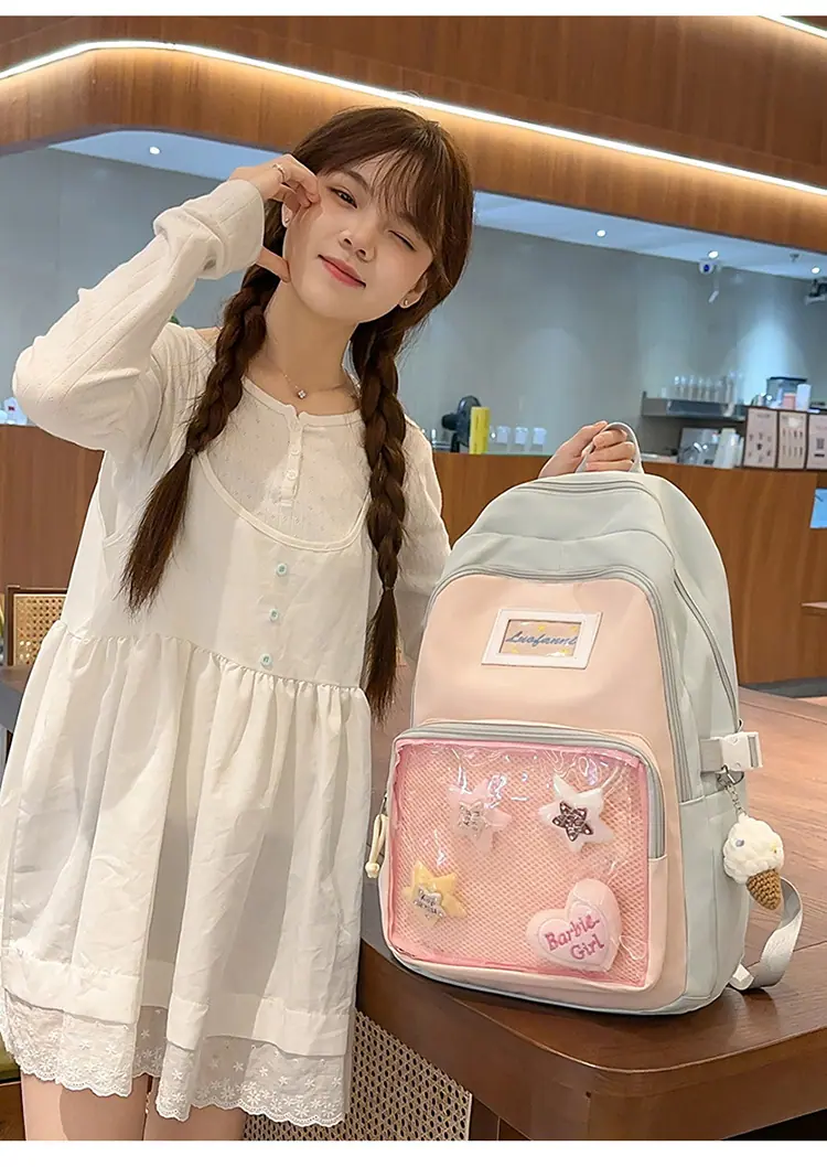 Mochila fofa estilo campus japonês, grande capacidade, mochila escolar para estudantes do ensino fundamental, ensino médio, faculdade, mulheres, casual, para viagens, mochila ita