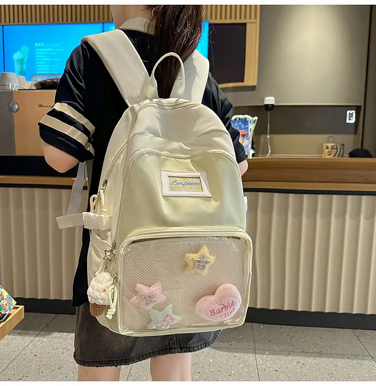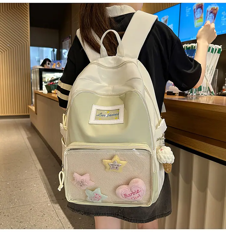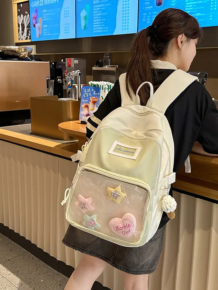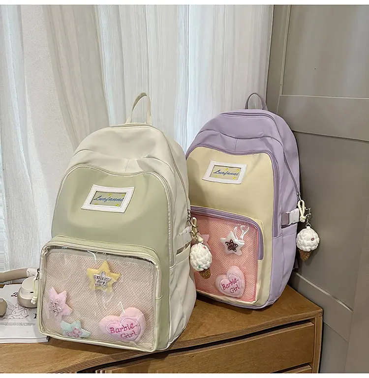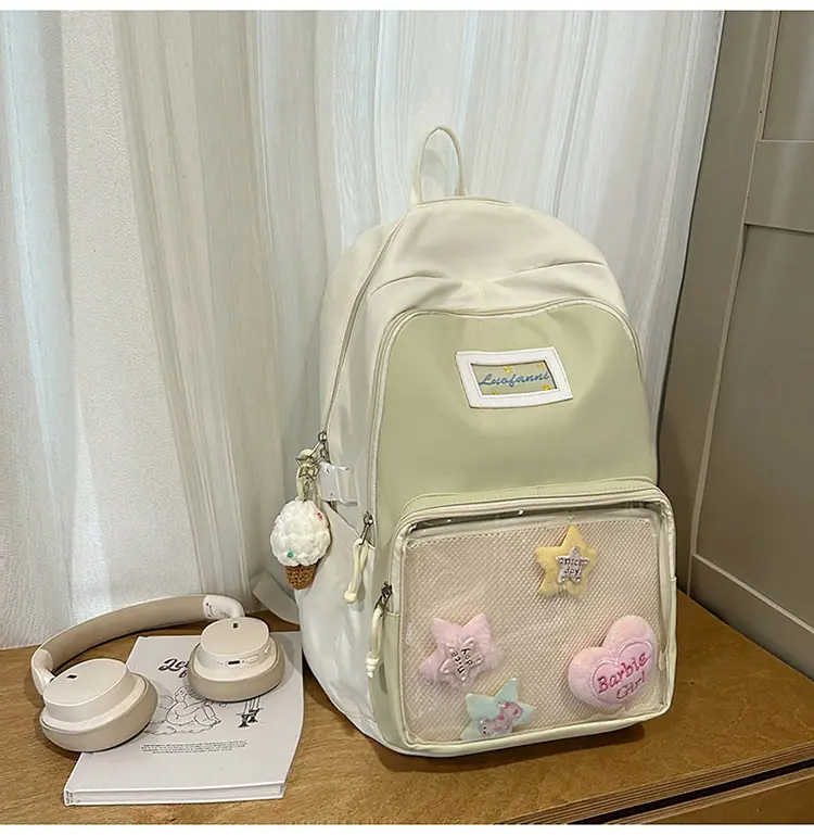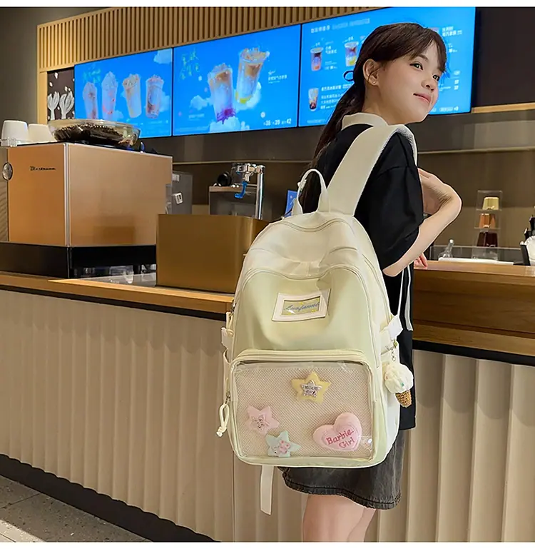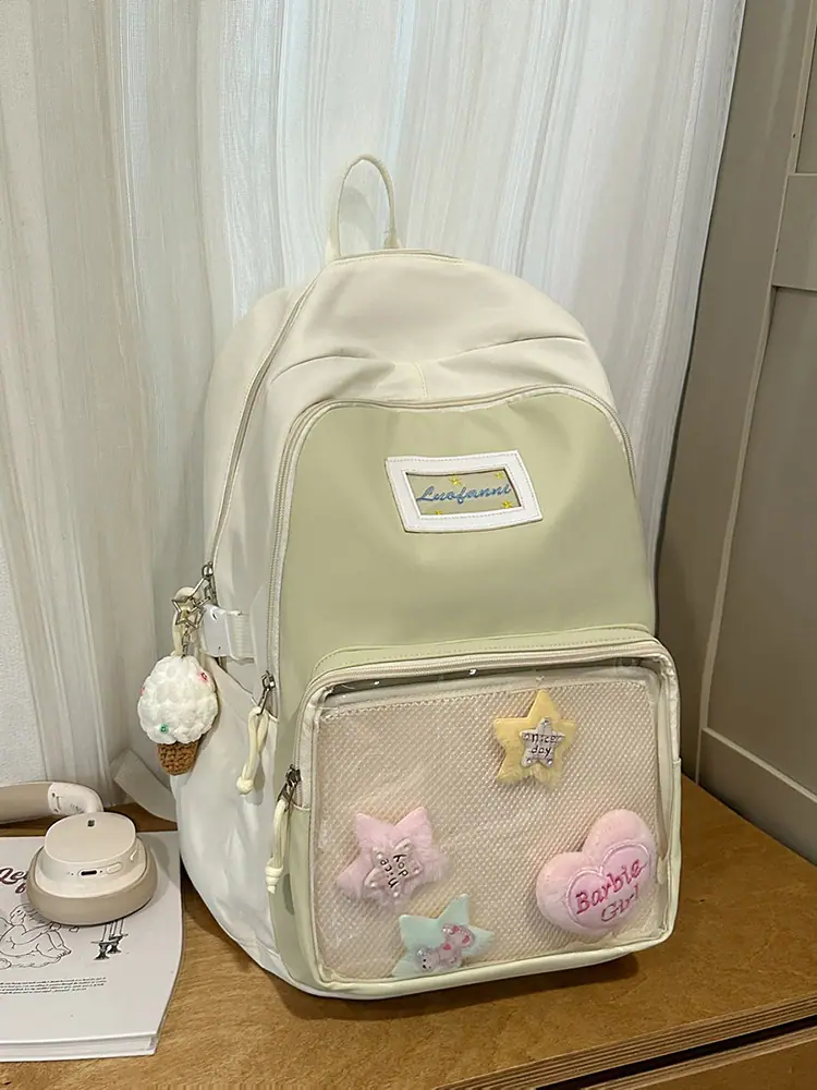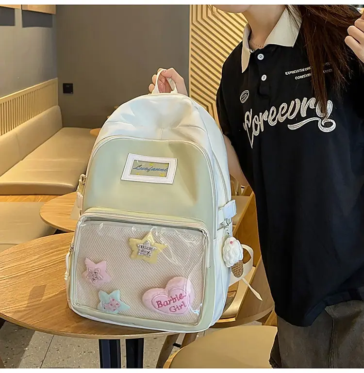 Mochila fofa estilo campus japonês, grande capacidade, mochila escolar para estudantes do ensino fundamental, ensino médio, faculdade, mulheres, casual, para viagens, mochila ita