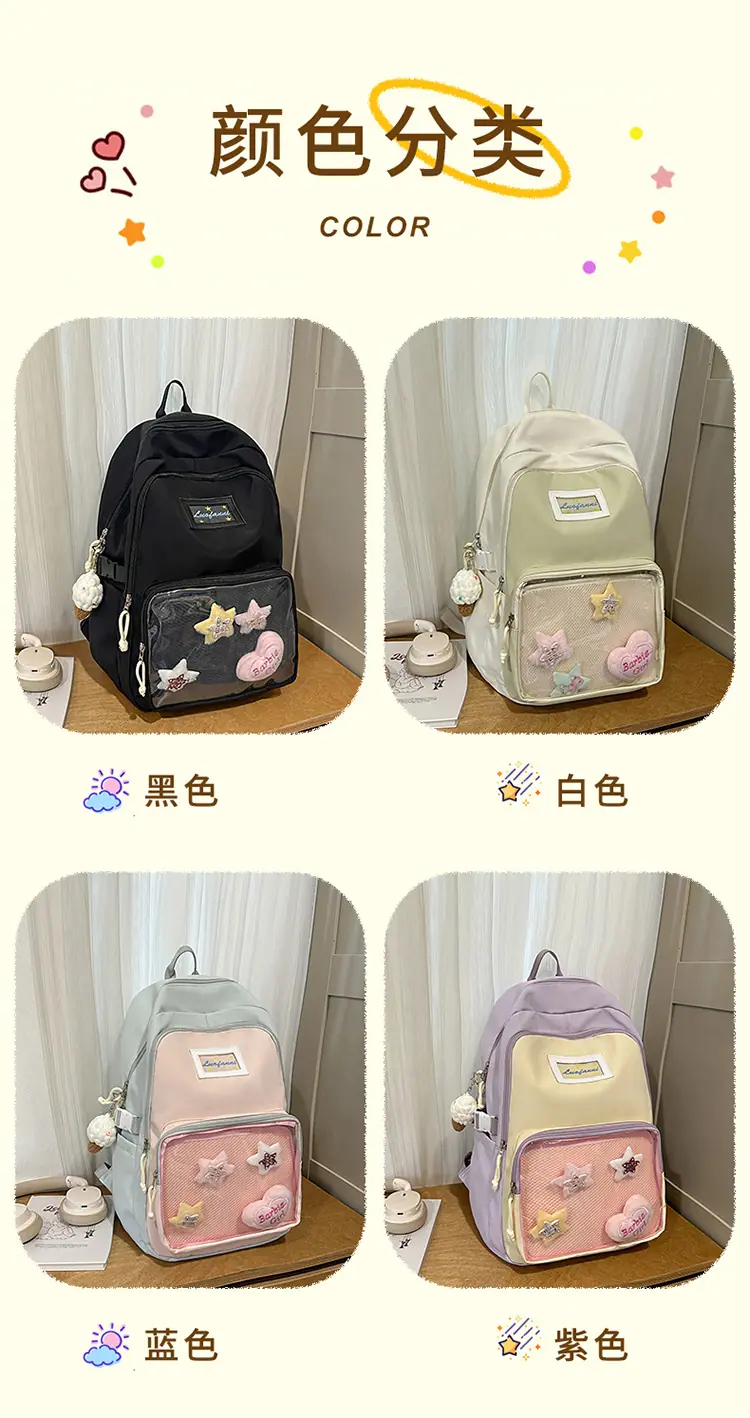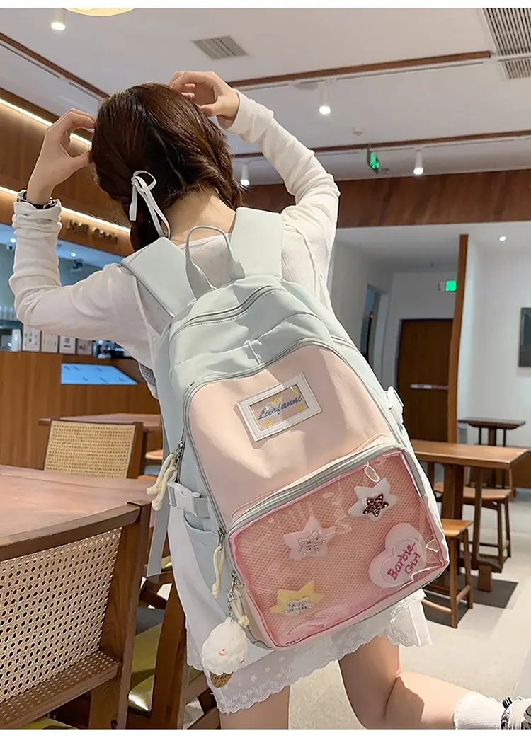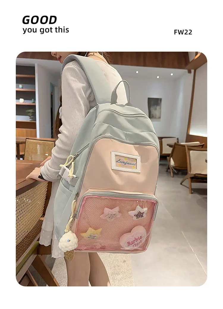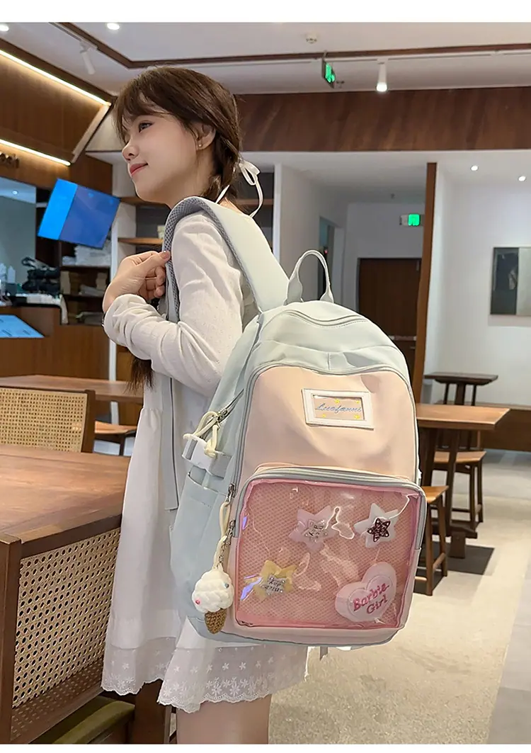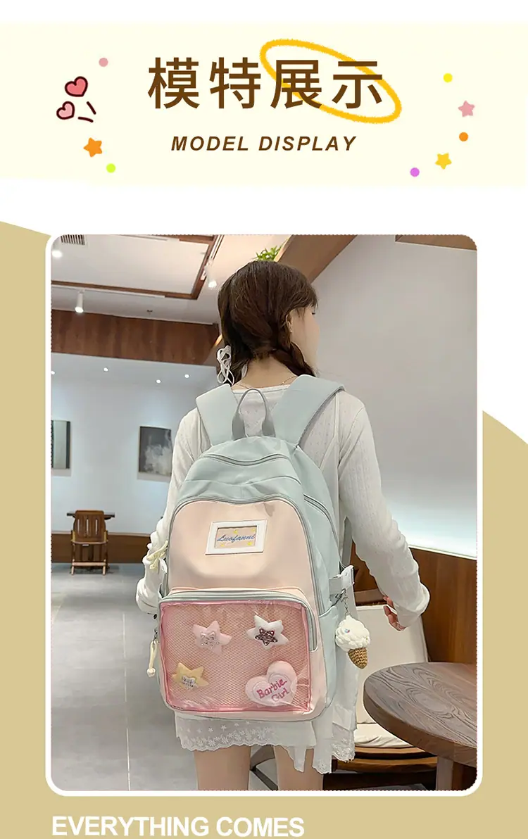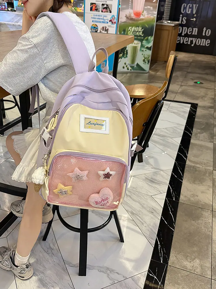 Mochila fofa estilo campus japonês, grande capacidade, mochila escolar para estudantes do ensino fundamental, ensino médio, faculdade, mulheres, casual, para viagens, mochila ita