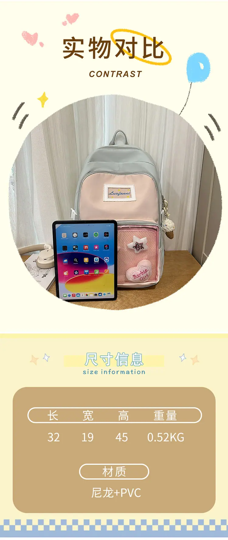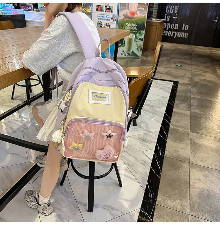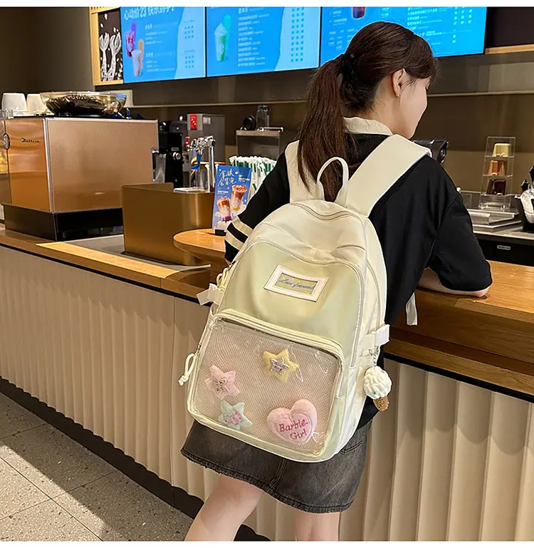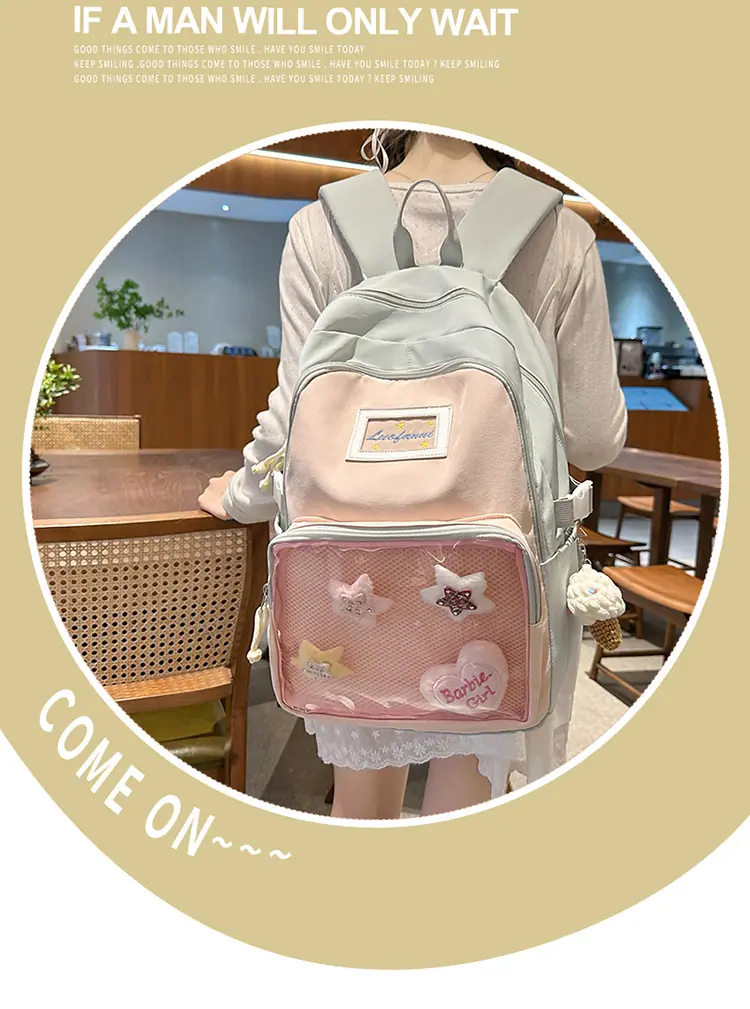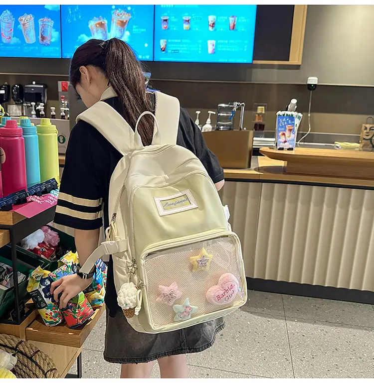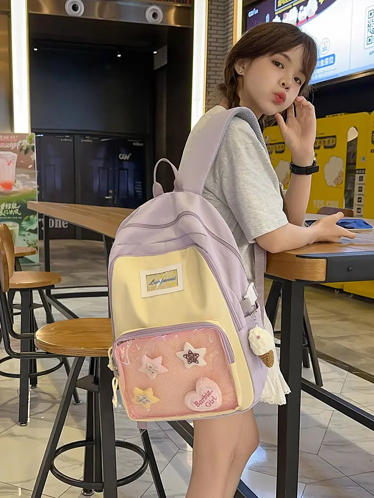 Mochila fofa estilo campus japonês, grande capacidade, mochila escolar para estudantes do ensino fundamental, ensino médio, faculdade, mulheres, casual, para viagens, mochila ita