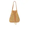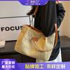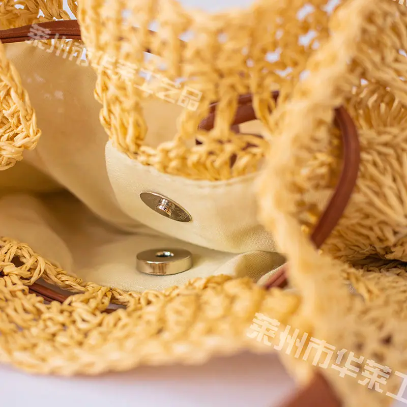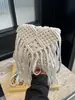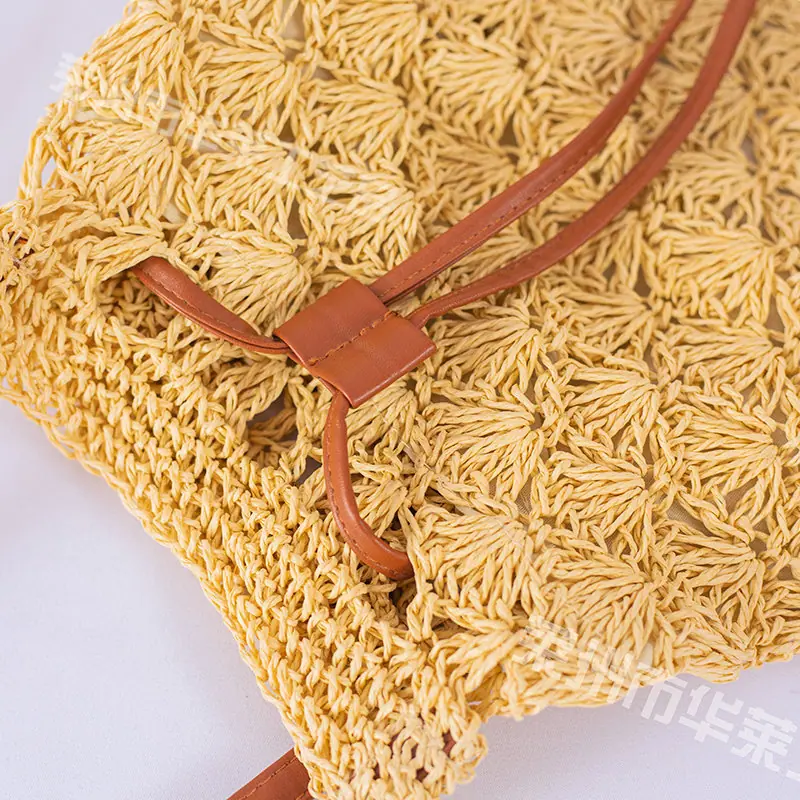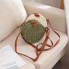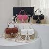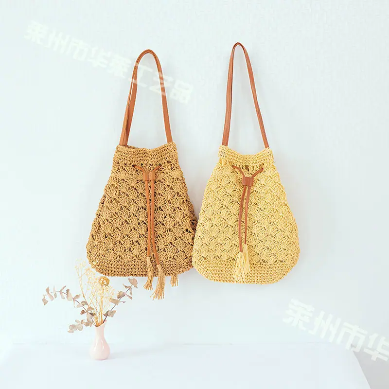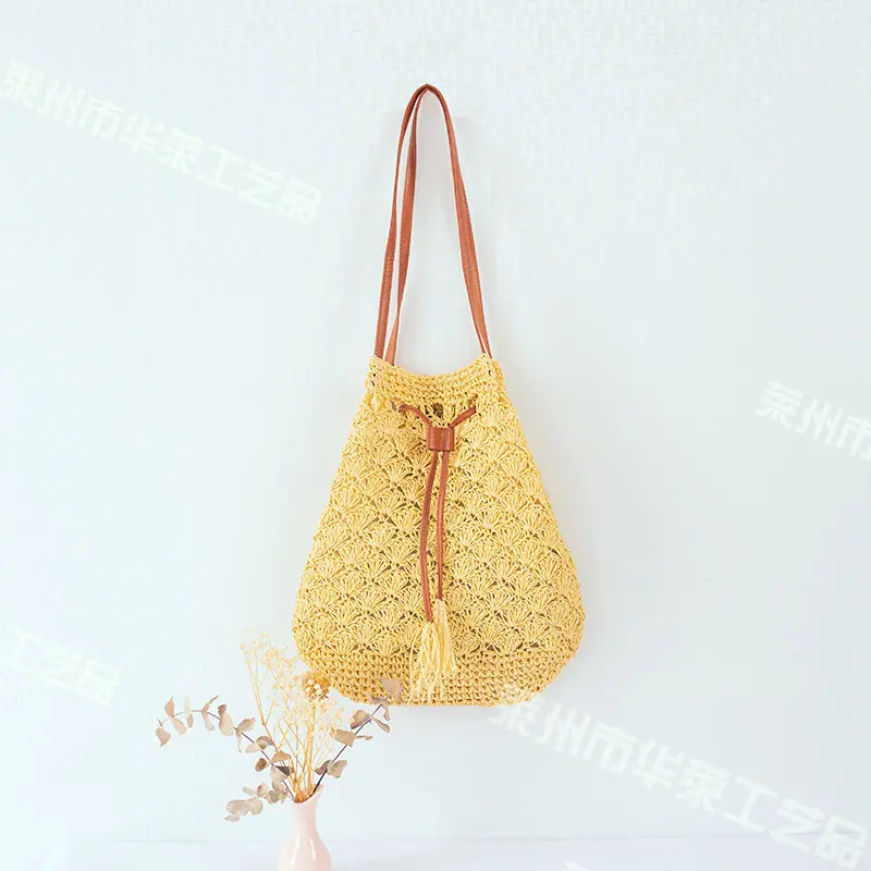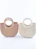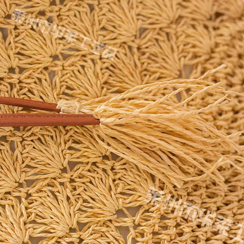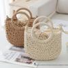 Bolsa feminina de palha tecida à mão, cor sólida versátil para férias diárias à beira-mar, bolsa de praia portátil de ombro com borla