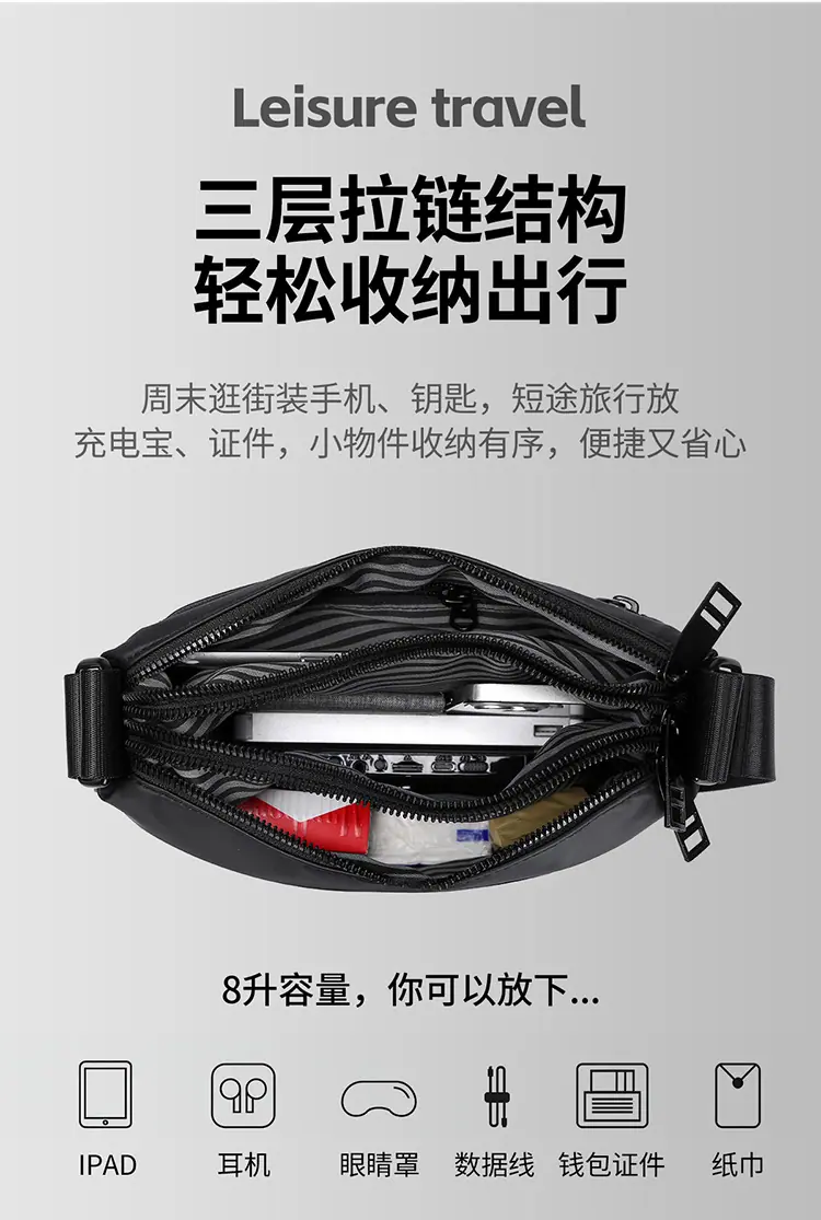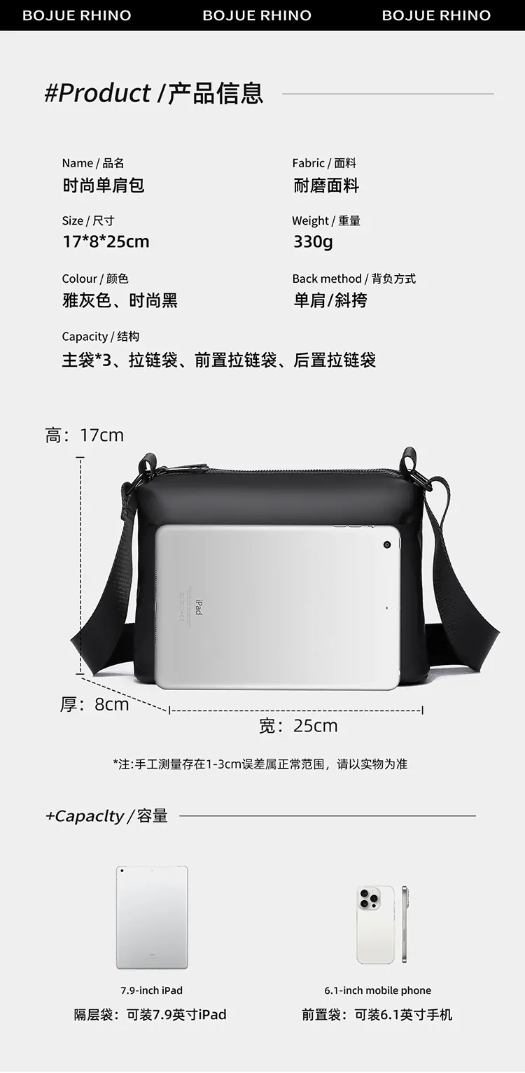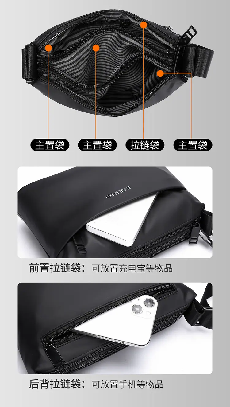 Nova bolsa de ombro da moda masculina, bolsa crossbody de negócios, bolsa casual para viagem, bolsa de tecido Oxford à prova d'água para homens