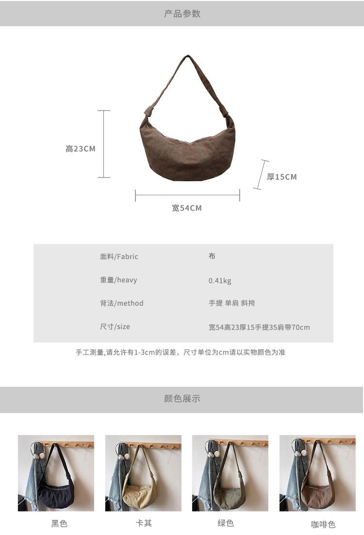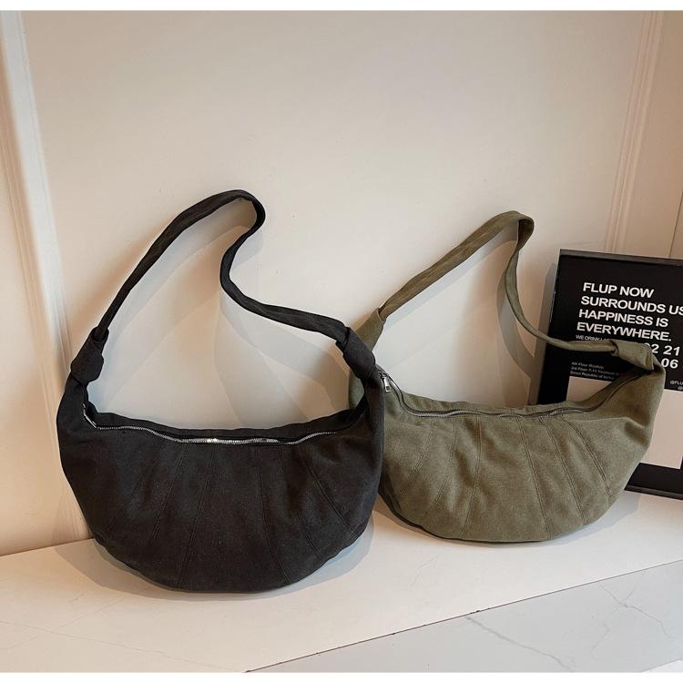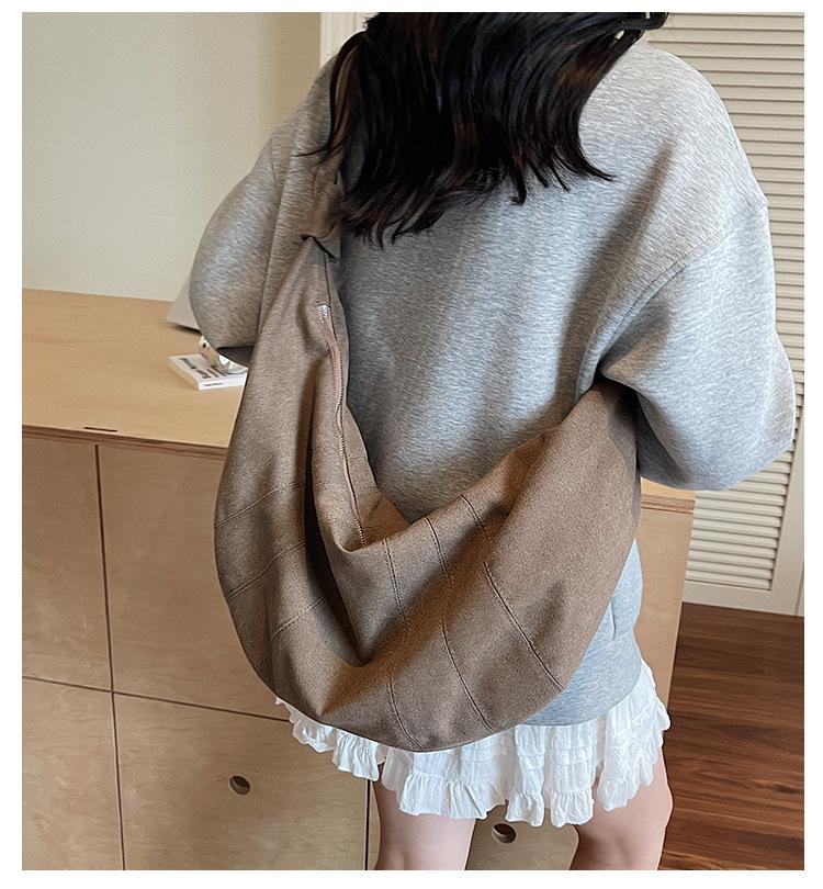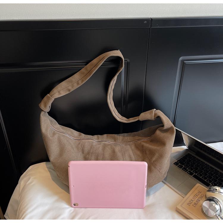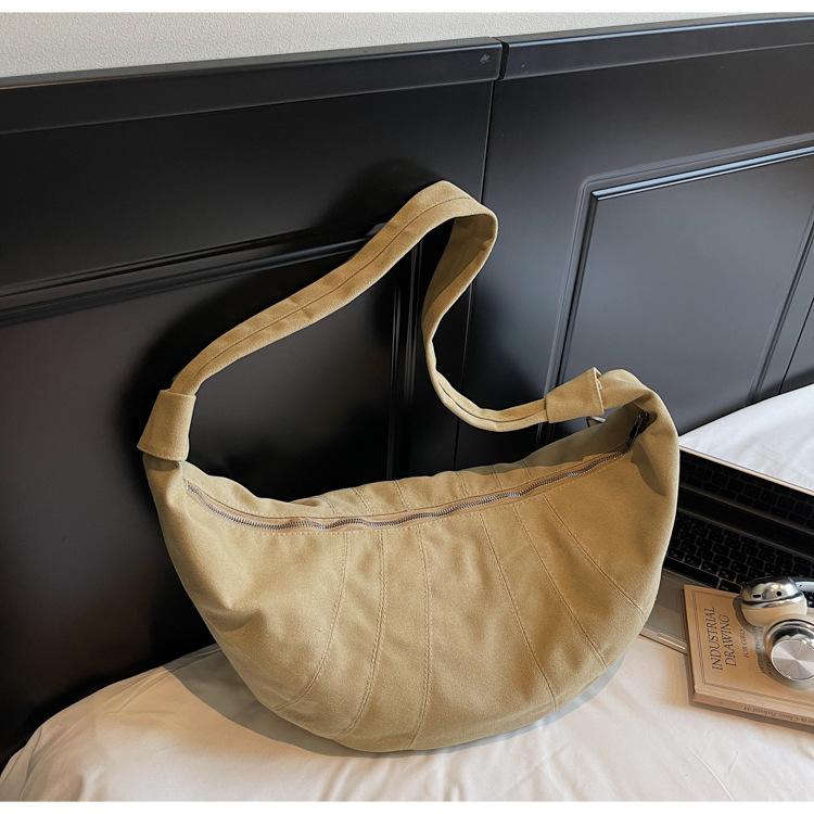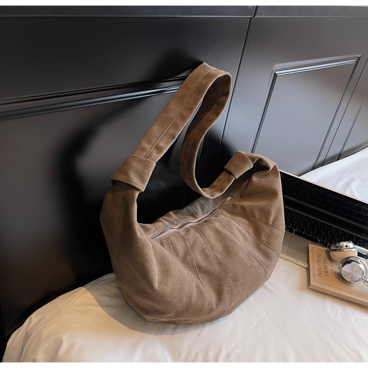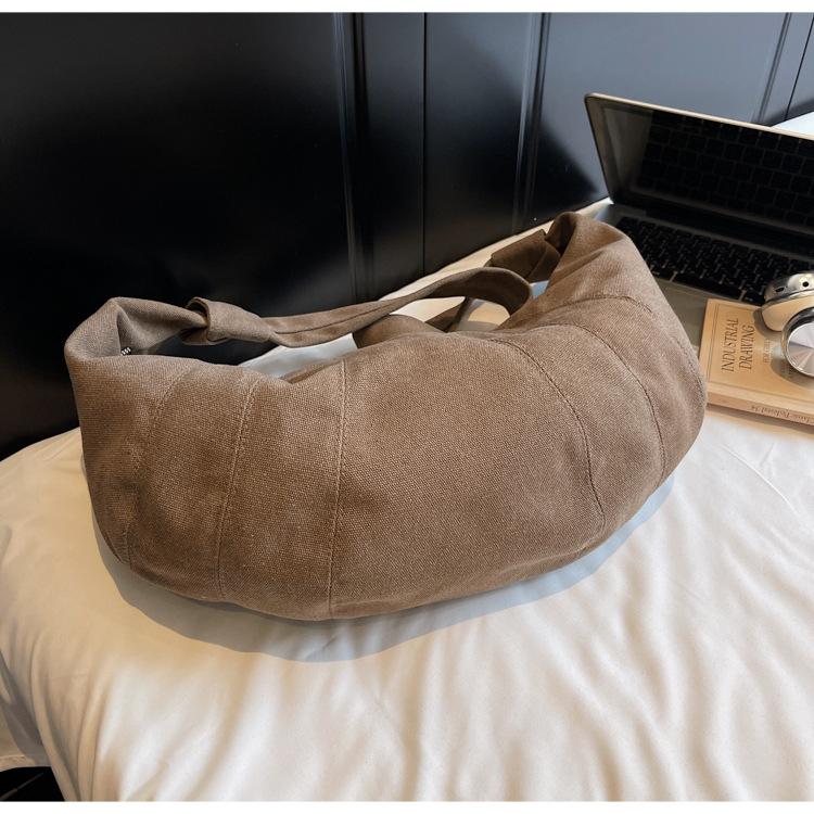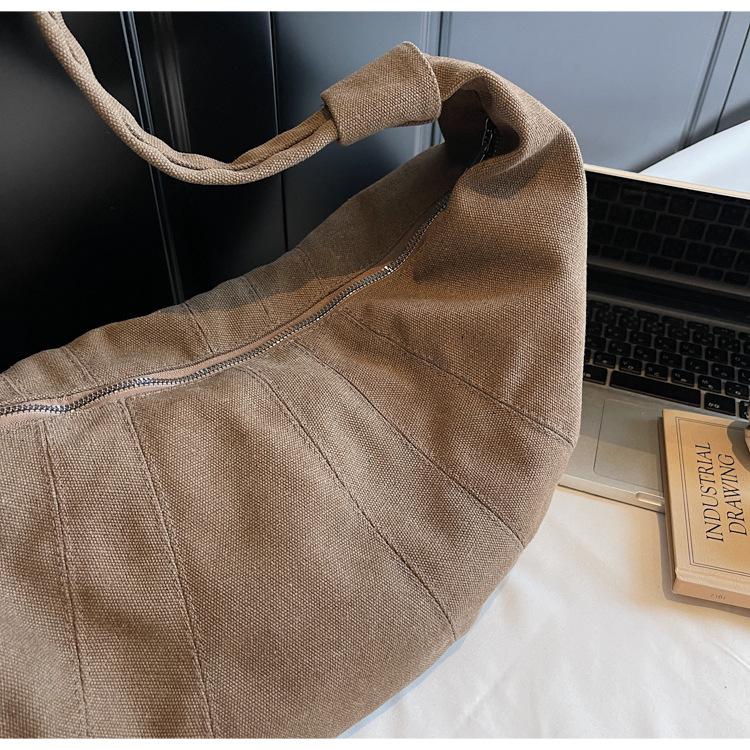 2025 Nova Linho Transfronteiriço Ombro Único Grande Capacidade Deslocamento Bolsa Dumpling Lona Meia-Lua Bolsa Croissant Bolsa Casual