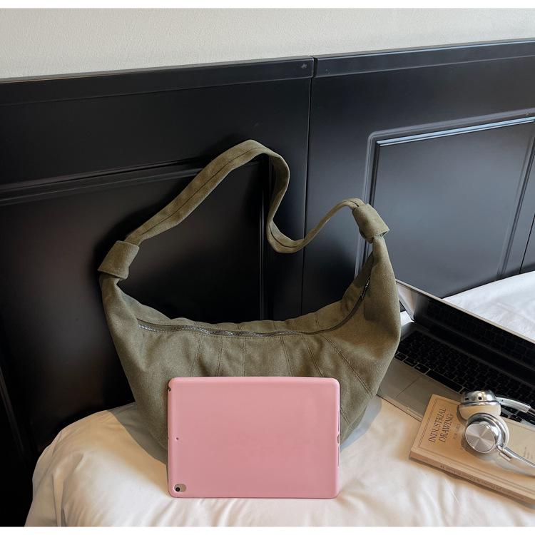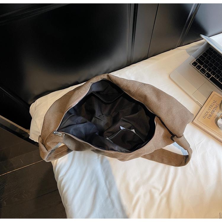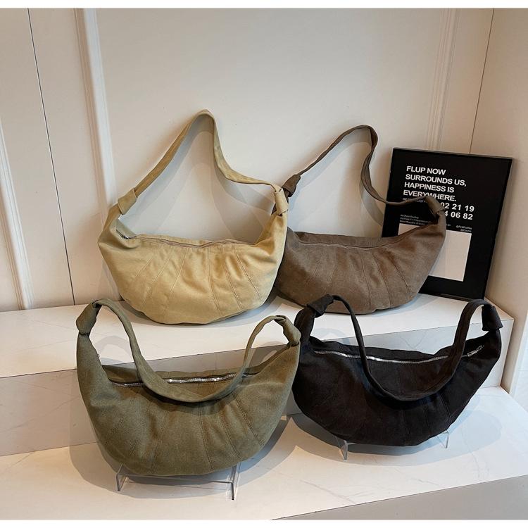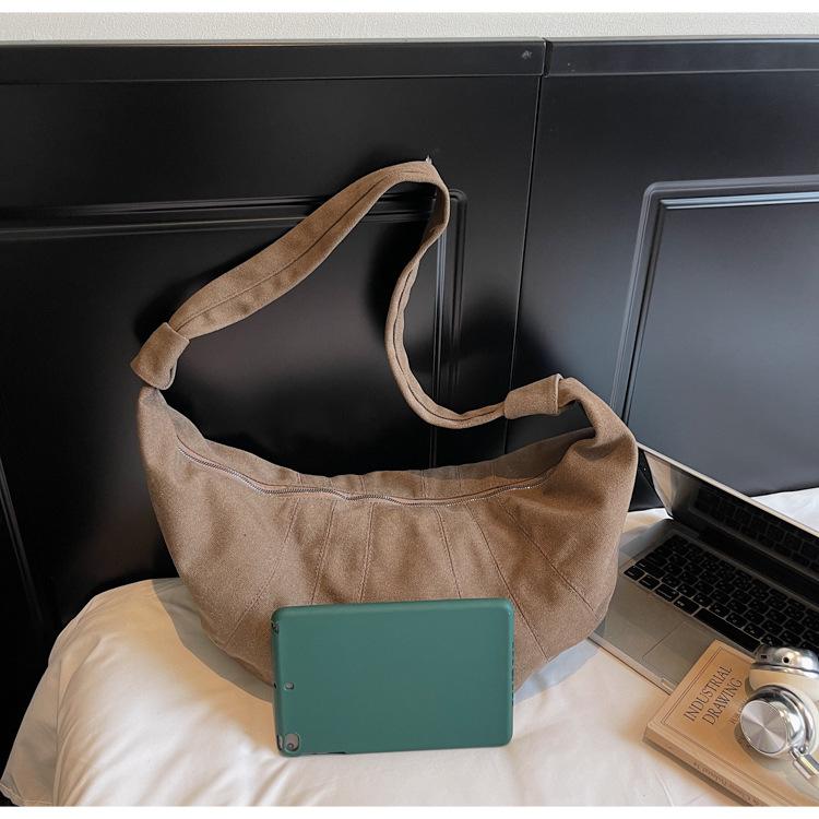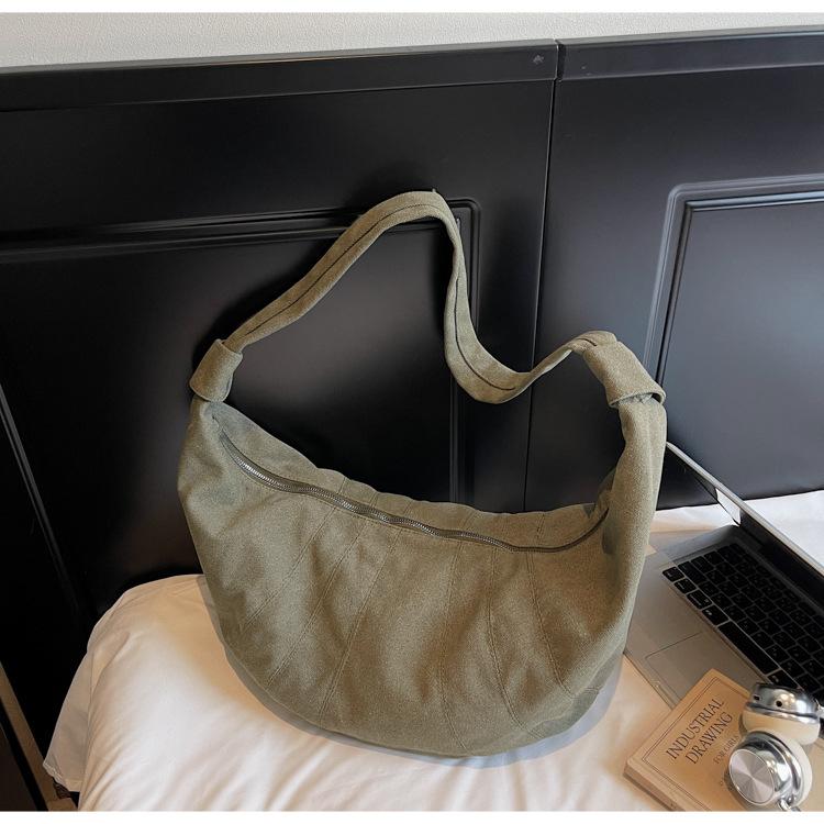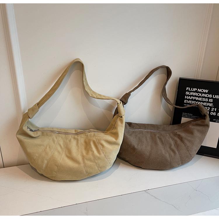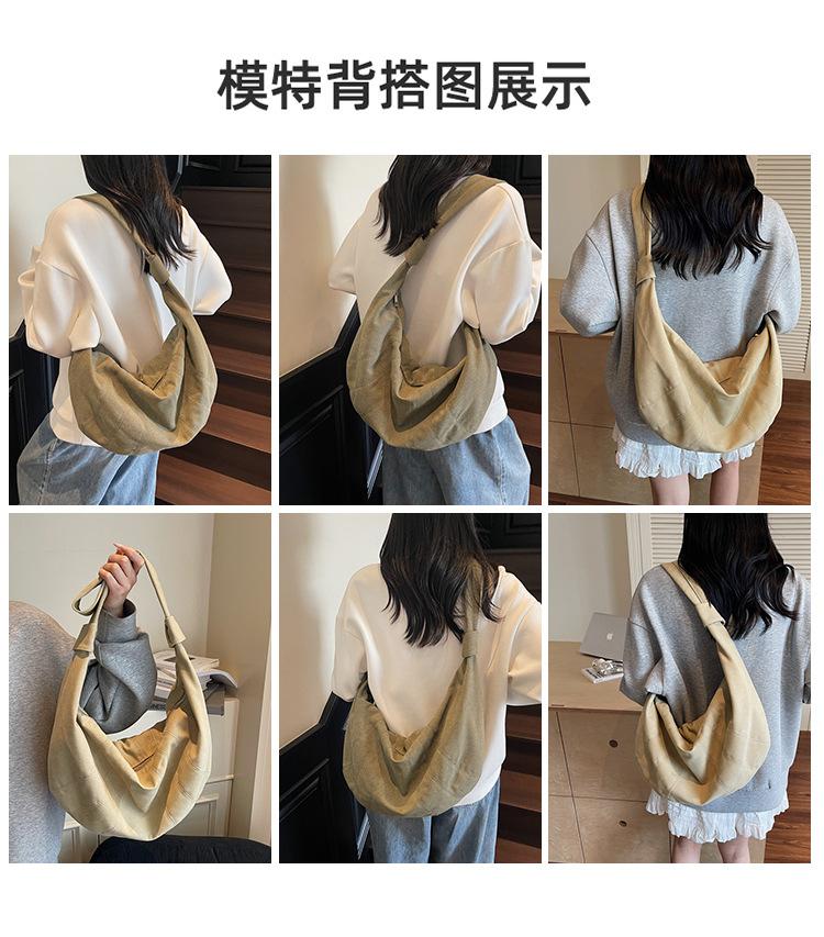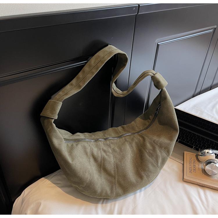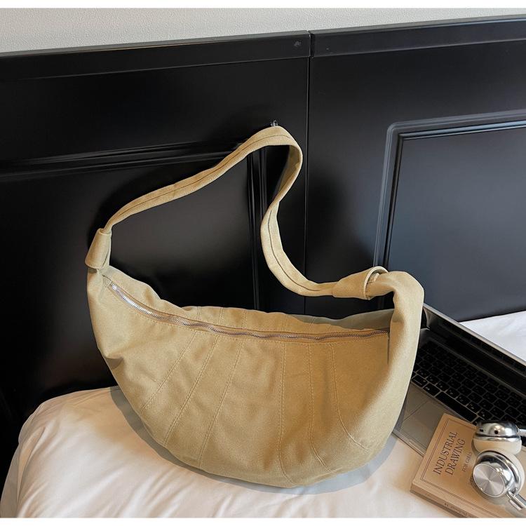 2025 Nova Linho Transfronteiriço Ombro Único Grande Capacidade Deslocamento Bolsa Dumpling Lona Meia-Lua Bolsa Croissant Bolsa Casual