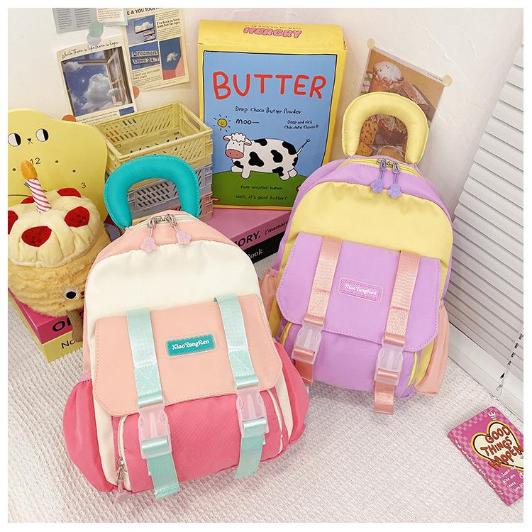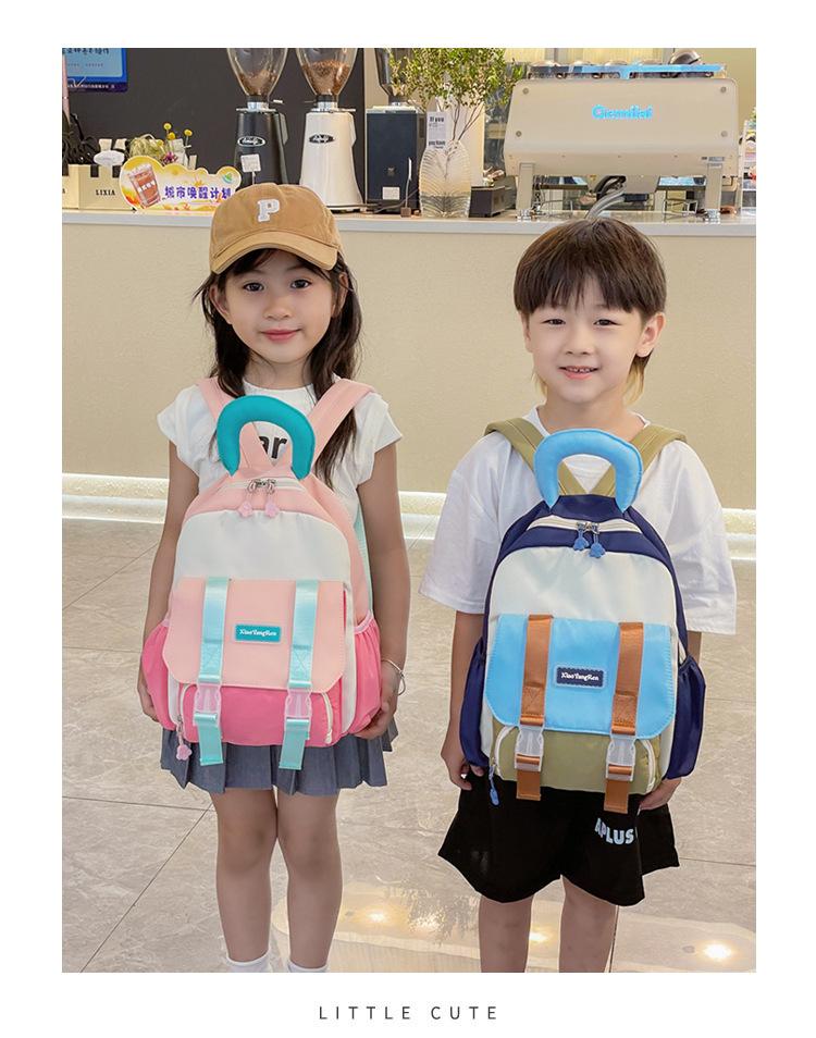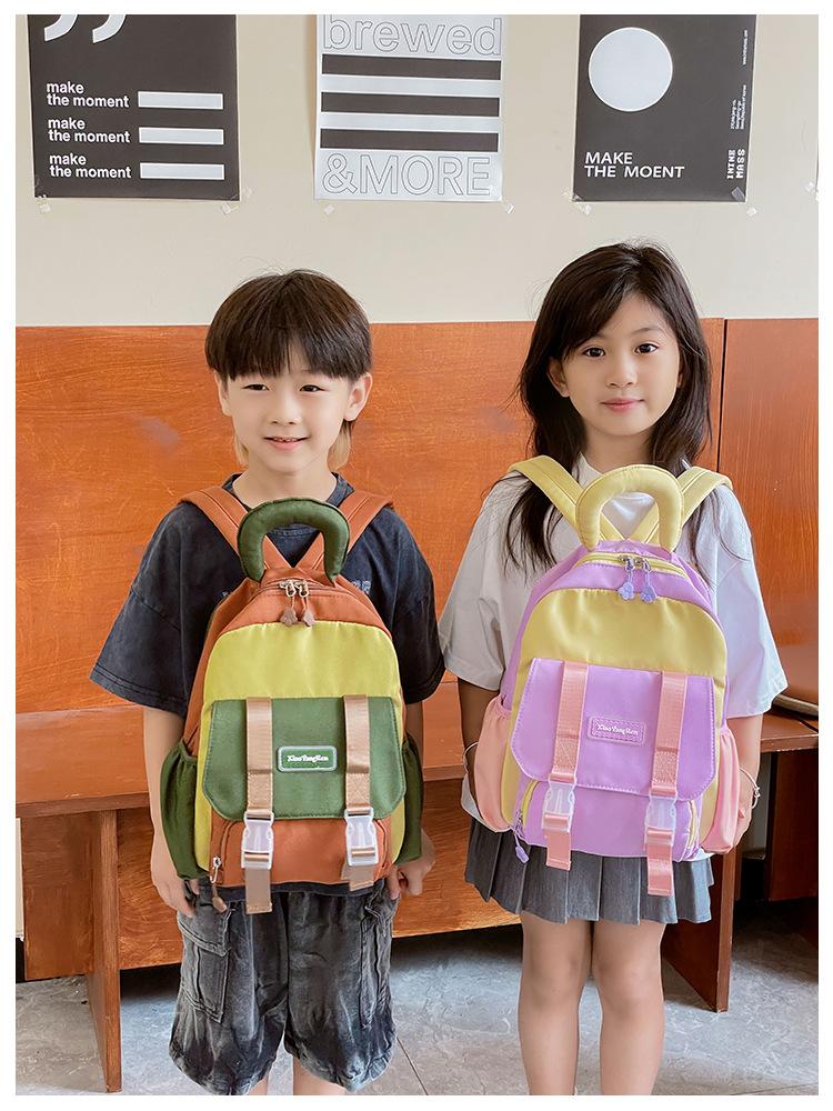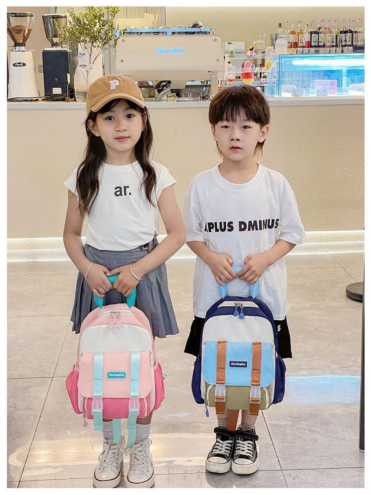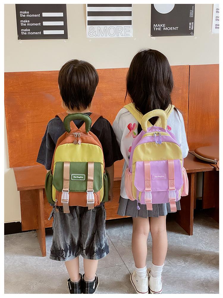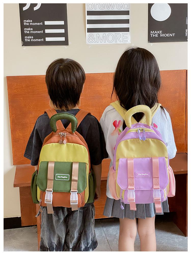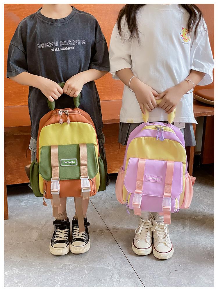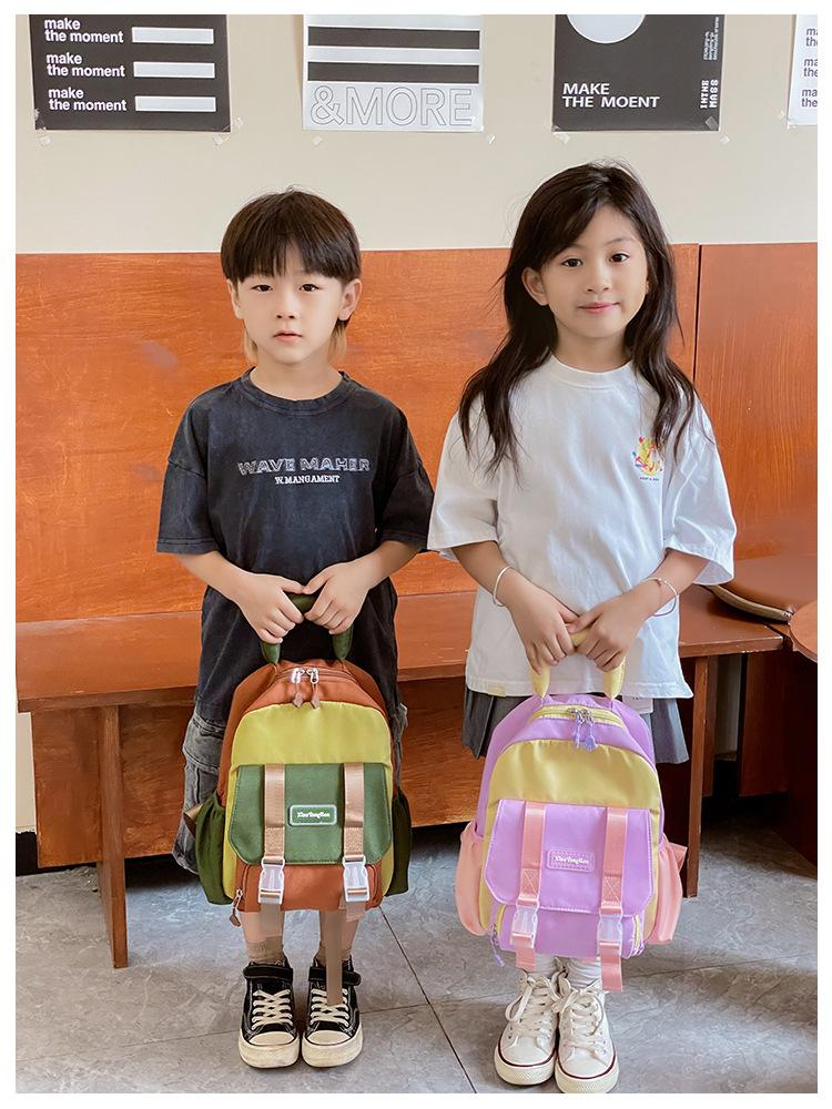 Mochila Infantil Nova Estilo Coreano Desenho Animado Fofa Mochila Escolar para Alunos do Ensino Fundamental Bloco de Cores Moderno Duplo Abotoamento Mochila para Meninos e Meninas