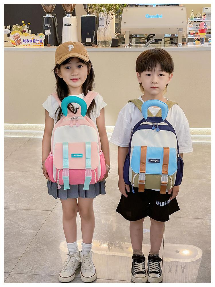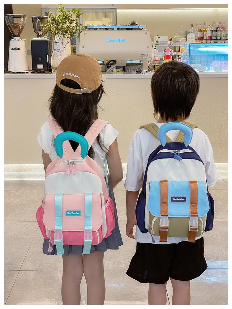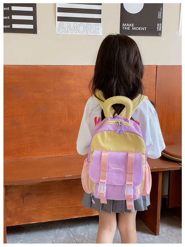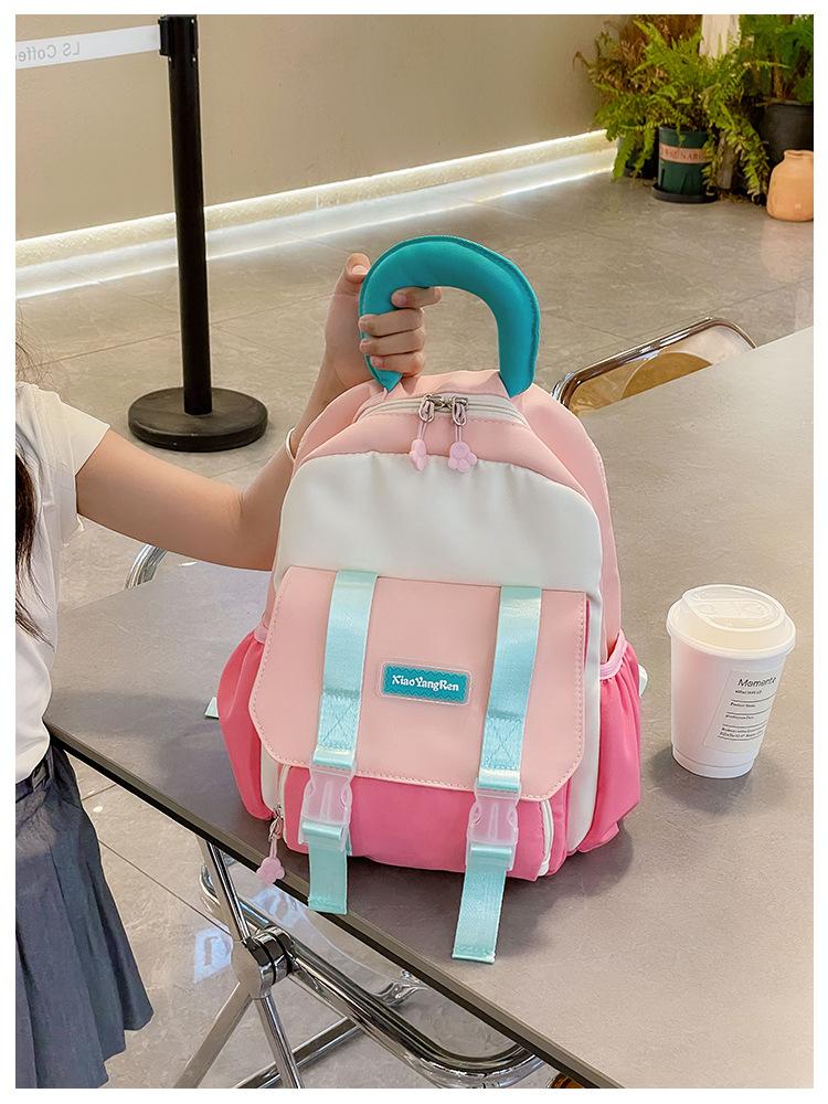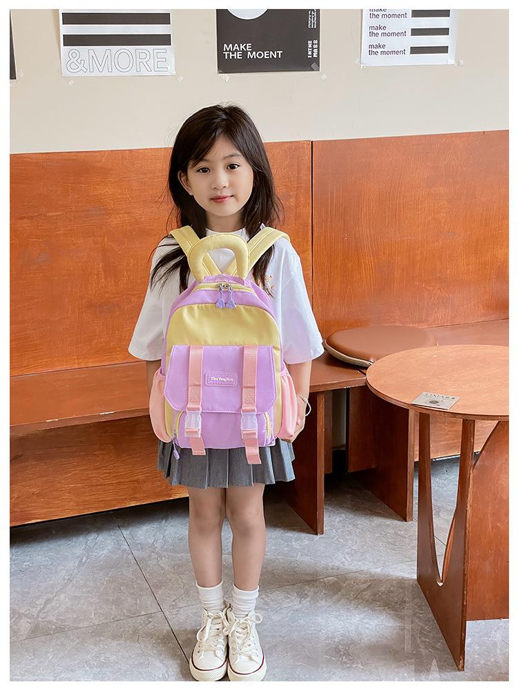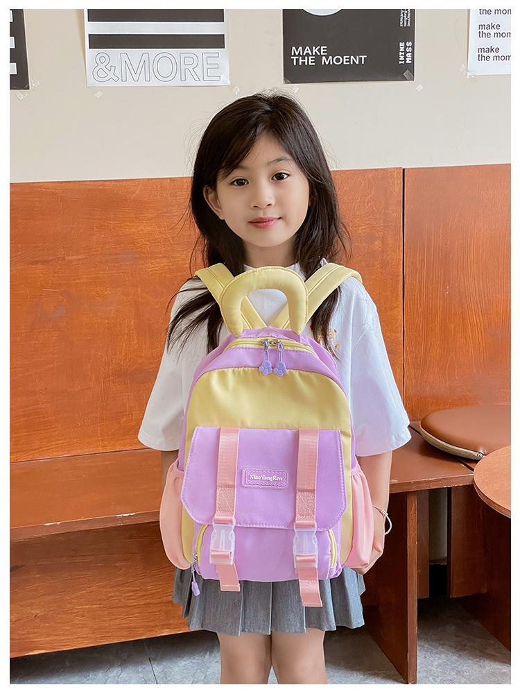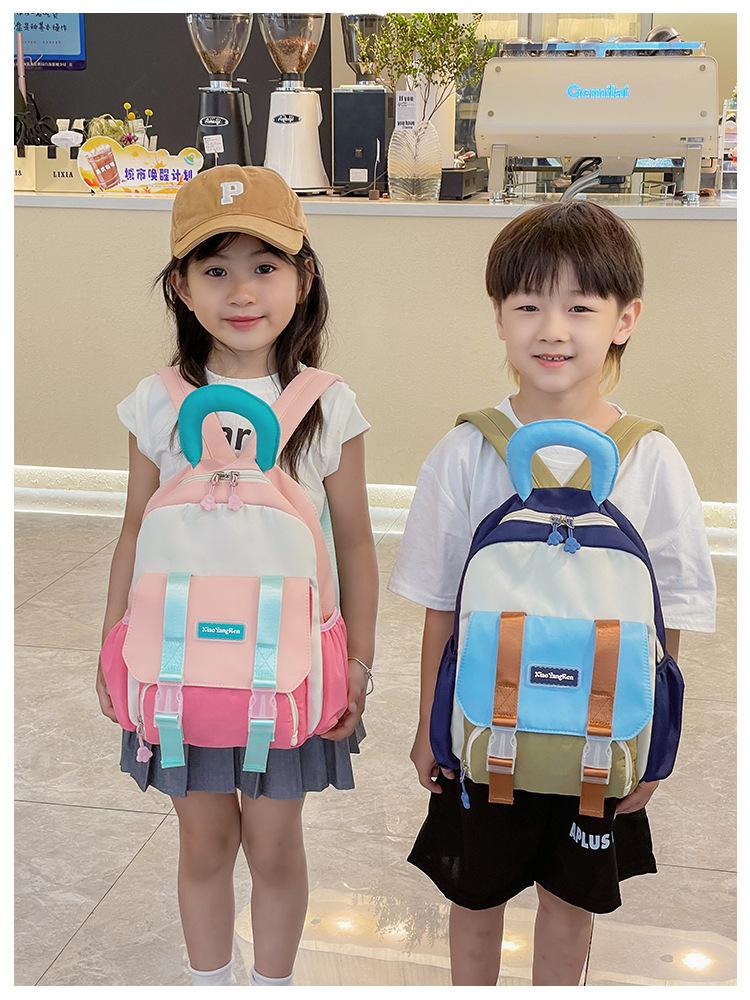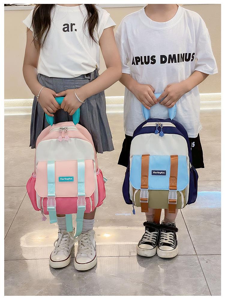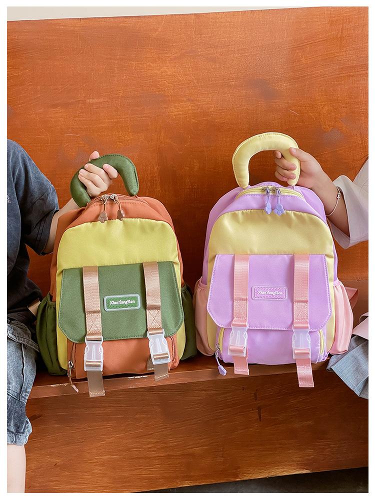 Mochila Infantil Nova Estilo Coreano Desenho Animado Fofa Mochila Escolar para Alunos do Ensino Fundamental Bloco de Cores Moderno Duplo Abotoamento Mochila para Meninos e Meninas