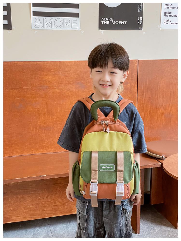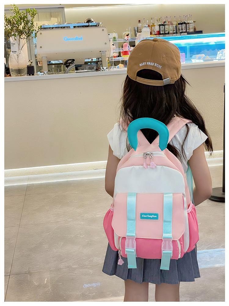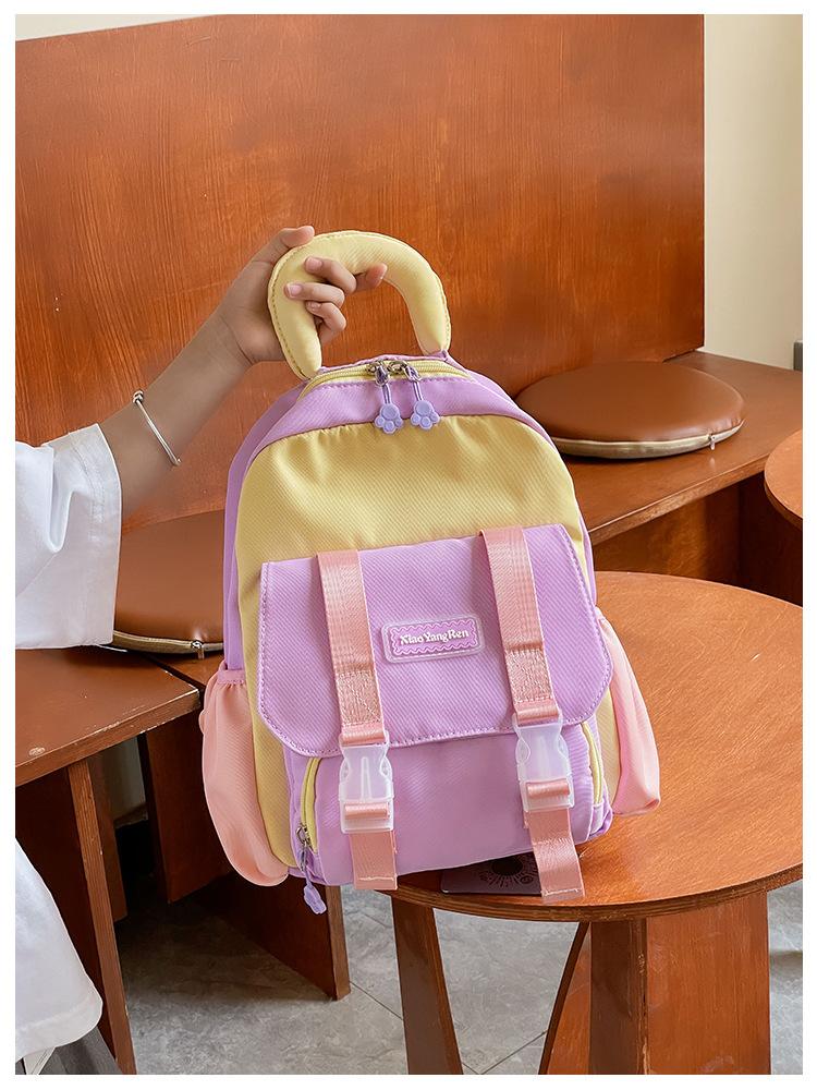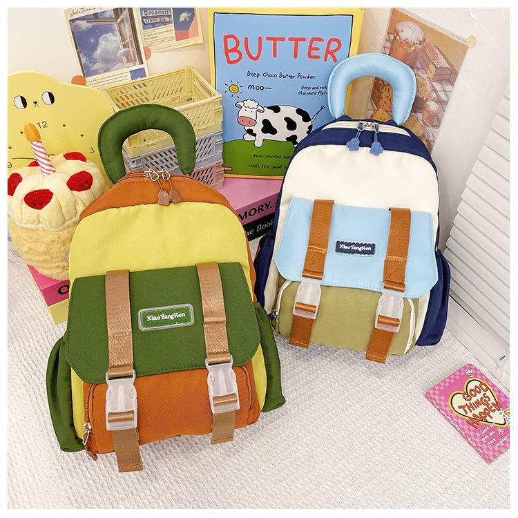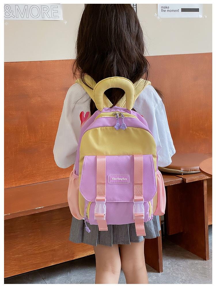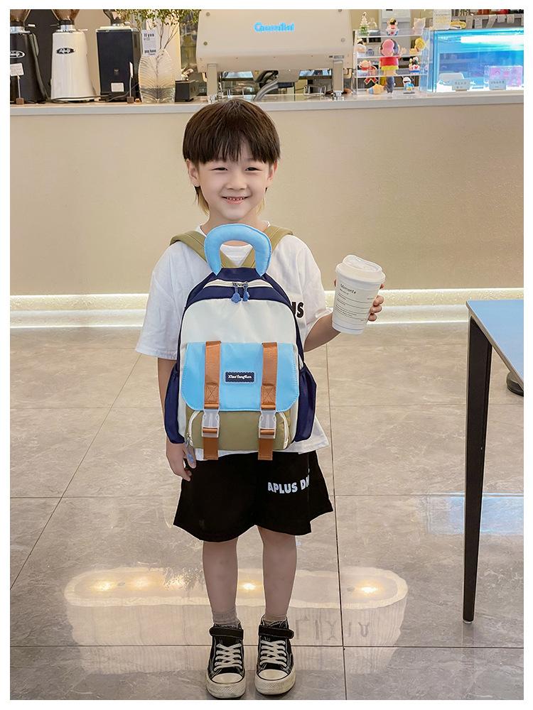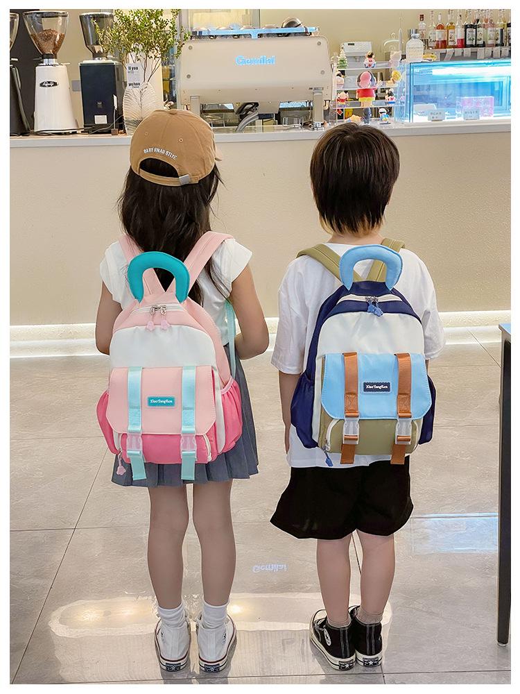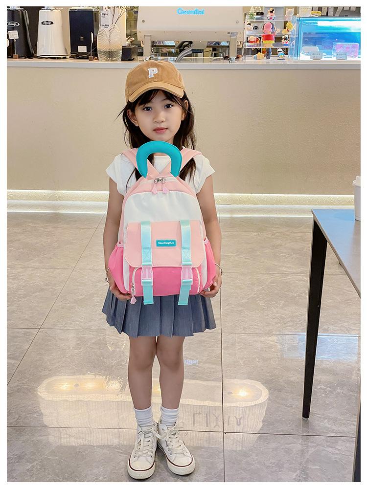 Mochila Infantil Nova Estilo Coreano Desenho Animado Fofa Mochila Escolar para Alunos do Ensino Fundamental Bloco de Cores Moderno Duplo Abotoamento Mochila para Meninos e Meninas