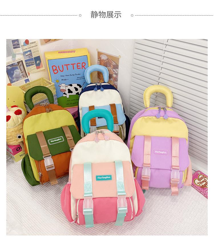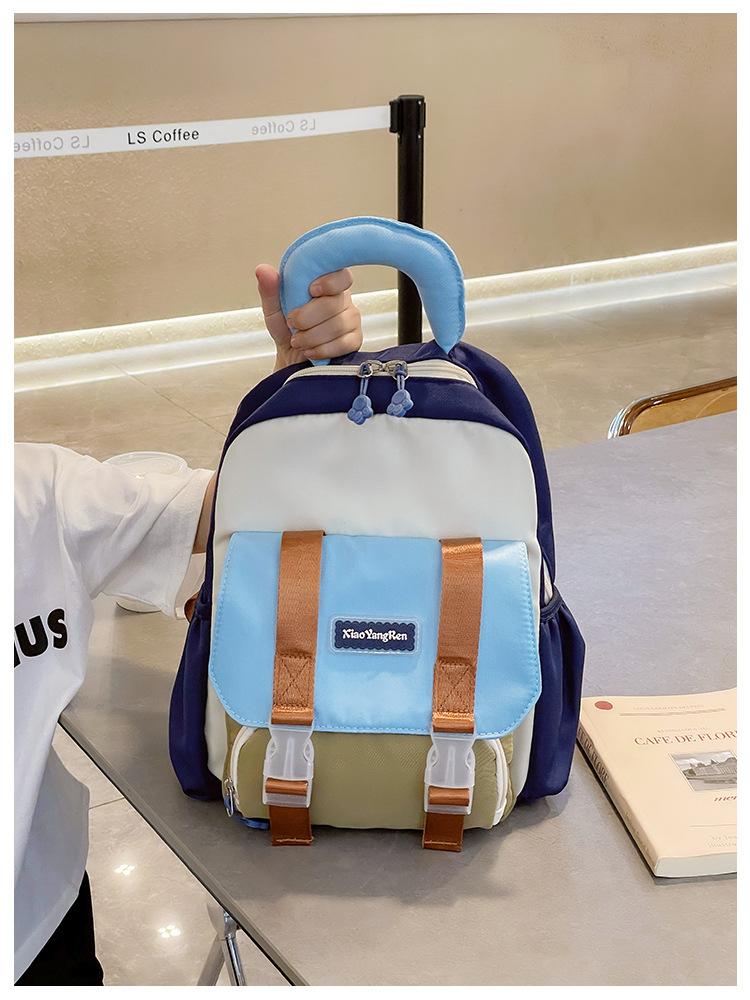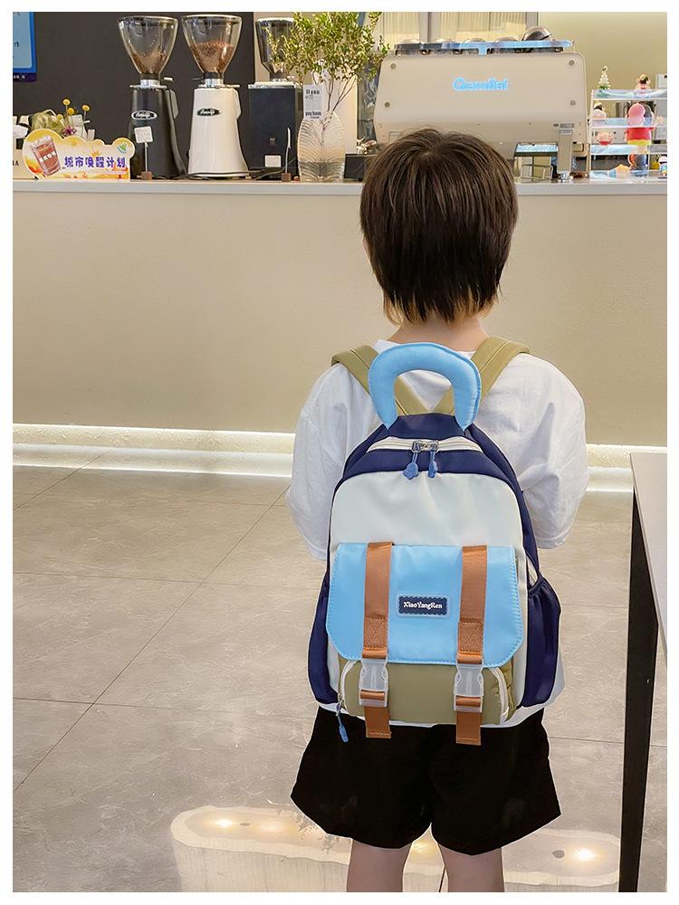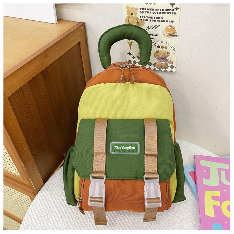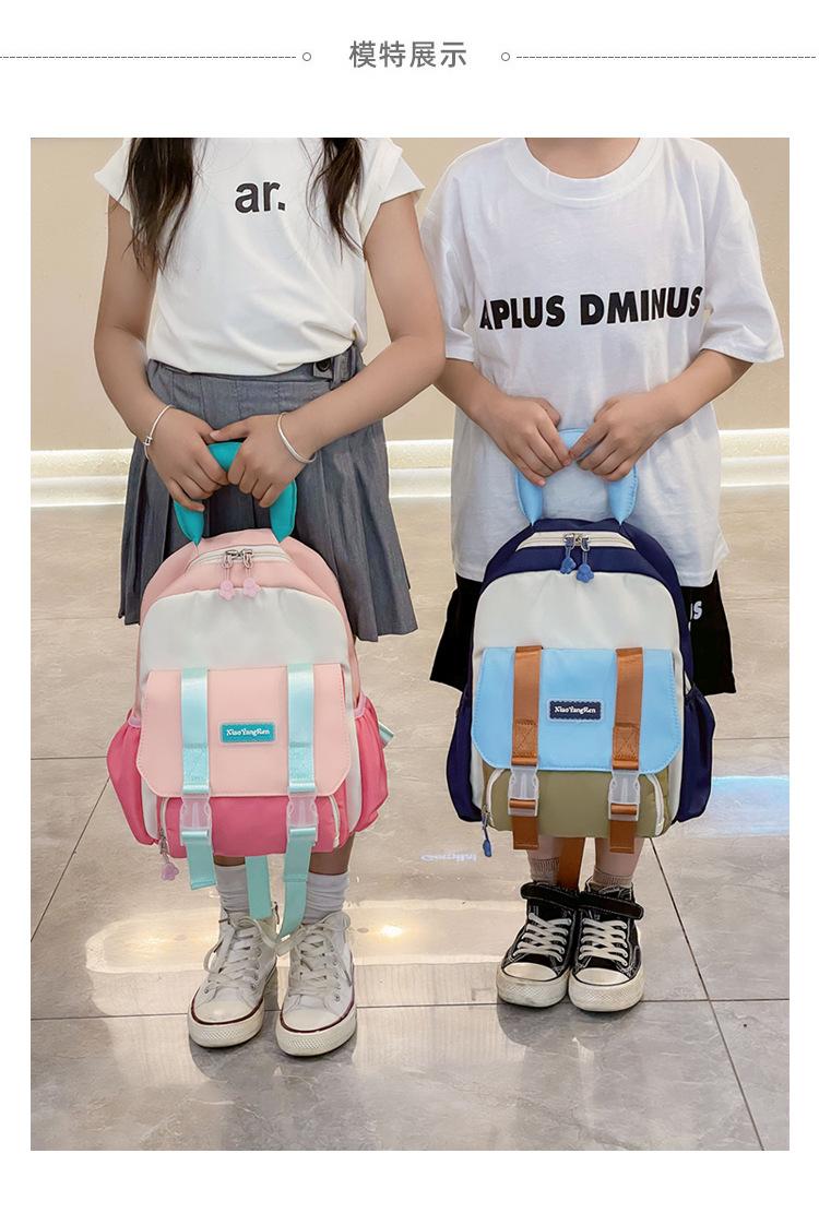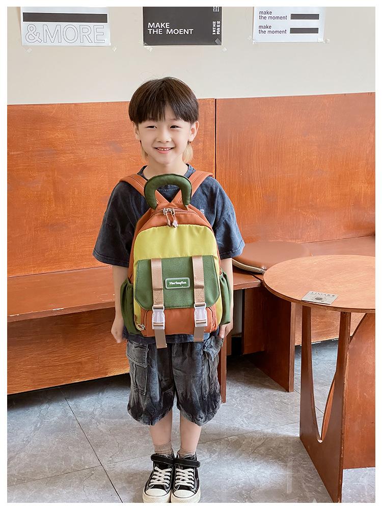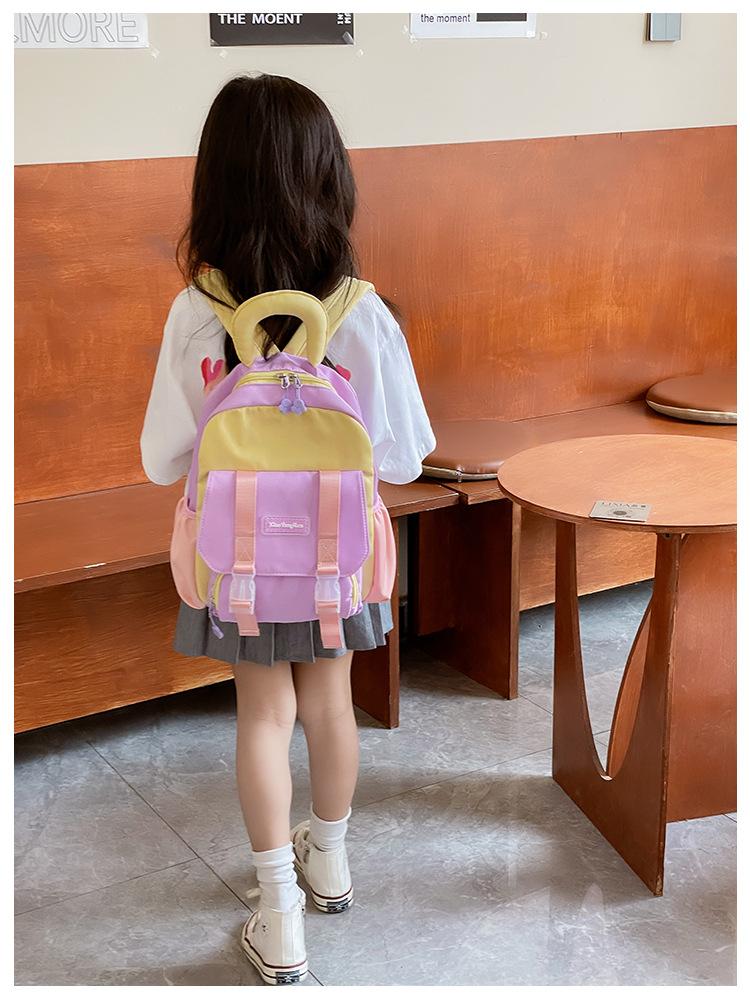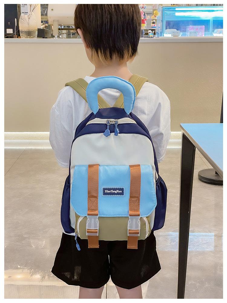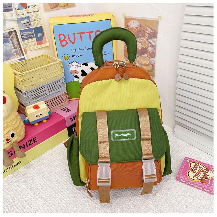 Mochila Infantil Nova Estilo Coreano Desenho Animado Fofa Mochila Escolar para Alunos do Ensino Fundamental Bloco de Cores Moderno Duplo Abotoamento Mochila para Meninos e Meninas