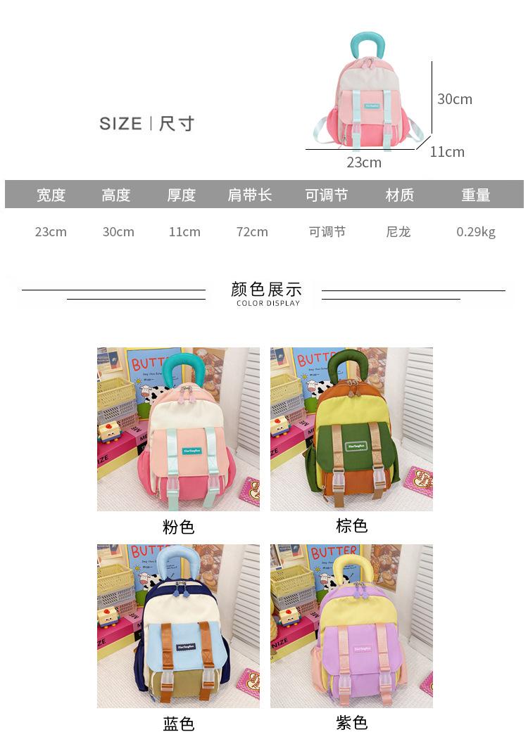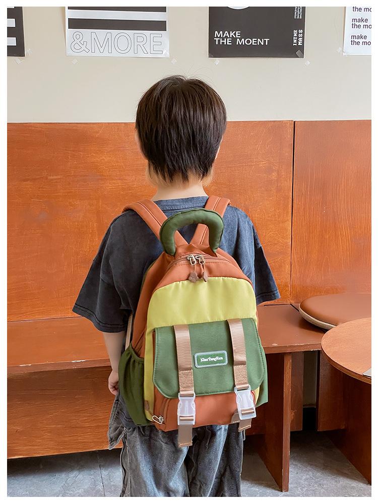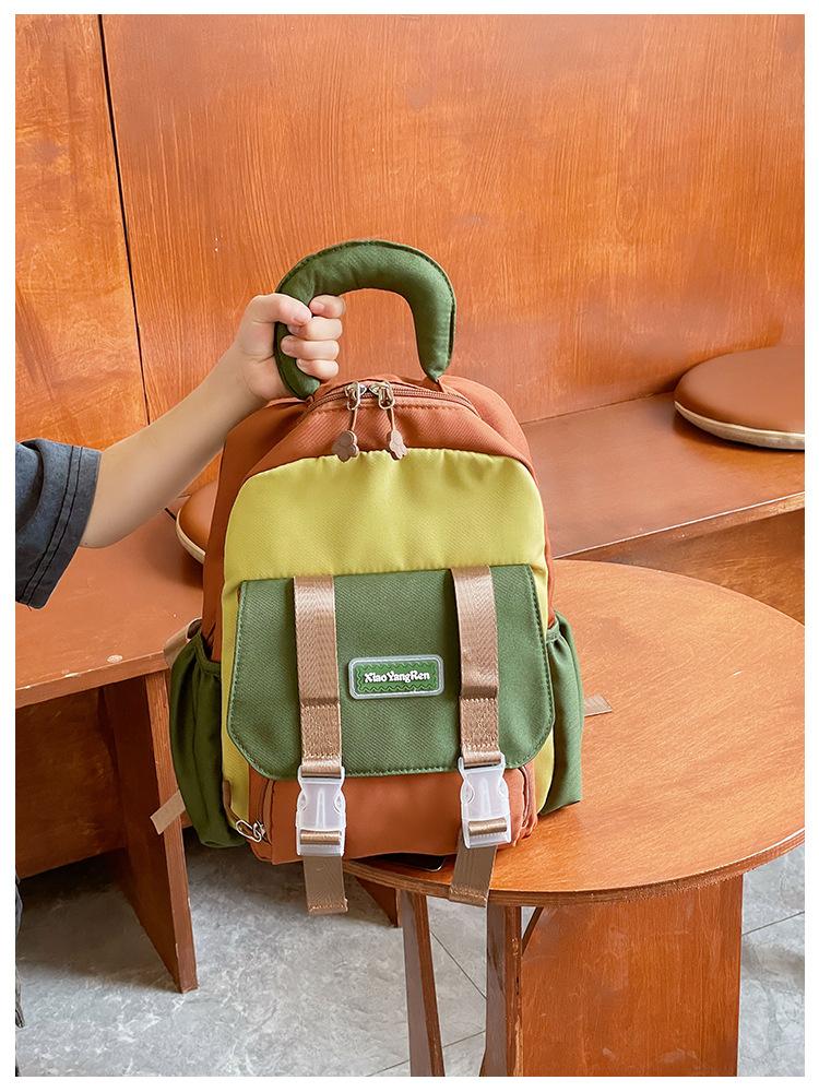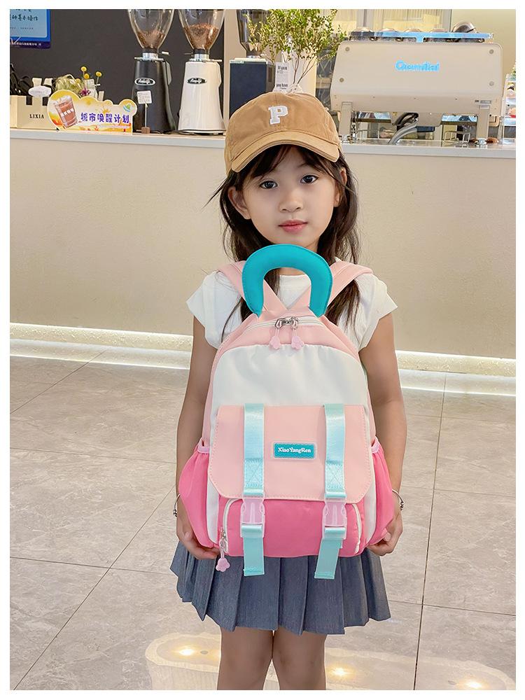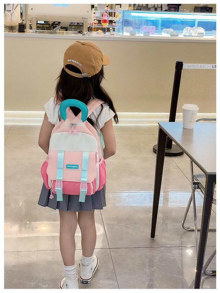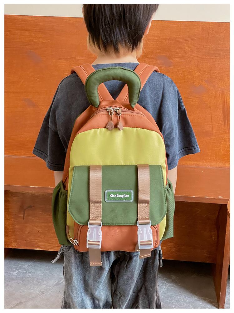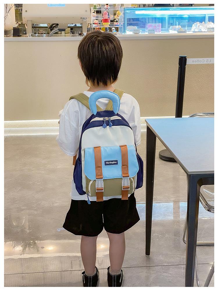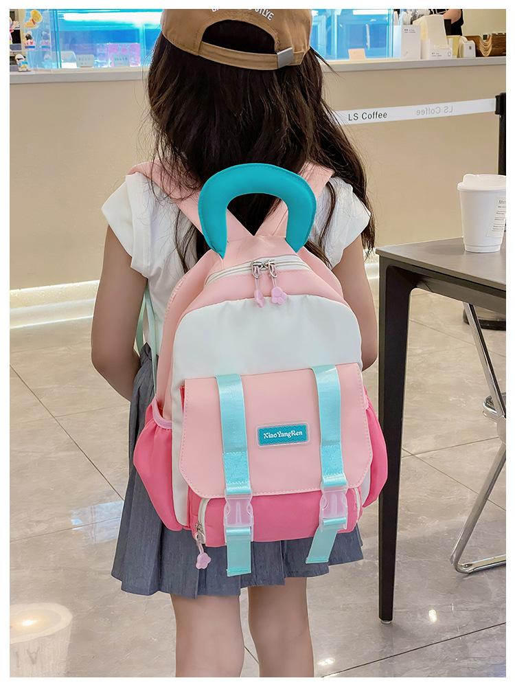 Mochila Infantil Nova Estilo Coreano Desenho Animado Fofa Mochila Escolar para Alunos do Ensino Fundamental Bloco de Cores Moderno Duplo Abotoamento Mochila para Meninos e Meninas