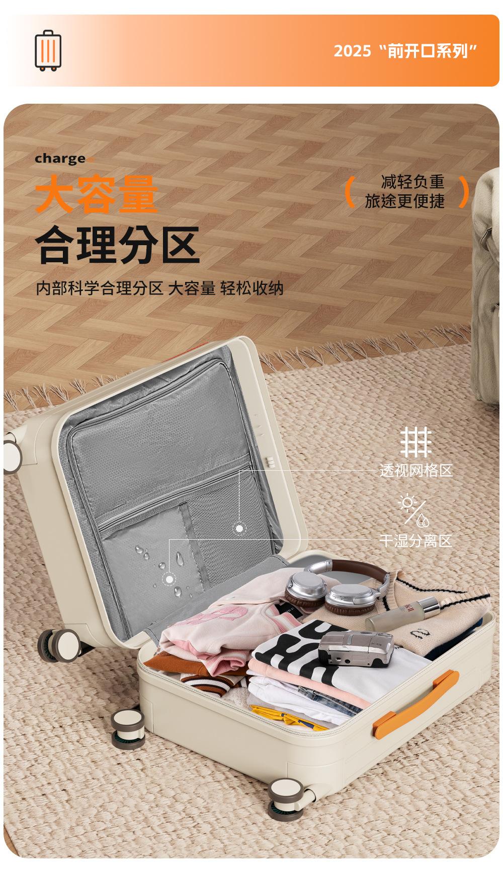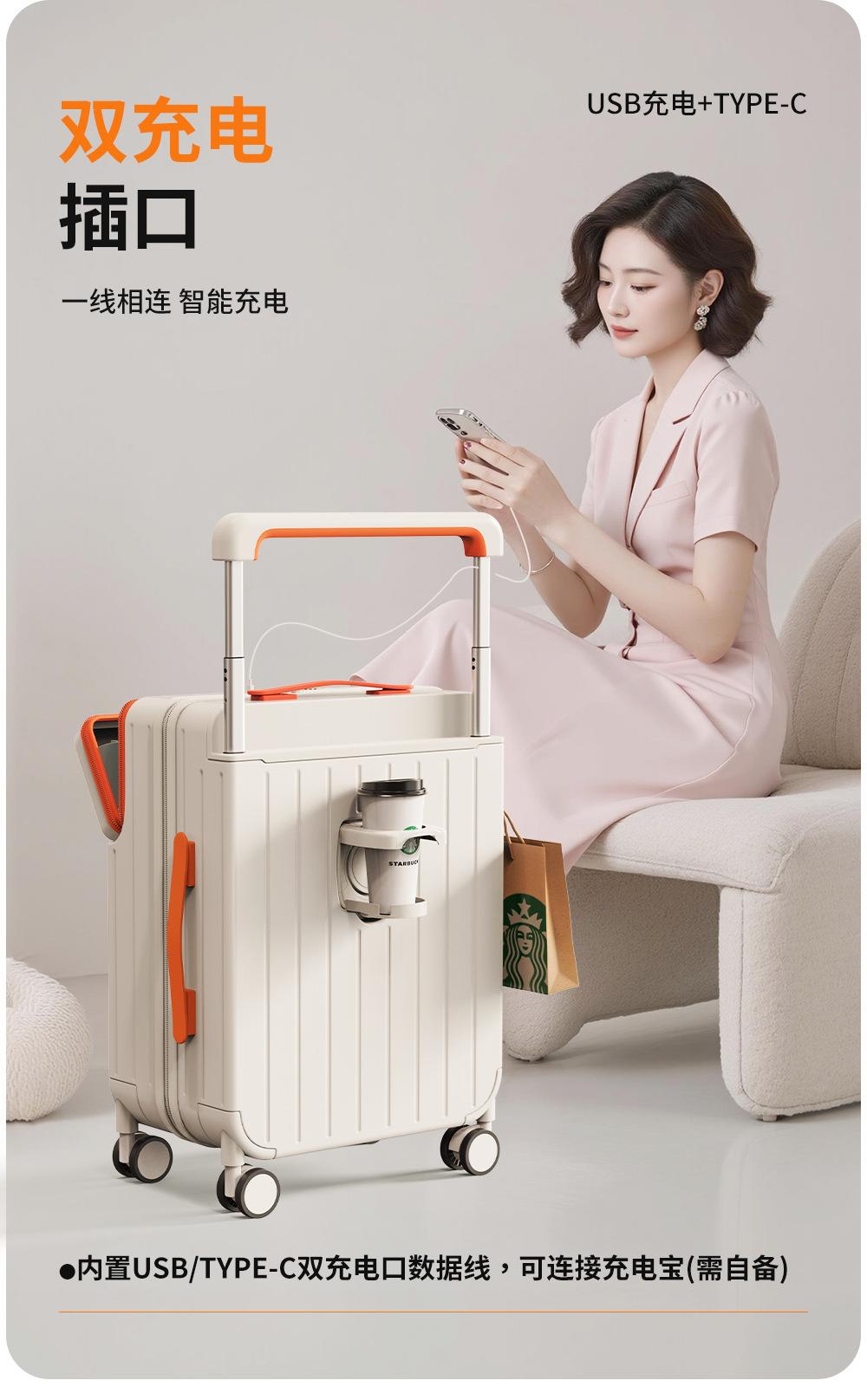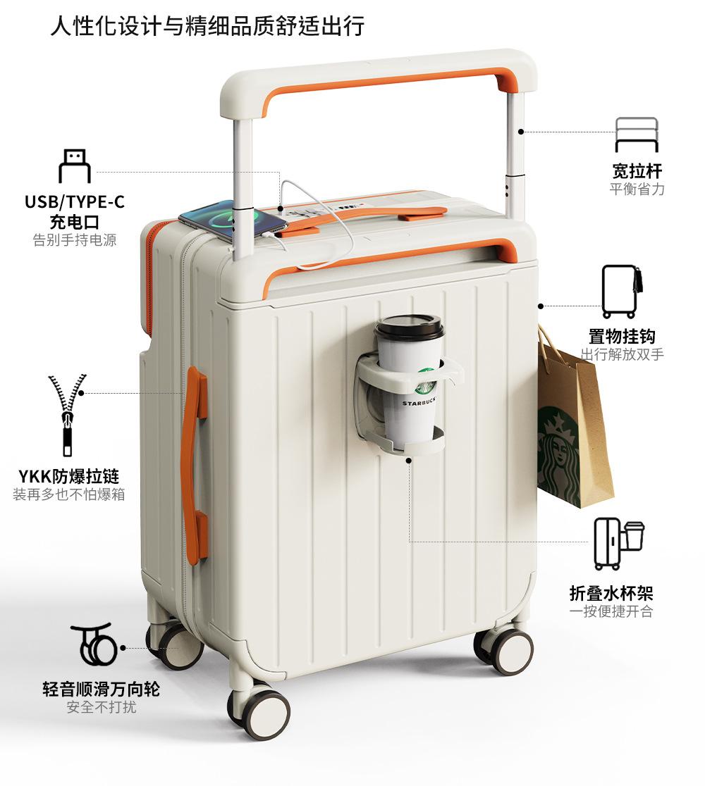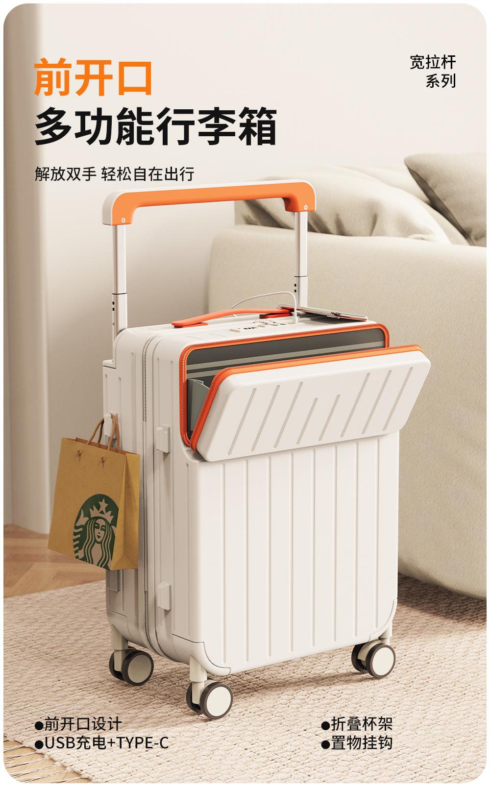 Mala de Viagem com Abertura Frontal e Alça Larga para Estudante, Bagagem de Mão Multifuncional de Grande Capacidade e Leve com Fechadura de Combinação, Lote Personalizado