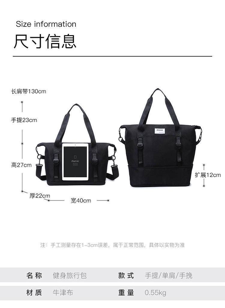 Nova Bolsa de Viagem Grande Capacidade Expansível Moda Leve Bolsa de Armazenamento de Bagagem Separação Seco e Molhado Bolsa de Yoga Esportes Fitness