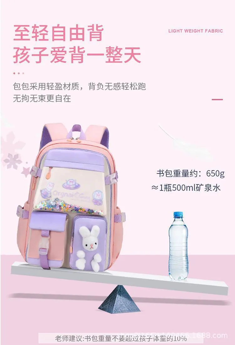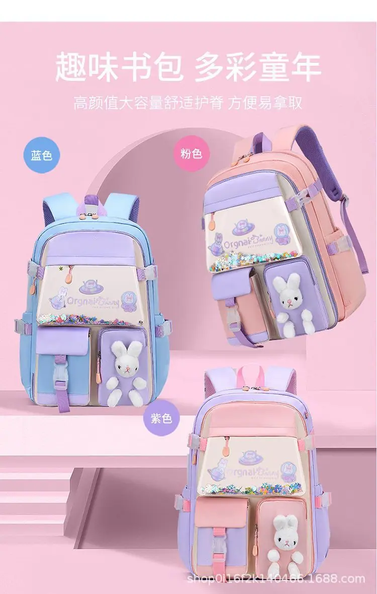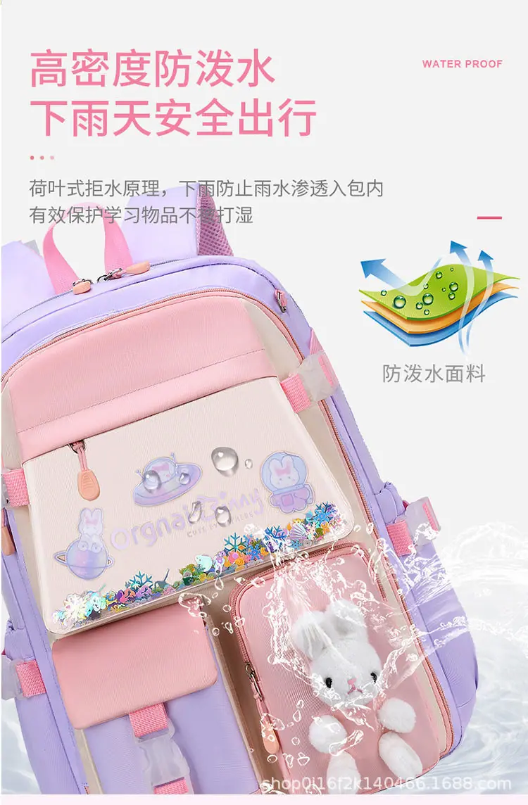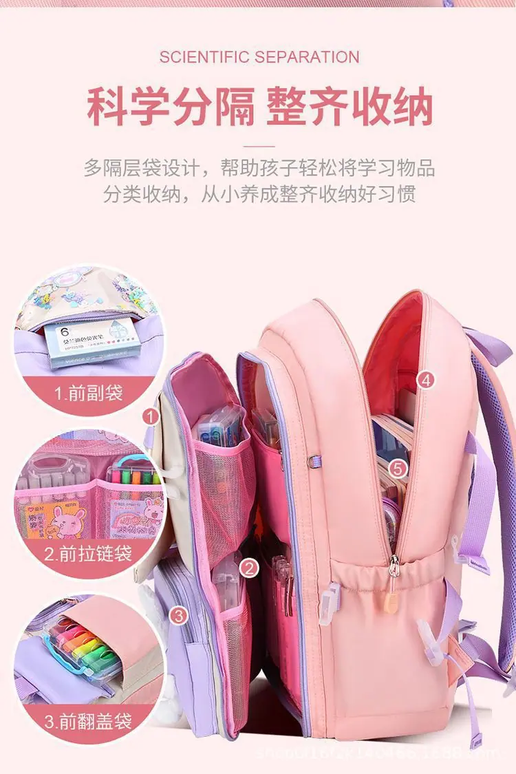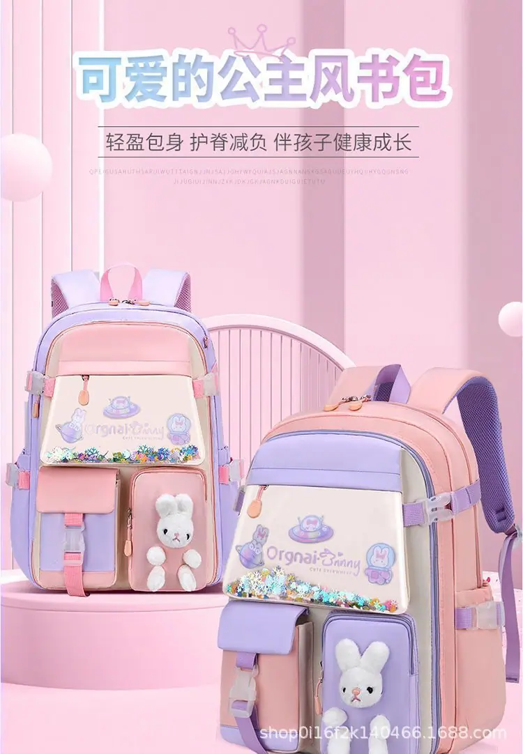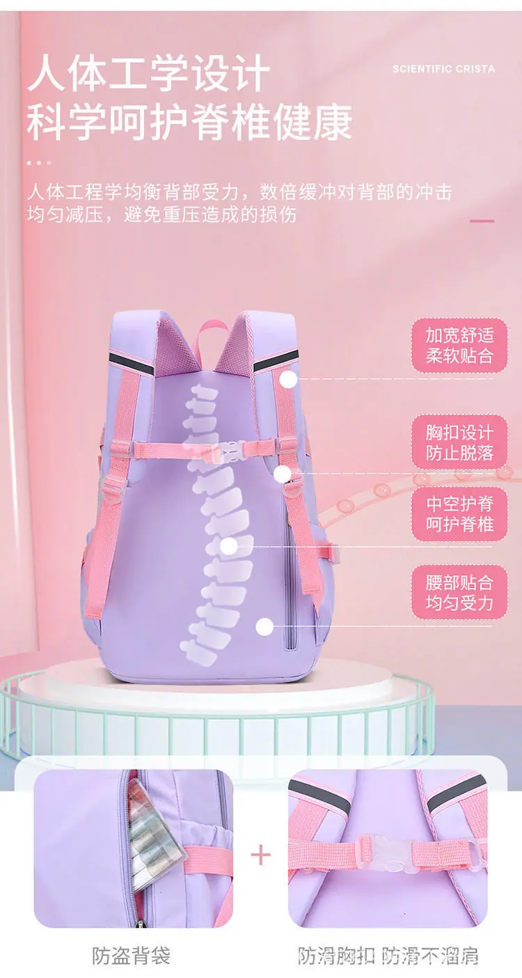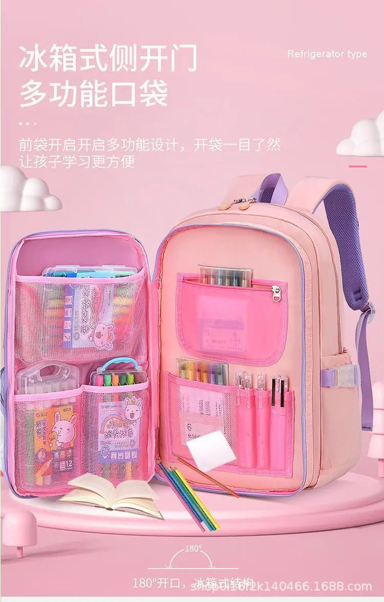 Mochila nova para o ensino fundamental para meninas 1º-3º-6º ano impermeável infantil princesa menina grande capacidade bolsa de ombro dupla estilo aberto