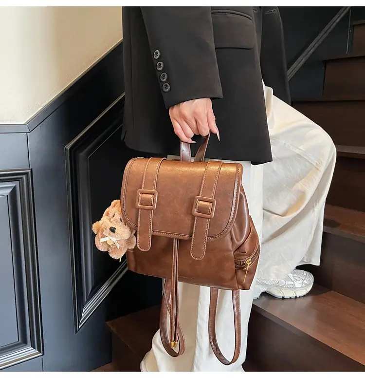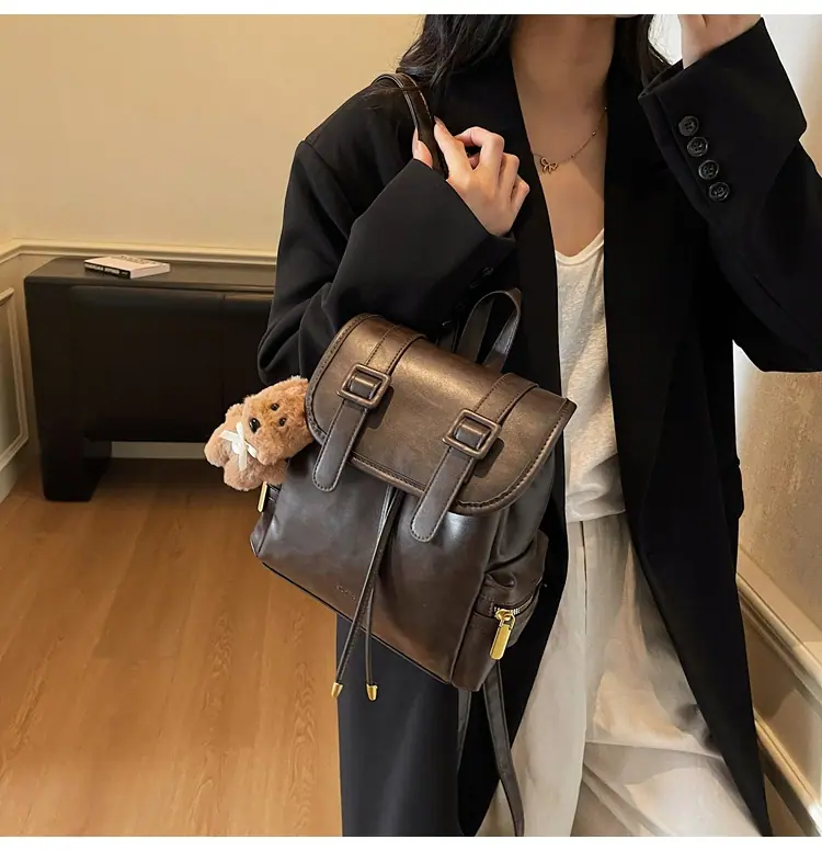 Tendência de Moda Retrô Mochila Pequena de Grande Capacidade Mulheres 2025 Novo Estilo Moderna Versátil Simples Passeio Viagem Mochila