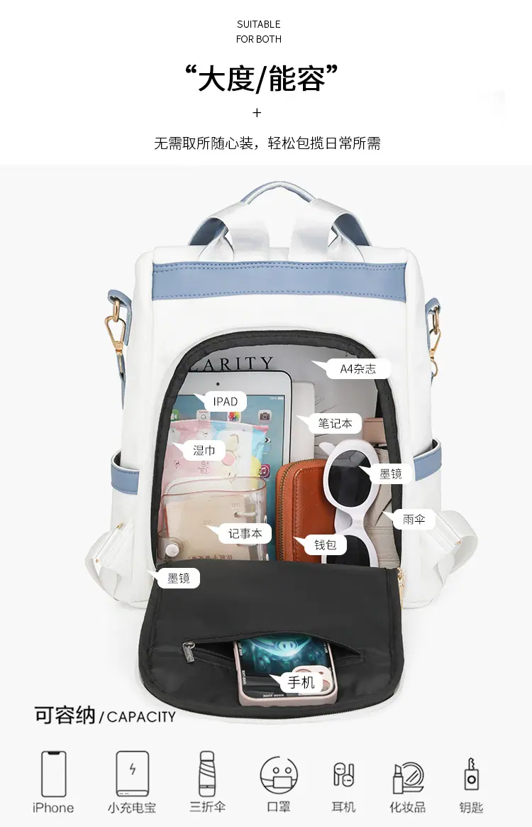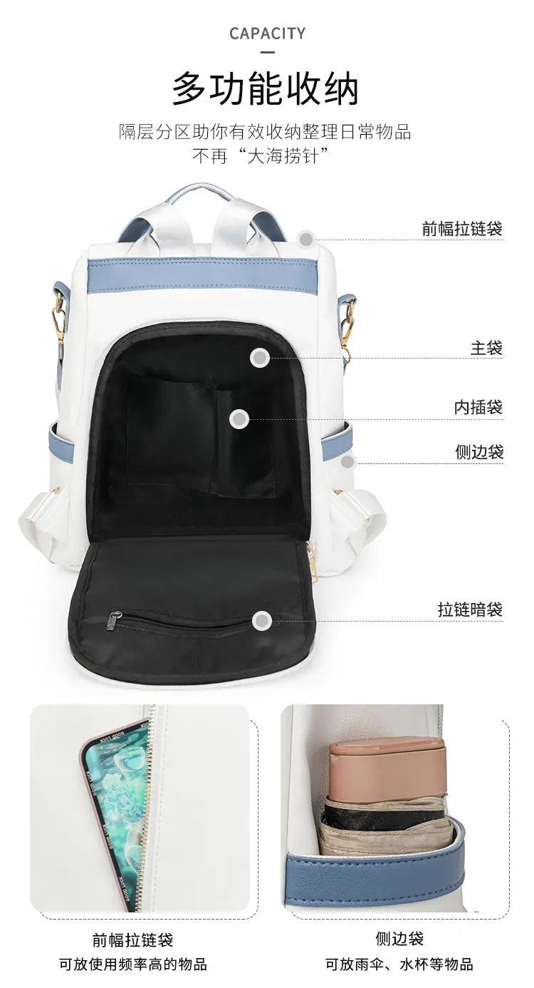 Mochila Antifurto Feminina 2025 Novo Estilo Coreano Couro Macio Fashionável Combina Com Tudo Bolsa de Viagem para Mamãe Mochila Feminina de Grande Capacidade