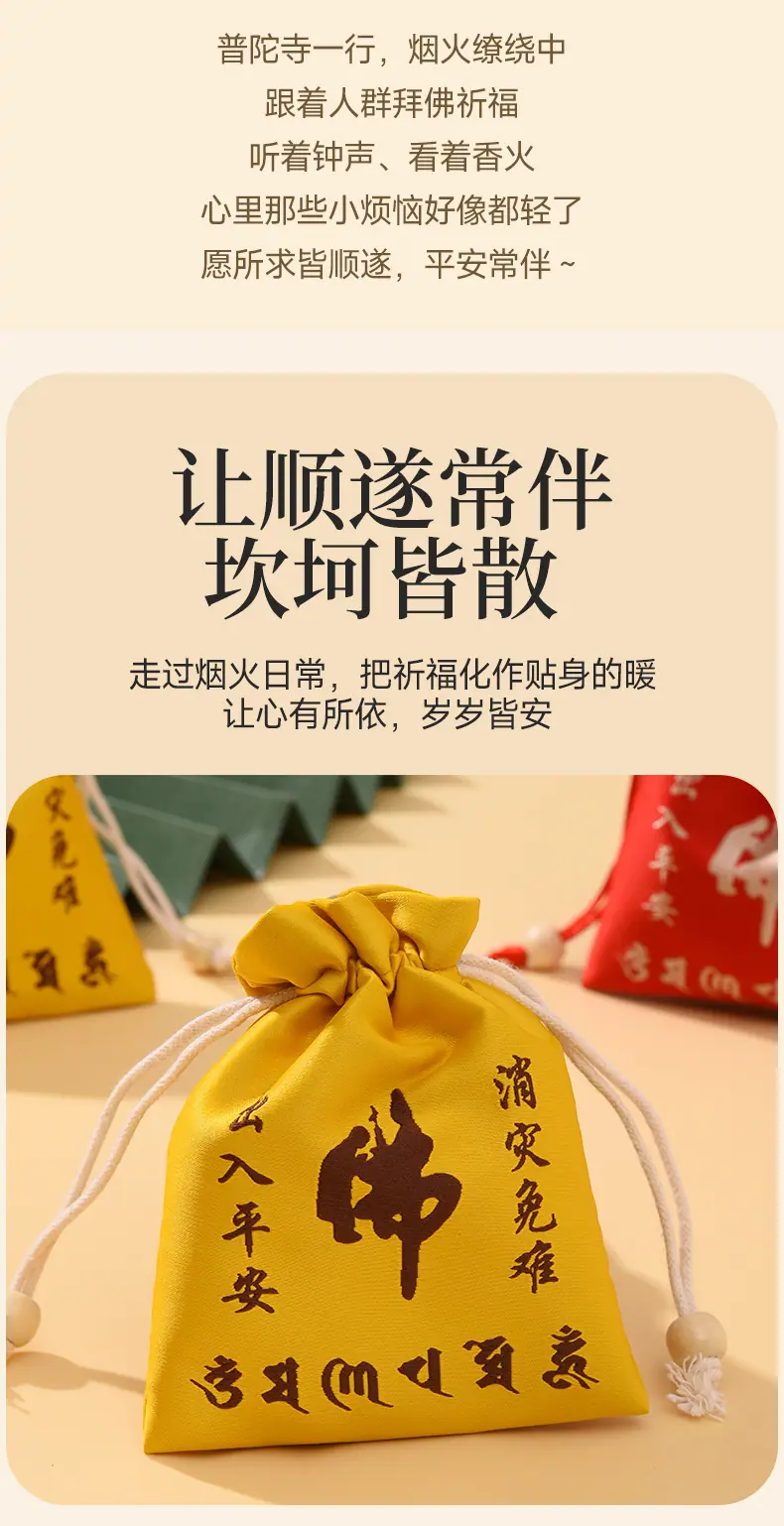 Pingente Saco de Incenso Montanha Putuo, Pingente Portátil Estilo Chinês, Paz e Harmonia, Cinco Elementos (Ouro, Madeira, Água, Fogo, Terra), Pequeno Saquinho de Incenso Produto Acabado Atacado