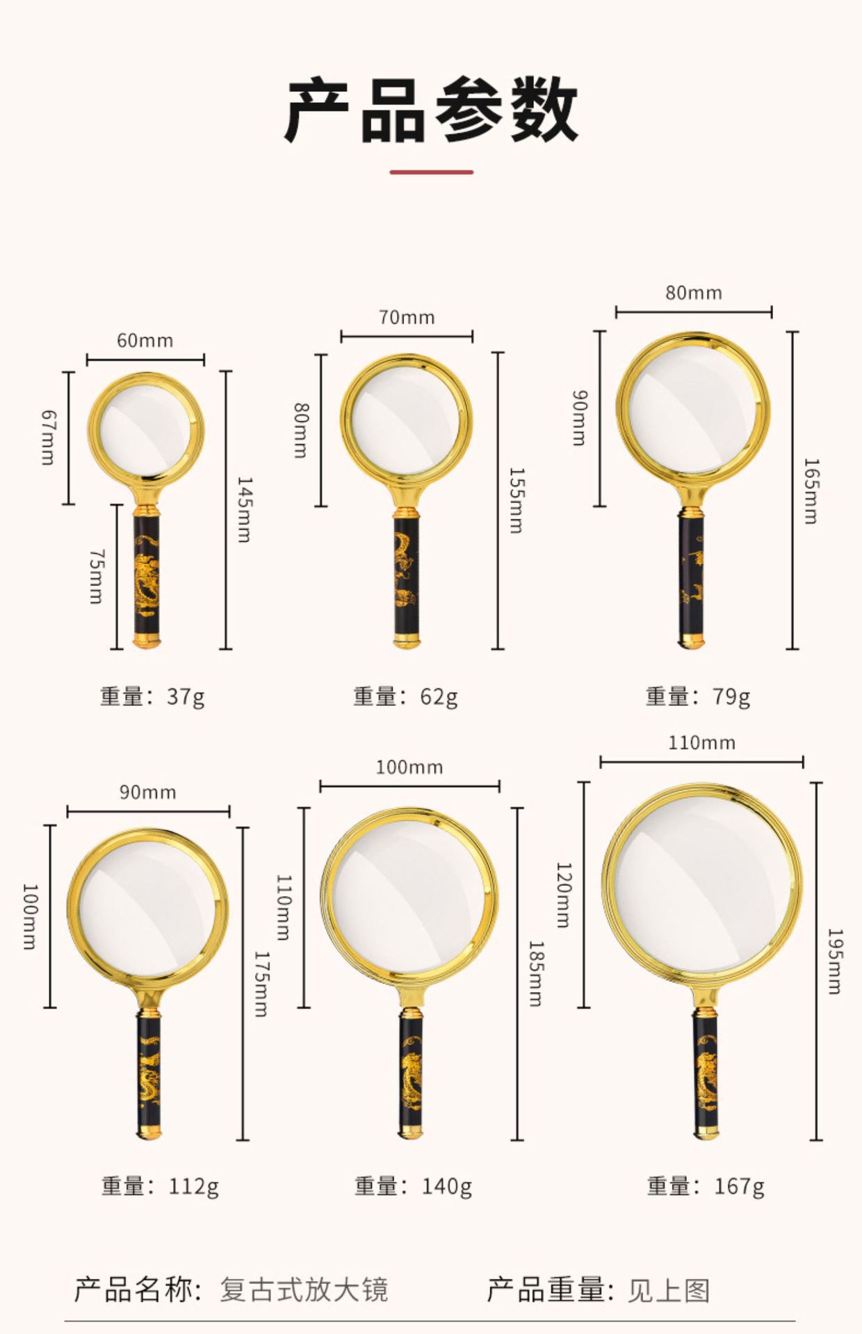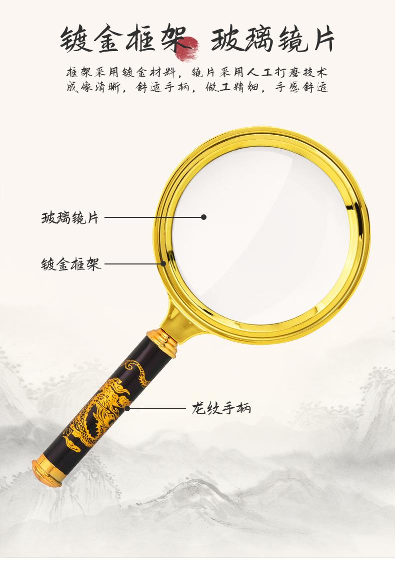 Lupa com Cabo de Metal Padrão Dragão para Idosos Leitura Lupa Infantil Lupa de Vidro Óptico para Leitura