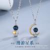 Colar casal astronauta banhado a prata corrente clavicular par feminino masculino nicho luxo leve presente de aniversário para namorado namorada