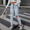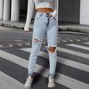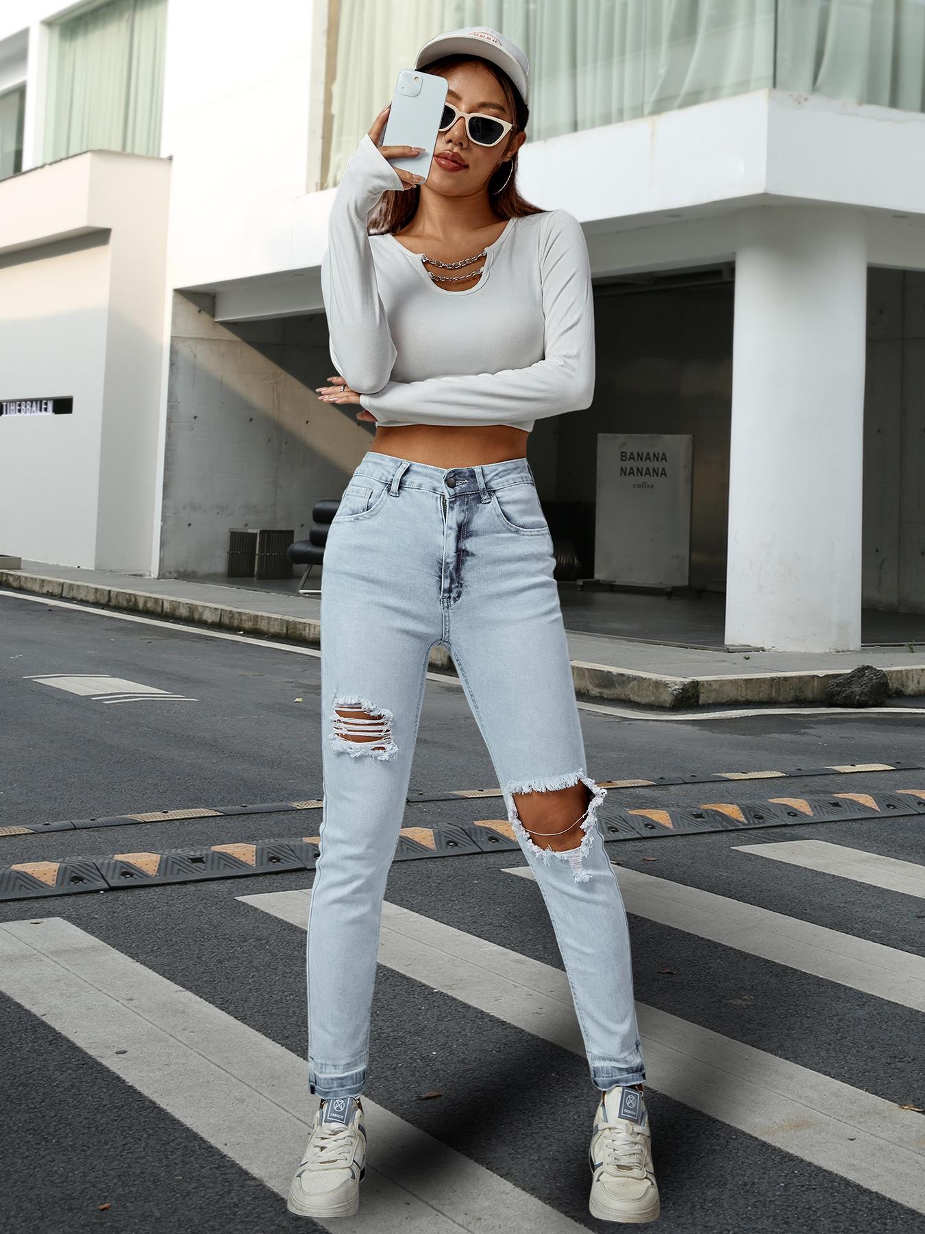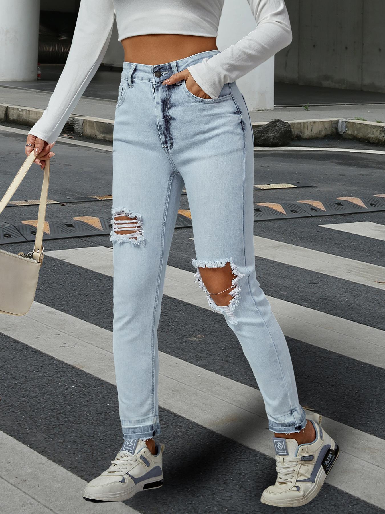 Compre Amazon Jeans Femininos Transfronteiriços Europeus e Americanos Ajuste Slim Rasgados Cintura Média Calças Jeans para Pés Pequenos, Modernos e Versáteis no atacado no Joom.pro