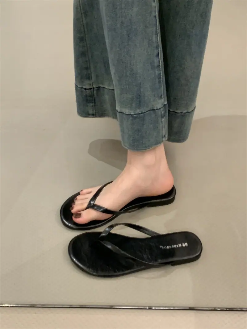 Chinelos Coreanos para Verão Feminino 2025 Novos Chinelos Franceses Rasteirinhas Sandálias INS Romanas Sapatos de Praia