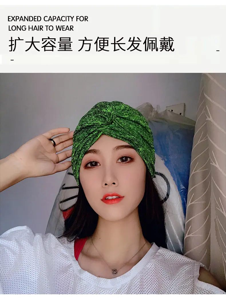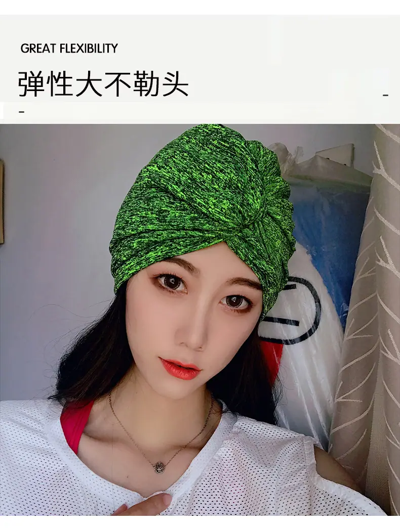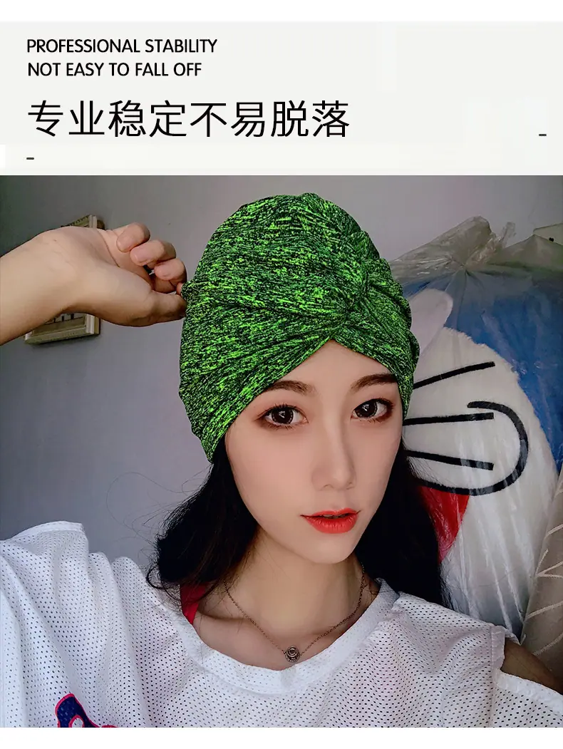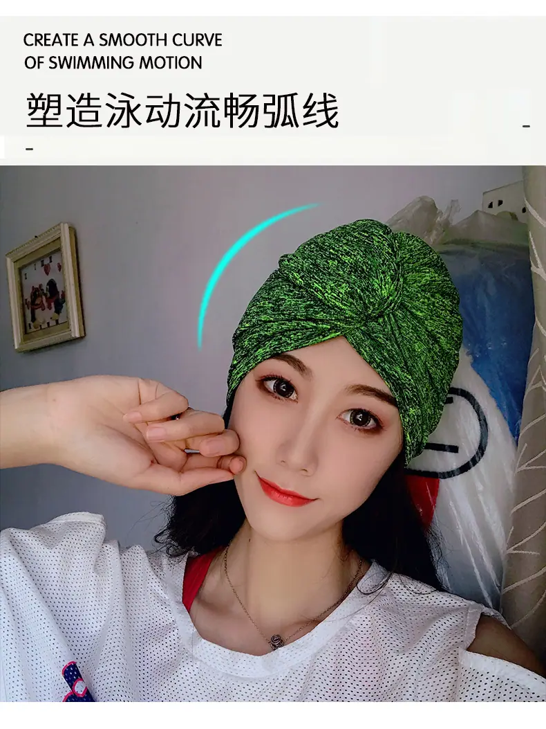 Touca de cabelo comprido feminina de tamanho grande altamente elástica INS não amarrada proteção de ouvido para cabeça piscina fonte termal confortável touca de natação de tecido atacado