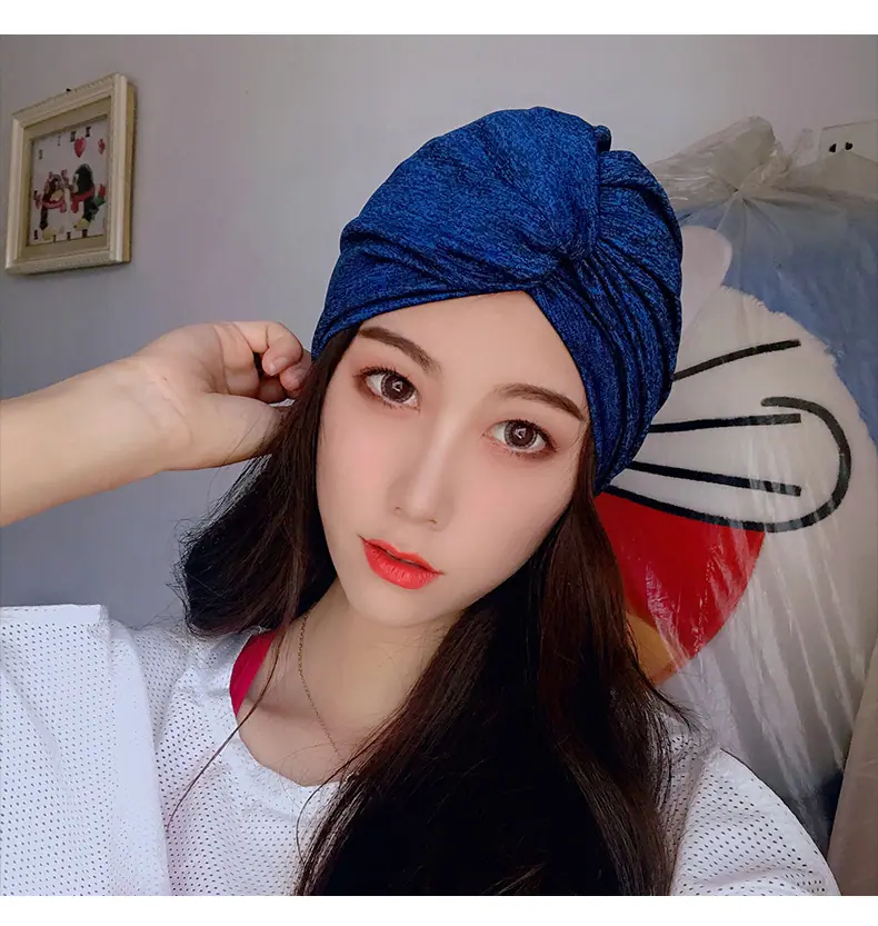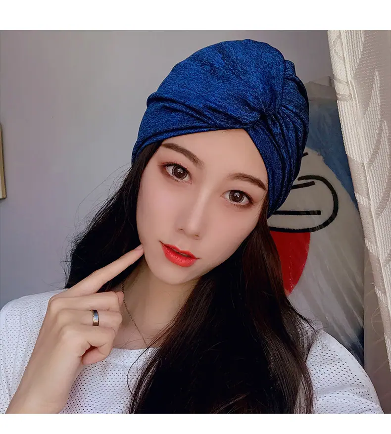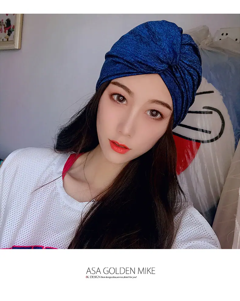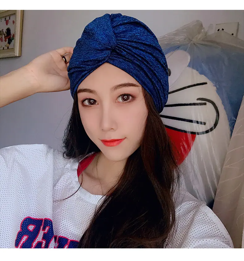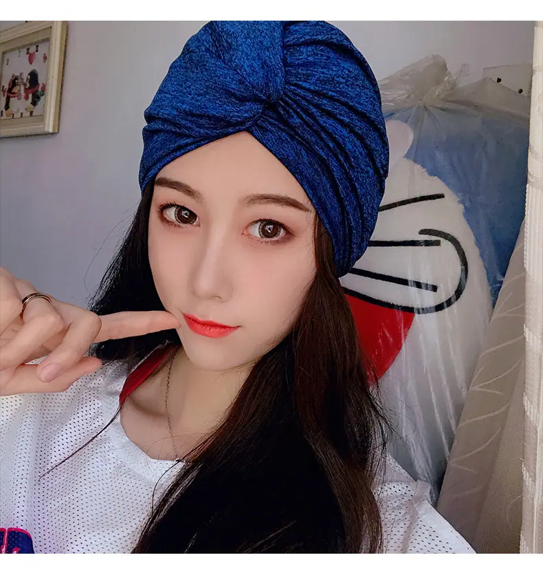 Touca de cabelo comprido feminina de tamanho grande altamente elástica INS não amarrada proteção de ouvido para cabeça piscina fonte termal confortável touca de natação de tecido atacado