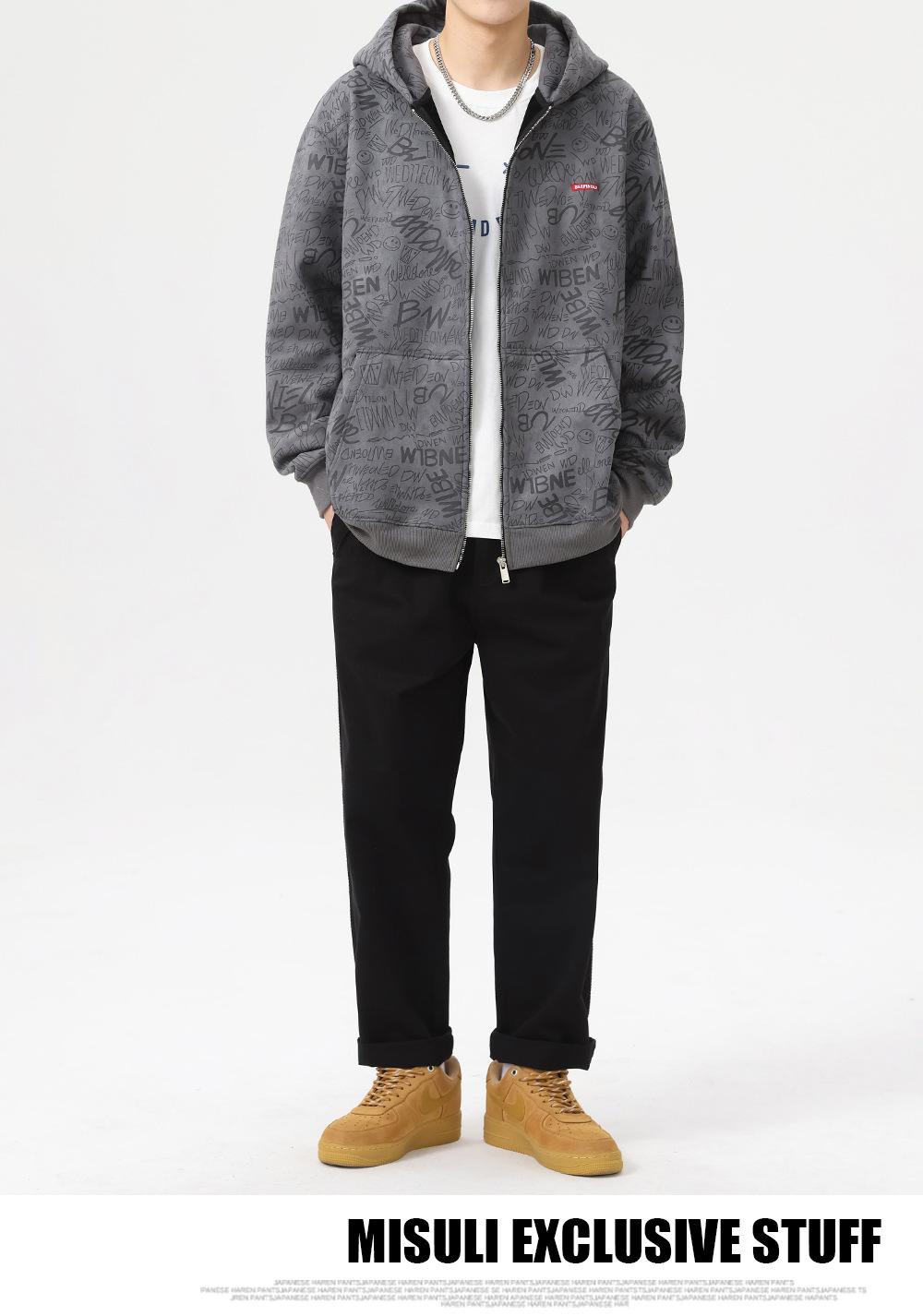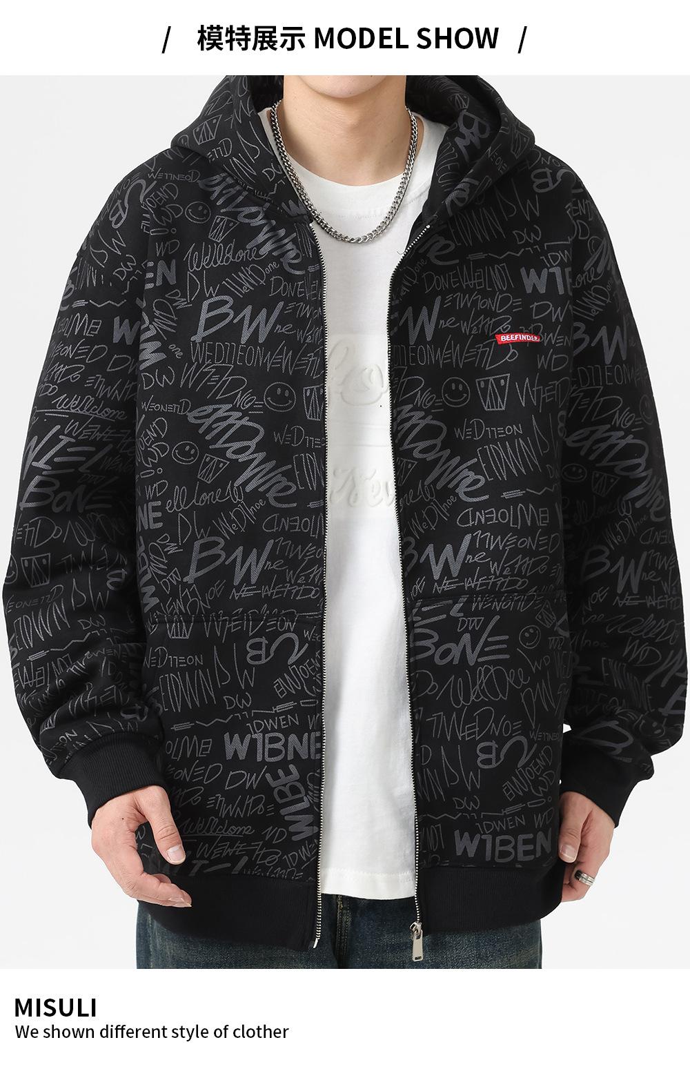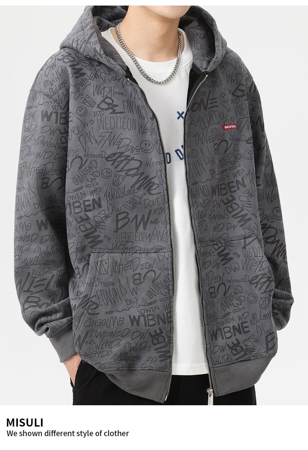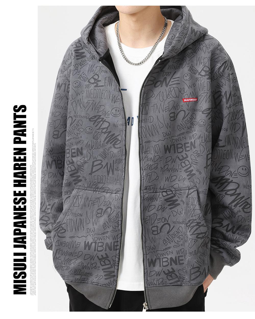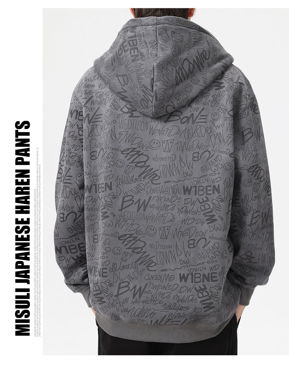 Suéter grosso forrado com lã masculino outono e inverno plus size solto marca de moda retrô americana Pu Shuai casaco com capuz e zíper roupa masculina