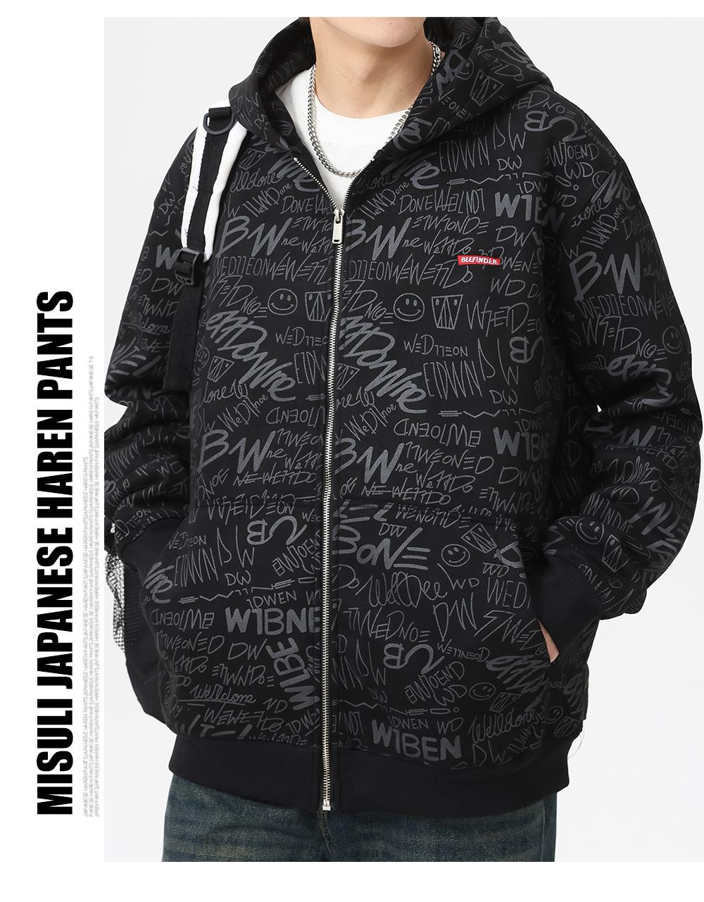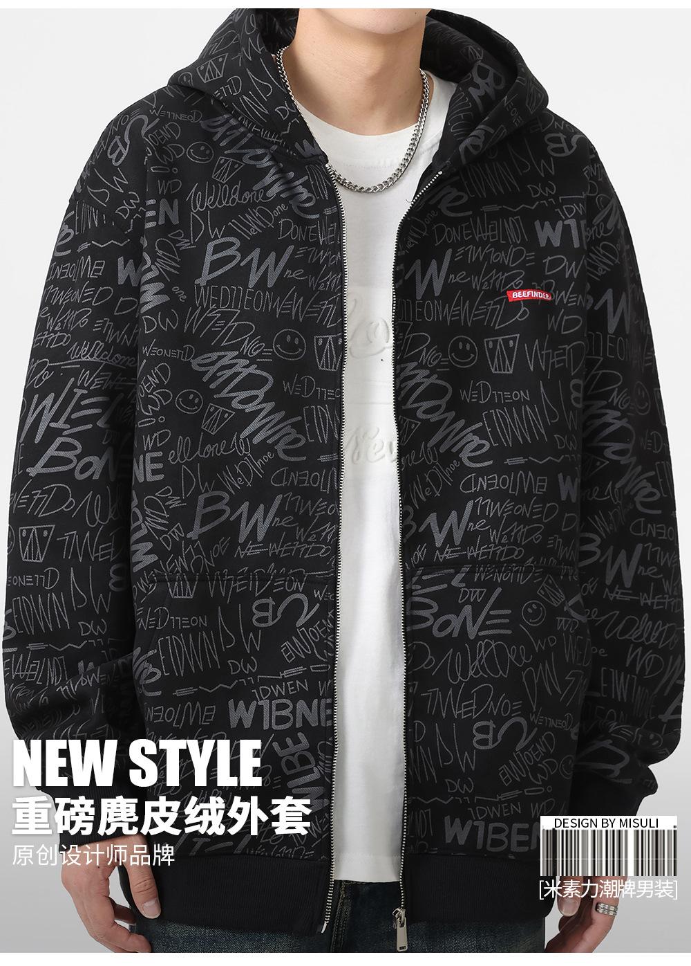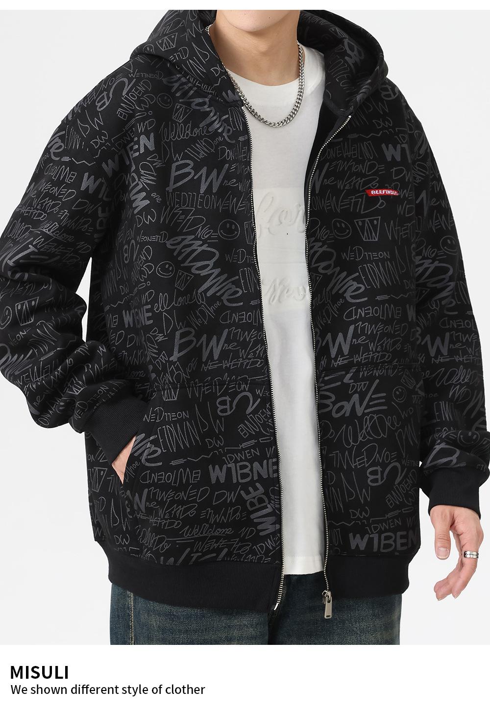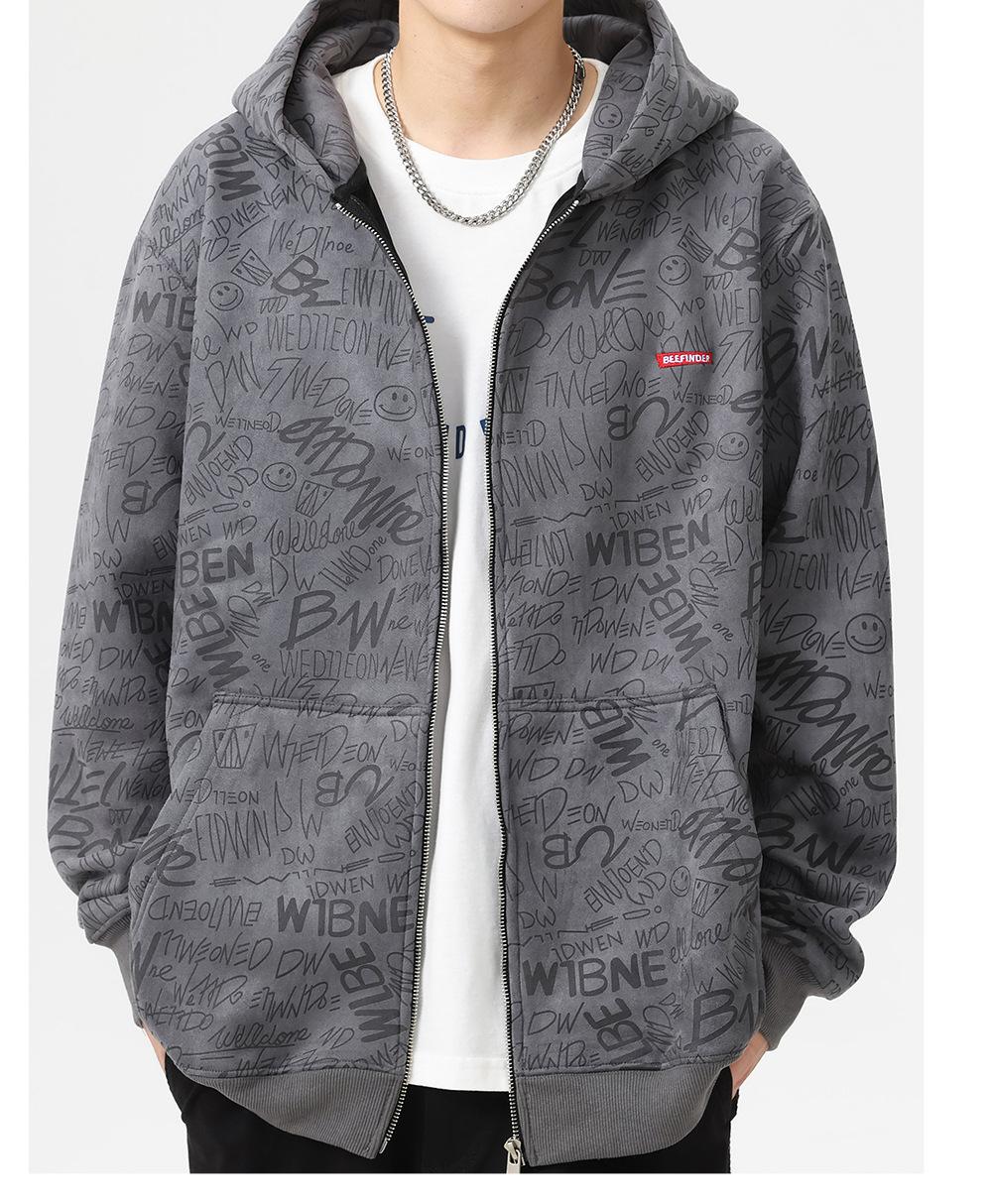 Suéter grosso forrado com lã masculino outono e inverno plus size solto marca de moda retrô americana Pu Shuai casaco com capuz e zíper roupa masculina