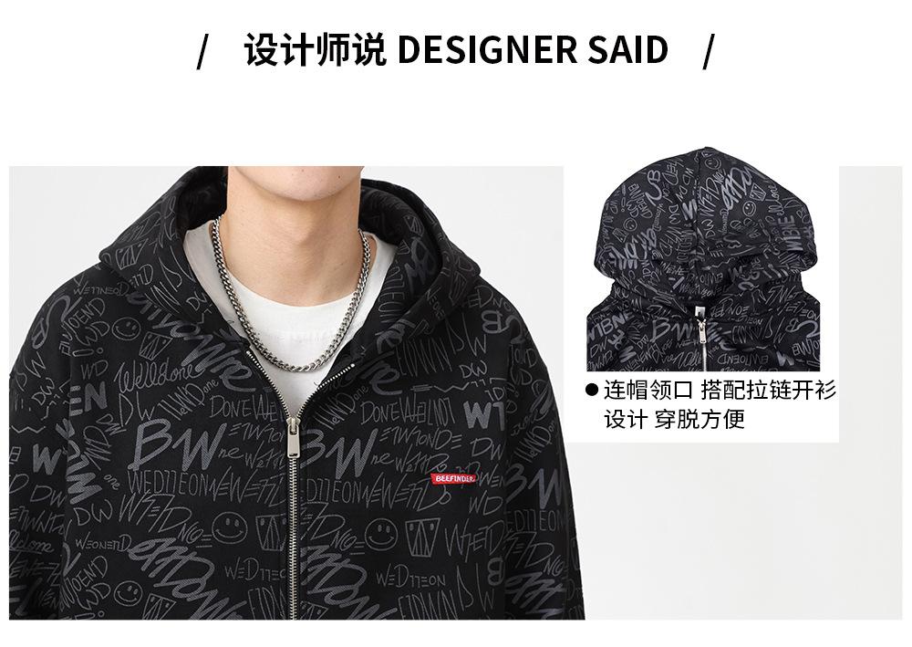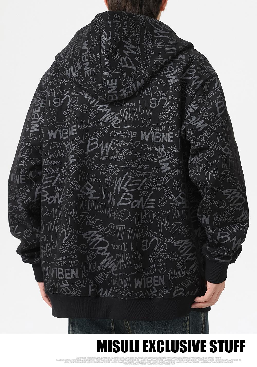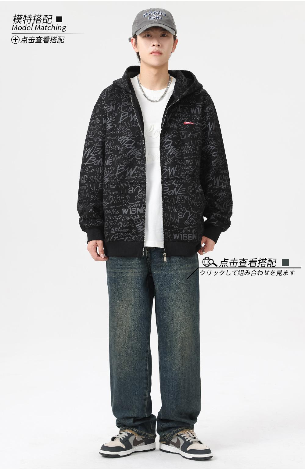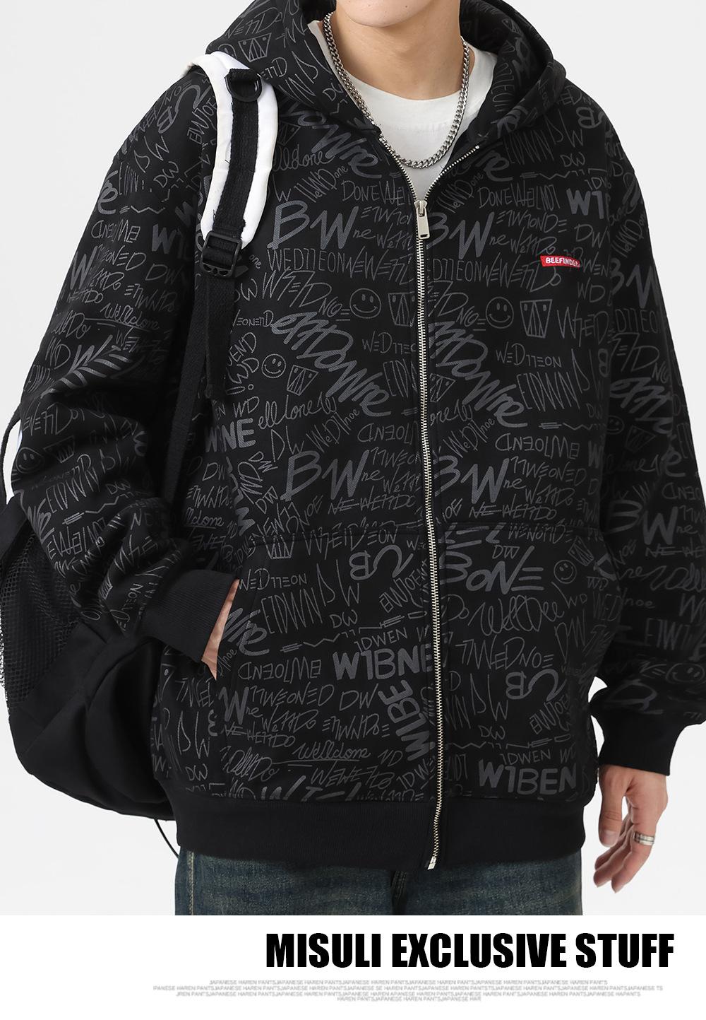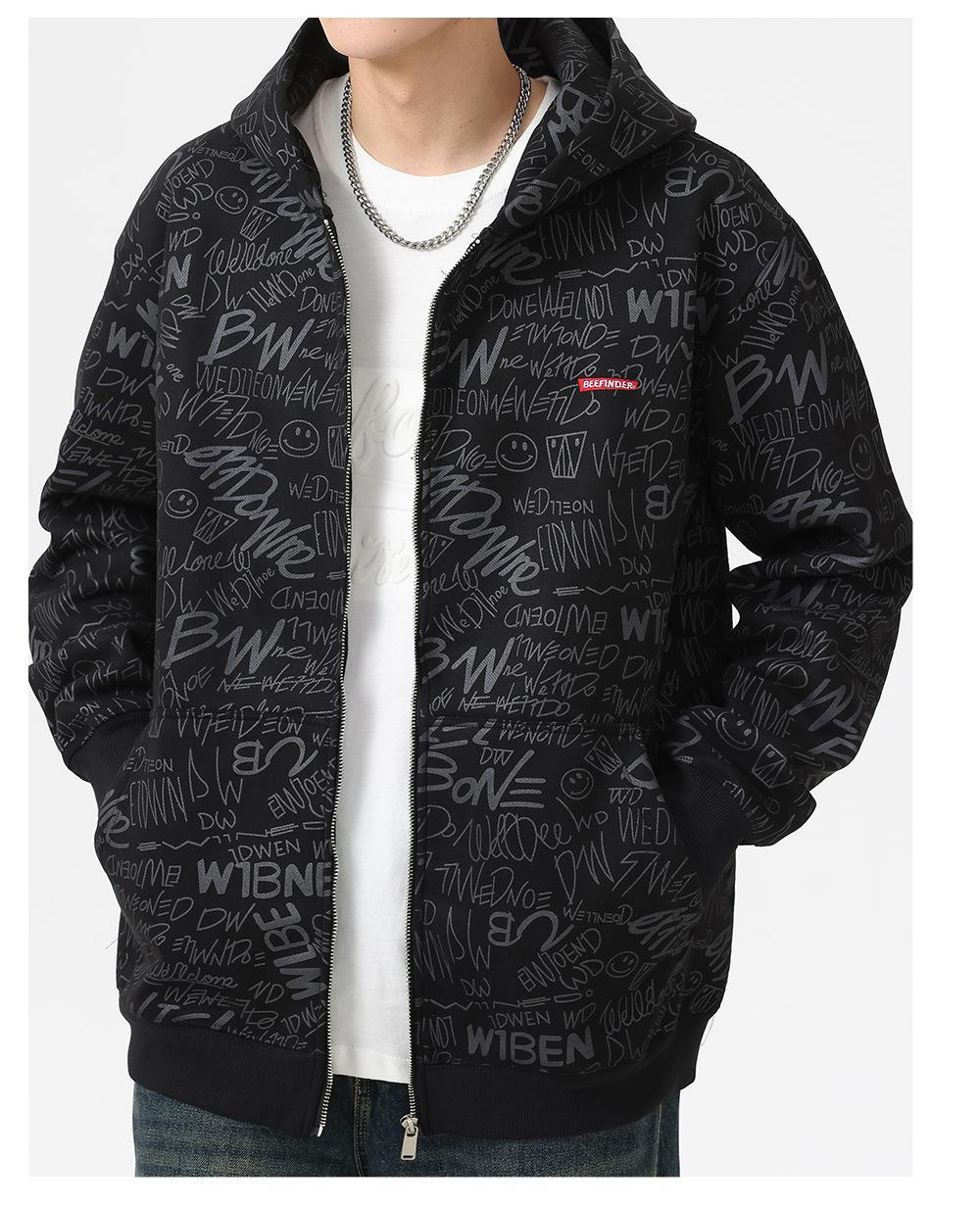 Suéter grosso forrado com lã masculino outono e inverno plus size solto marca de moda retrô americana Pu Shuai casaco com capuz e zíper roupa masculina