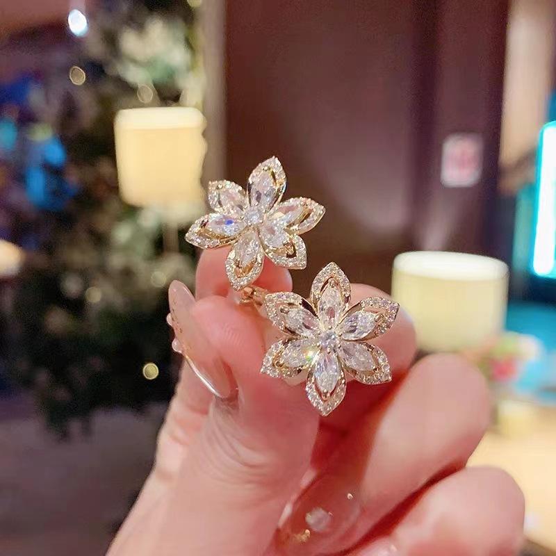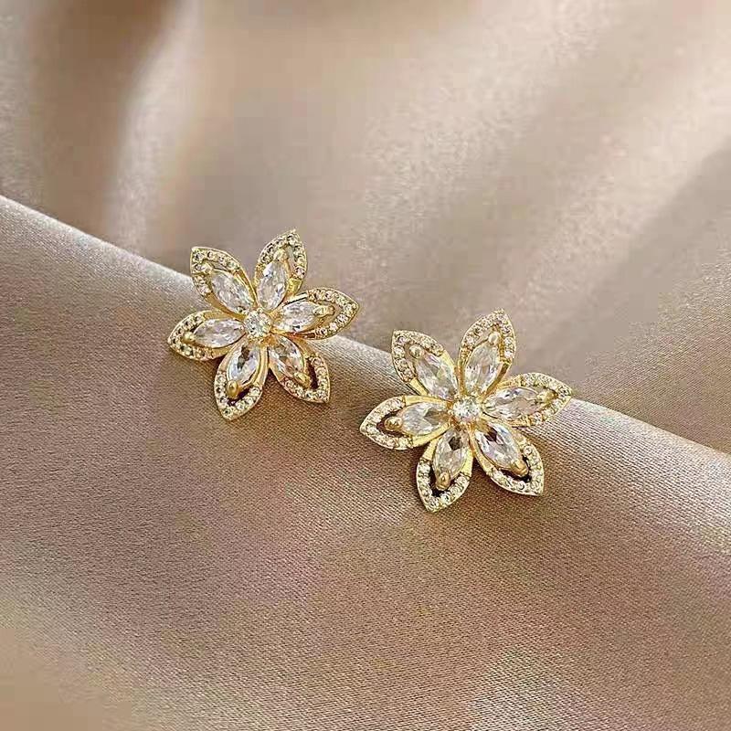 Brincos de girassol de venda quente transfronteiriça brincos de flor de alta qualidade de luxo leve brincos de temperamento de nicho novos da moda brincos